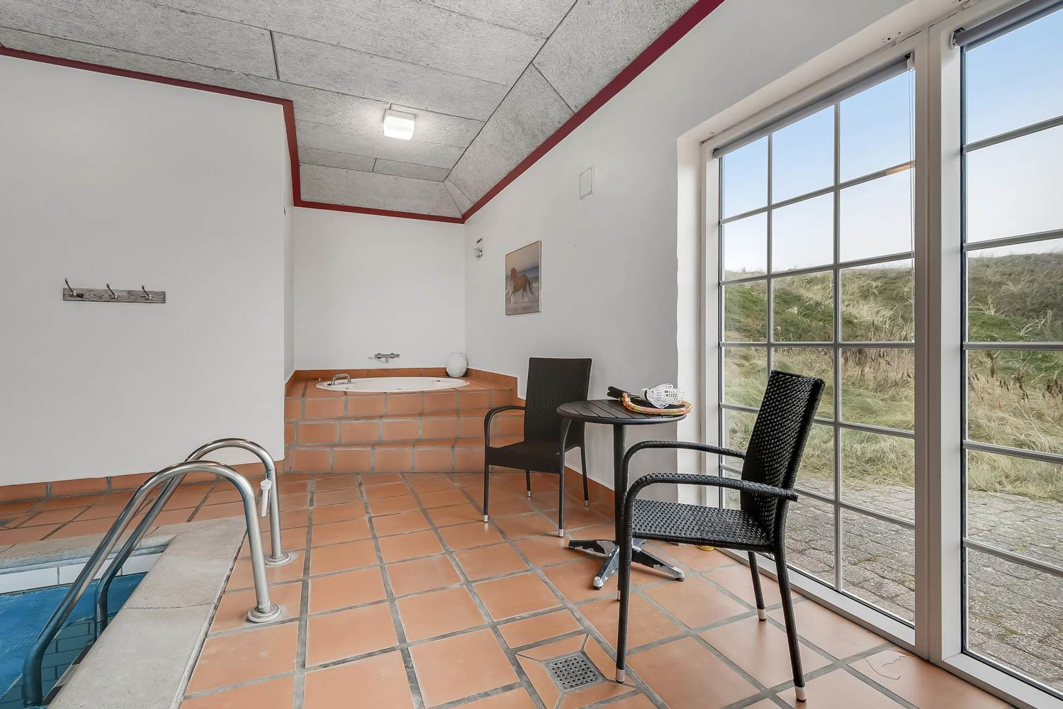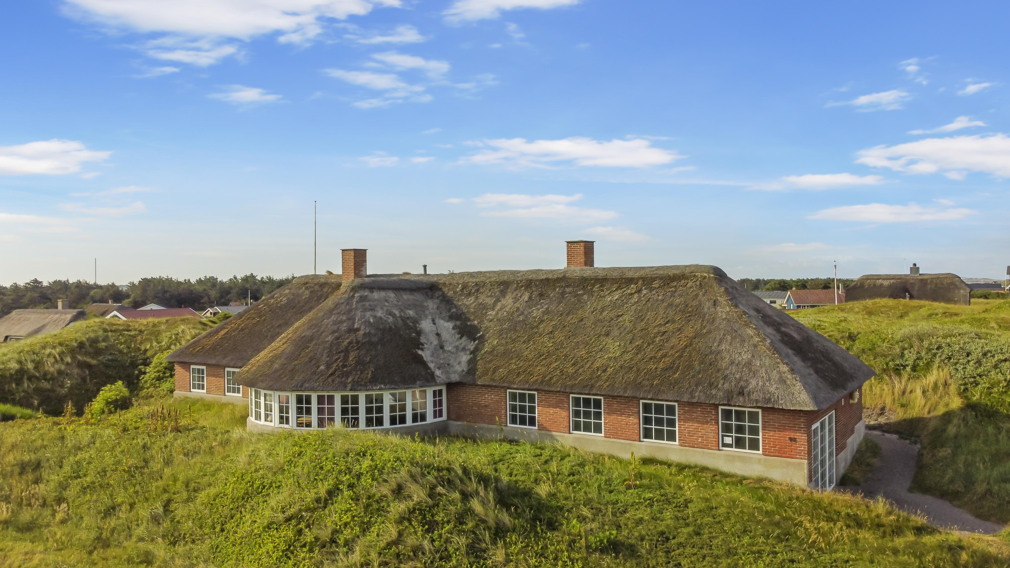 Dette stråtækte feriehus med pool og spa er pragtfuldt beliggende i klitterne blot 100 m fra Vesterhavet. Her er der mange gode muligheder for aktiviteter både uden- såvel som indendørs for hele familien. Huset er meget velegnet til 2-3 familier, som gerne vil bo sammen i ferien. Gratis internetadgang.