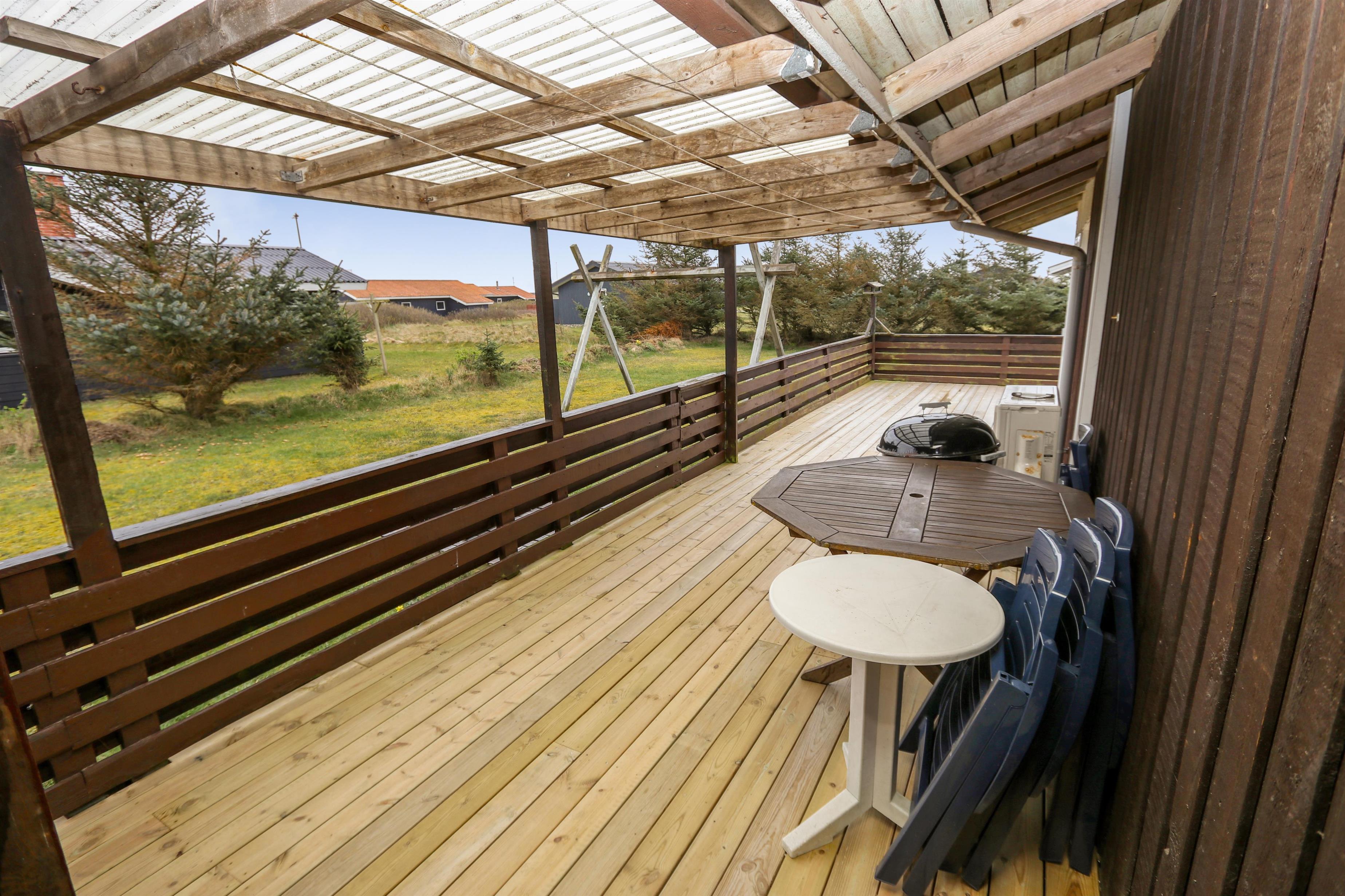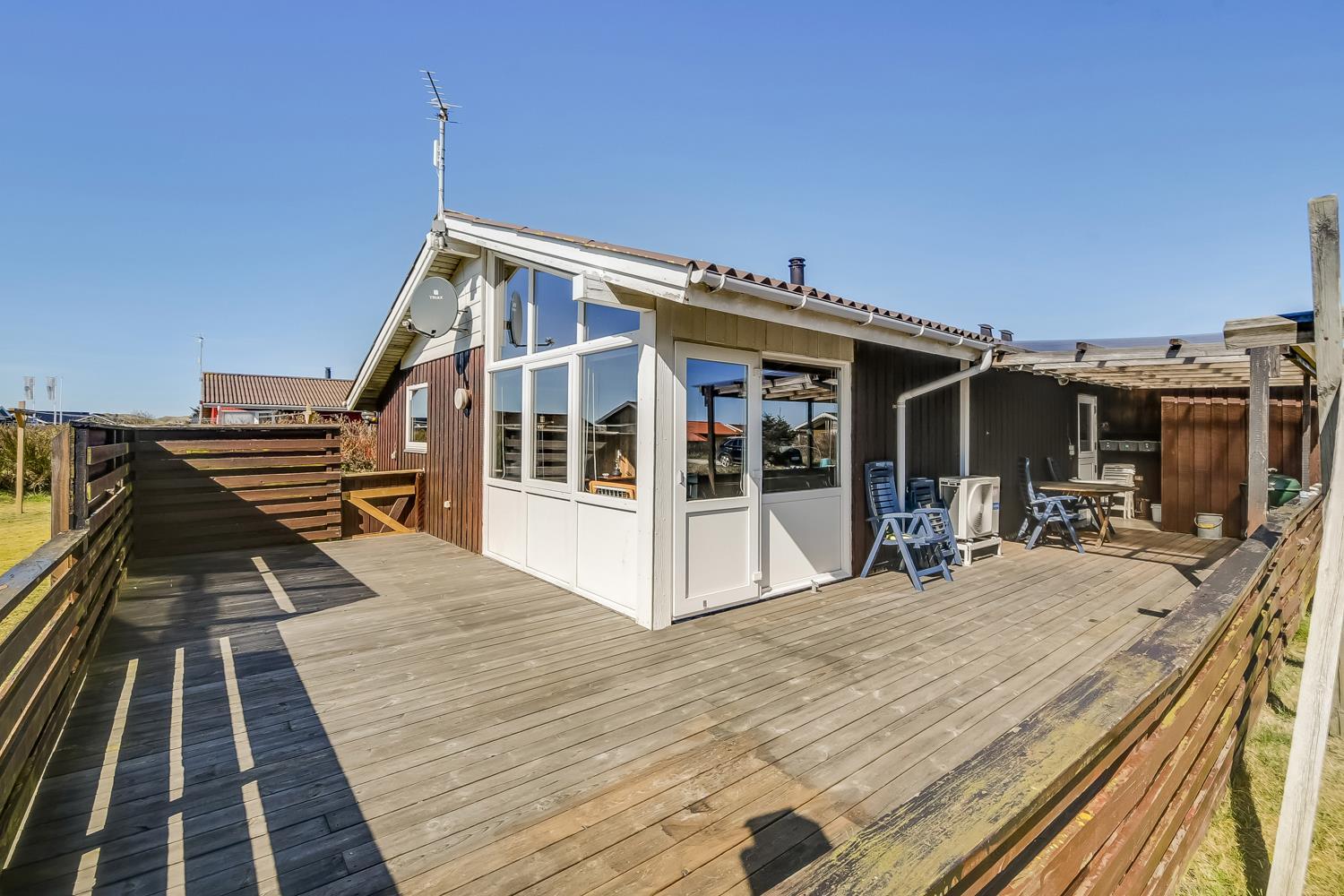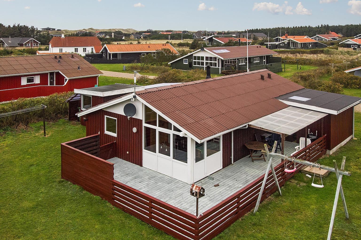 Dejligt indrettet sommerhus i træ er opført i 1985 og er senest tilbygget i 2010. Huset fremtræder velholdt og up-to-date med bla. 3 soverum (1DS, 1DS, 2ES). Ekstra værelse med 1ES. Opholdsstue med spiseplads, TV med tyske kanaler, DVD-afspiller, stereoanlæg med radio og CD-afspiller. Brændeovn og varmepumpe sikre både varme og hygge i alt slags vejr. Veludstyret køkkenhjørne med udgang til østvendt terrasse, komfur med keramiske kogeplader, køleskab med 50L fryseboks, mikroovn og opvaskemaskine. Dejligt lyst og stilfuldt badeværelse som er tilbygget i 2010 med 2 vaskearrangementer, vaskemaskine, toilet, brusekabine med massage, gulvvarme, spabad og en fantastisk helsekabine (infarød sauna) som bare skal opleves - og er rigtig godt for sjæl og krop. Barneseng og højstol til de mindste. Ikke ryger hus. Max. 1 husdyr tilladt. Ved leje af dette sommerhus er der gratis adgang til Lemvig Idræts-& Kulturcenter hvor der er svømmehal mm. Se venligst:www.lemvig-idraets-og-kulturcenter.dk
