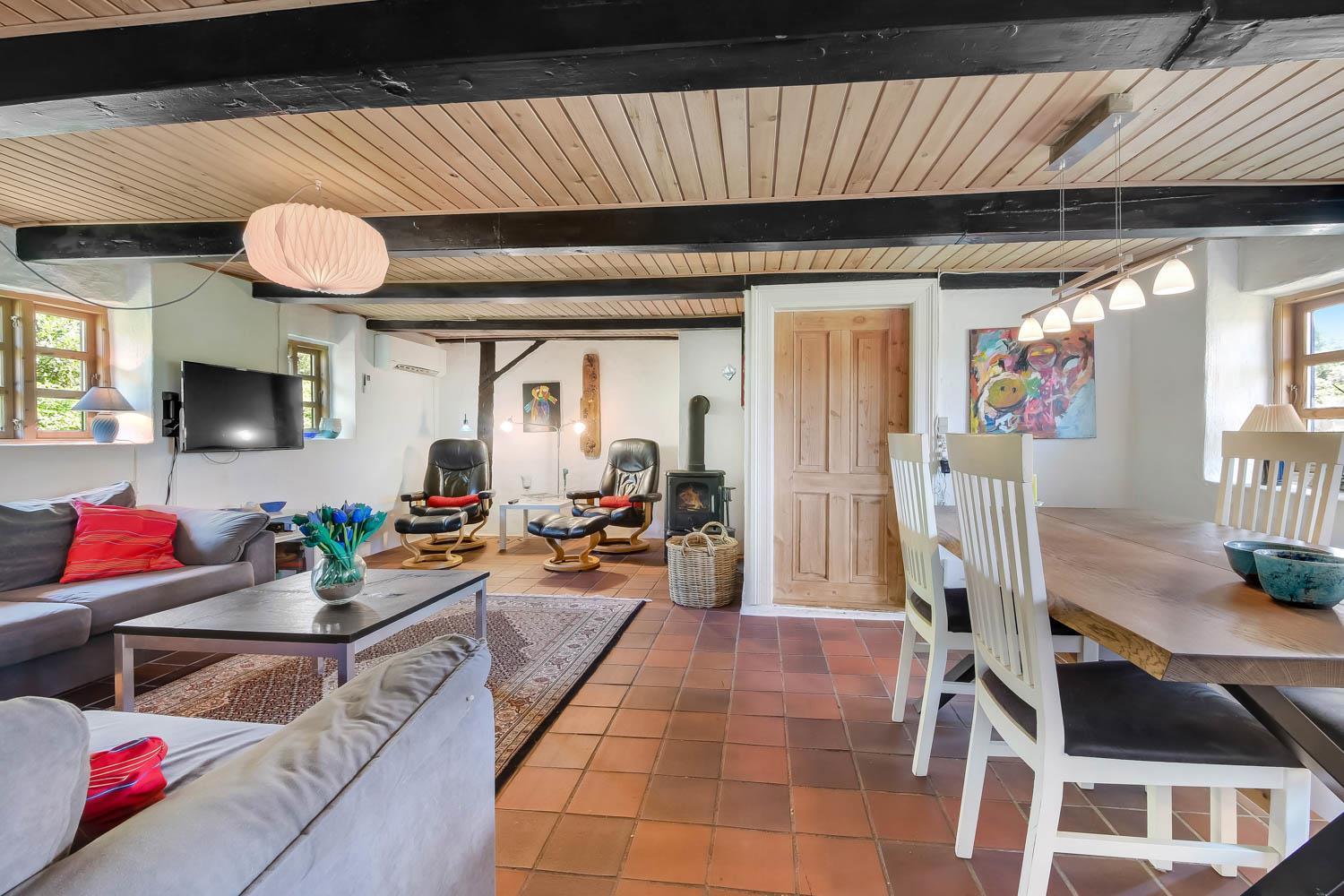 Huset er 96 m2 stort og har 2 soveværelser (2ES, 2ES) i forlængelse af hinanden. Hyggelig opholdsstue med polstermøbler, spiseplads, Smart-TV med danske og tyske programmer samt mulighed for streaming af TV / radio / Apps, så har du en mobiltelefon eller et andet device med kan du streame hvad du nu har abonnement. Slap af foran den knitrende brændeovn som sammen med varmepumpen hjælper med at reducere udgiften til varmeregningen. Praktiske hårde gulve i alle rum. Nyt køkken med komfur med glaskeramiske kogeplader, køleskab med fryseboks samt spiseplads. Fra køkkenet er der adgang til en ekstra nyrenoveret brygges med god plads til ekstra opbevaring og gulvvarme.Nyt badeværelse med toilet, bruser og håndvask og gulvvarme. I huset er den en loftshøjde ca 1,9 m. Max. 2 husdyr tilladt. Ikke-ryger hus.