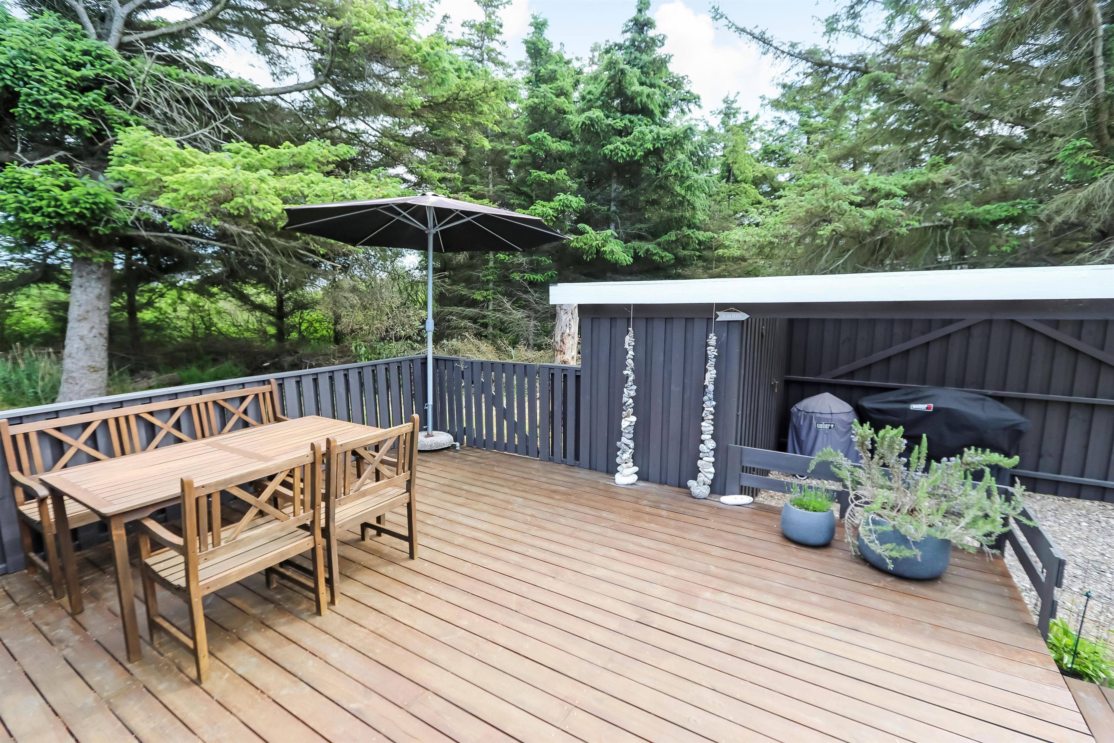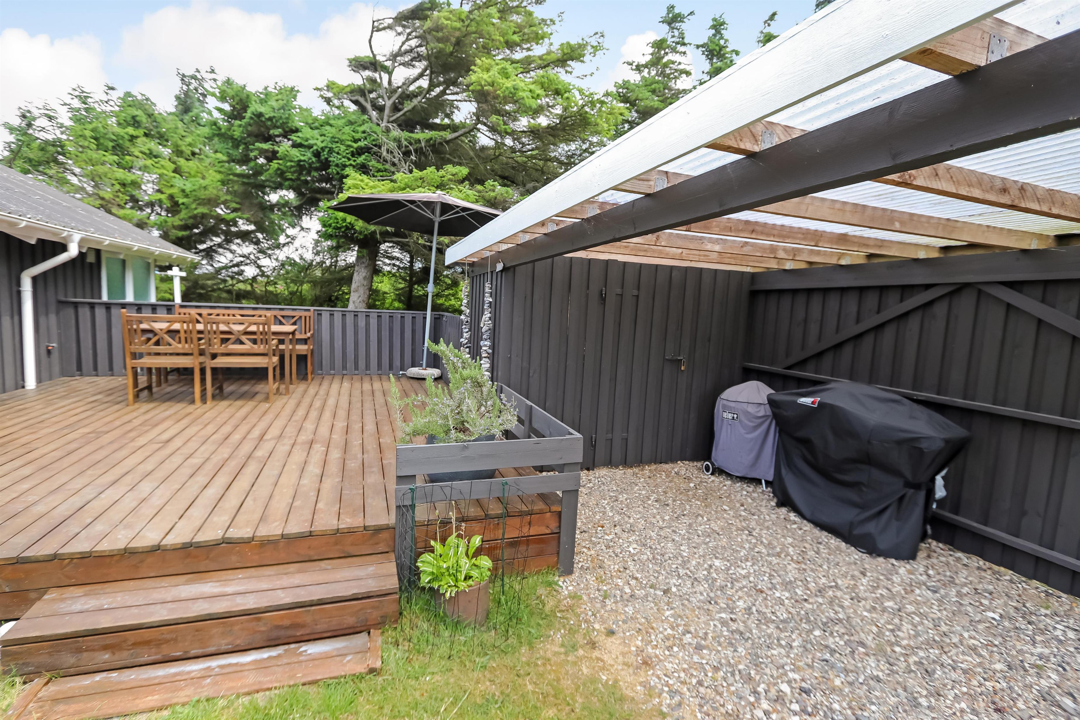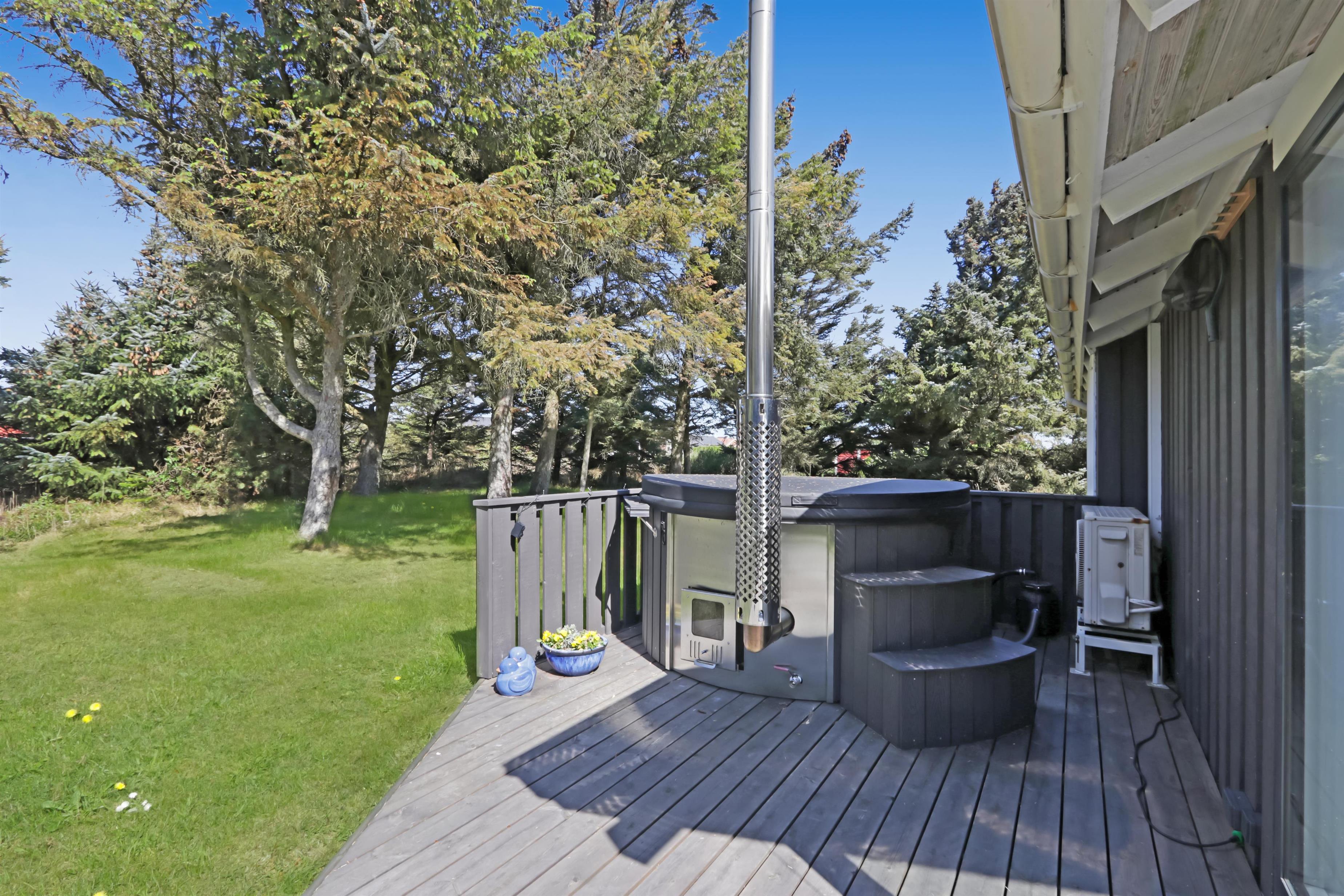 Huset er beliggende på en ca. 1.400 m2 stor, helt fantastisk naturgrund kun 250 m fra Vesterhavet. Der er udgang til et stort delvis overdækket træterrasseanlæg med havemøbler og solvogne. Terrasser på 3 sider af huset, så du kan nyde solen hele dagen. Der forefindes Weber gasgrill og Weber kulgrill, som kan flyttes rund efter behag, alt efter hvor der er sol eller skygge. Unik mulighed for grill entusiasten. Parker bilen i carporten og straks efter vil I lægge mærke til den parklignende grund med masser af flotte træer, som gør at hus og terrasser altid ligger i læ. I Vejlby Klit og omegn er der rigtig gode muligheder for at cykle, vandre eller løbe en tur og kun ca. 250m fra huset ligger det brusende Vesterhav som hver dag byder på nye maleriske oplevelse. I sæsonen kan du hente morgenbrød, købmandsvarer eller måske invitere familien ud at spise, kun ca. 10 min fra huset. Så hvad enten du er til aktiv ferie eller total afslapning danner dette dejlige feriehus den perfekte ramme både hvad angår hus, beliggenhed og omgivelser.