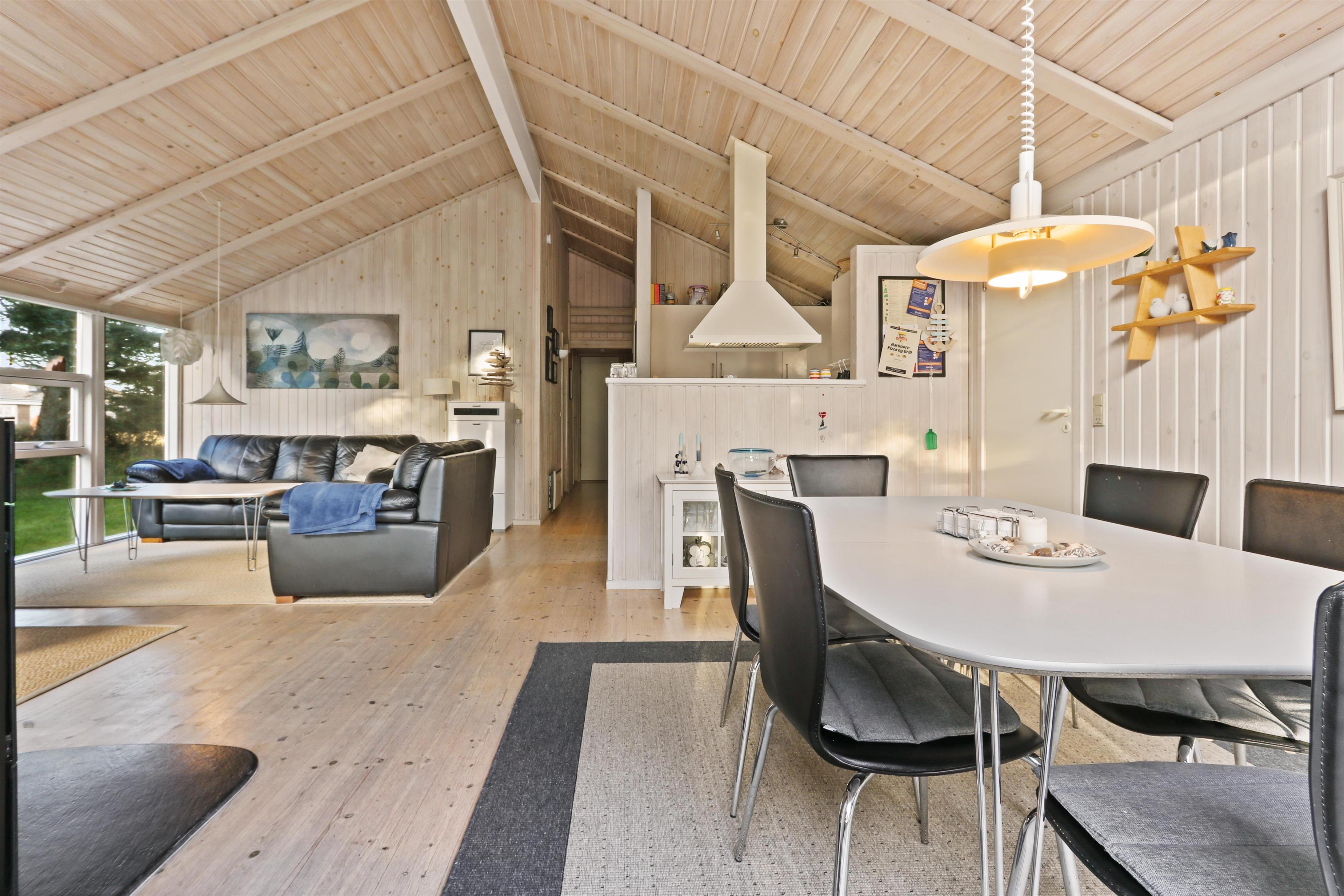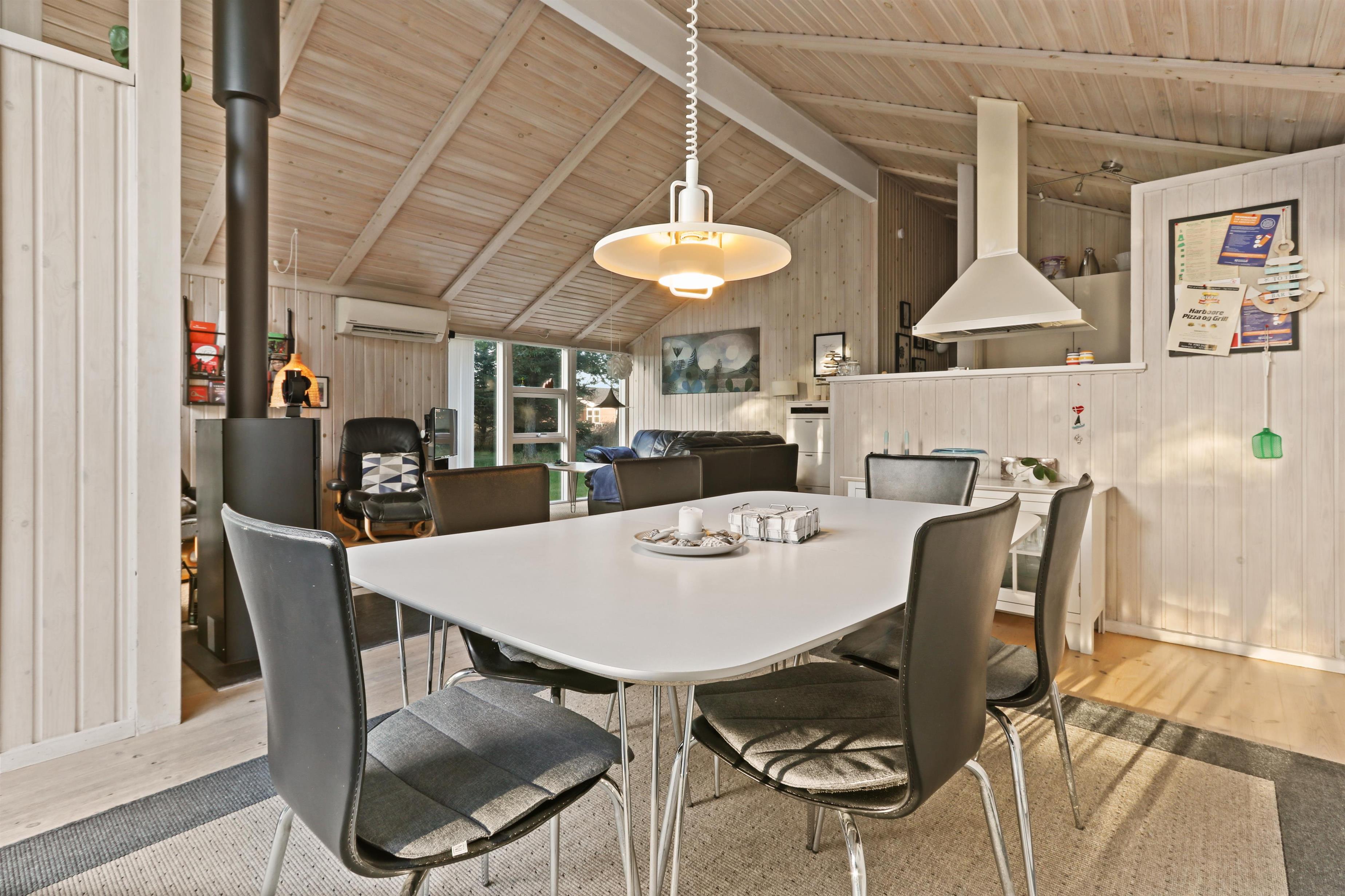 96 m2 stort, rummeligt, komfortabelt indrettet feriehus i træ. Opholdsstuen er åben til kip, og utrolig hyggeligt og personligt indrettet. Opholdsstuen er opdelt i spisestue, opholdsstue som er kombineret med det åbne køkkenhjørne. Opholdsstue med, lædermøbler, spisebord og TV med danske og tyske kanaler samt internet radio. Slap af foran den knitrende brændeovn, som sammen med varmepumpen, hjælper med at reducere udgiften til varmeregningen. Praktiske hårde gulve i hele huset. 4 gode soverum (1DS, 1DS, 1DS, 2ES) - men huset må max. beboes af 6 personer. Køkkenhjørne med alt i service / køkkengrej samt glaskeramiske kogeplader, indbygningsovn emhætte, opvaskemaskine og køleskab med fryseboks. Ekstra opbevaringsrum med bla. mikroovn. Huset råder over 2 toiletter begge med klinkegulv med gulvvarme, toilet og håndvask. Det ene badeværelse er med spabad og direkte adgang til saunaen, bruser og kombineret vaskemaskine / tørretumbler. Ikke ryger hus. Husdyr ikke tilladt. Har man el-bil eller en Plug-In hybrid, så er der opsat ladeboks ved huset