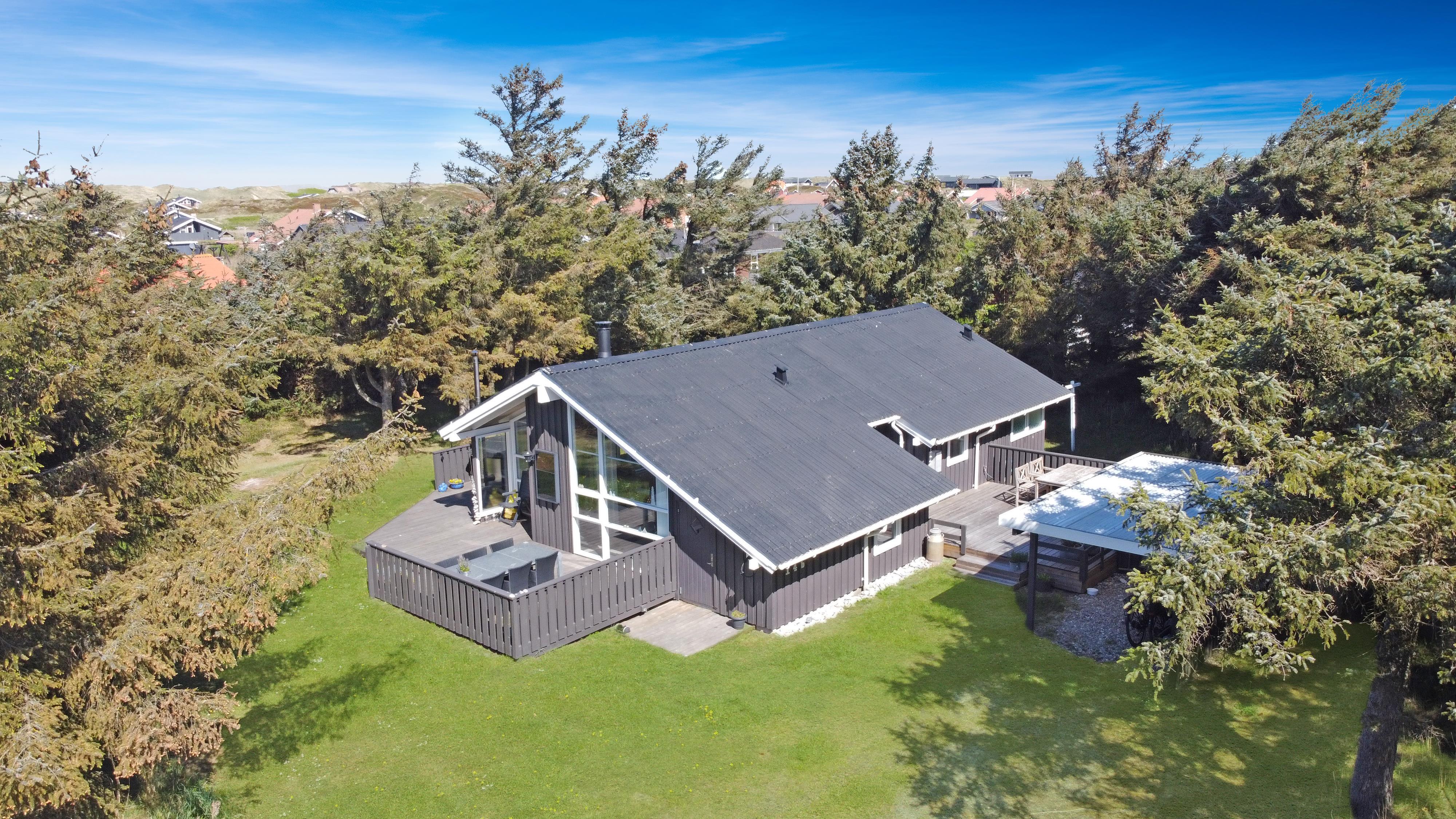 Dette løbende renoverede, og meget personligt indrettede feriehus i træ, er beliggende på en velholdt, parklignende naturgrund blot 250 m fra det brusende Vesterhav. Huset er ideelt indrettet til, at flere par eller 2 familier kan holde ferie sammen, eller til blot 2 personer som ønsker plads omkring sig. Nyd det ny opsatte vildmarksspa. Et fantastisk hus, med kig til klitterne og som er velegnet til ferie uanset årstiden. Her er gratis internetadgang.