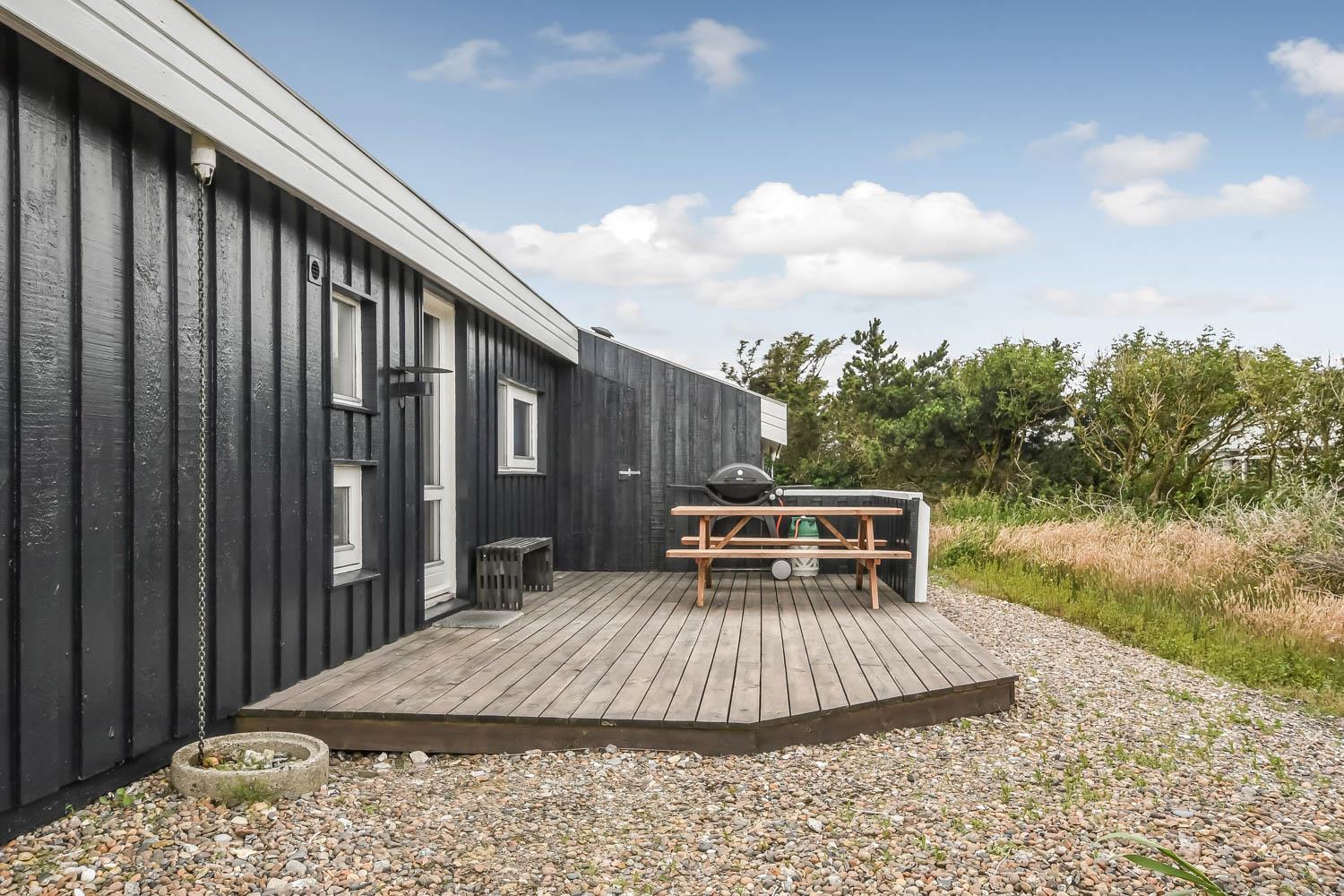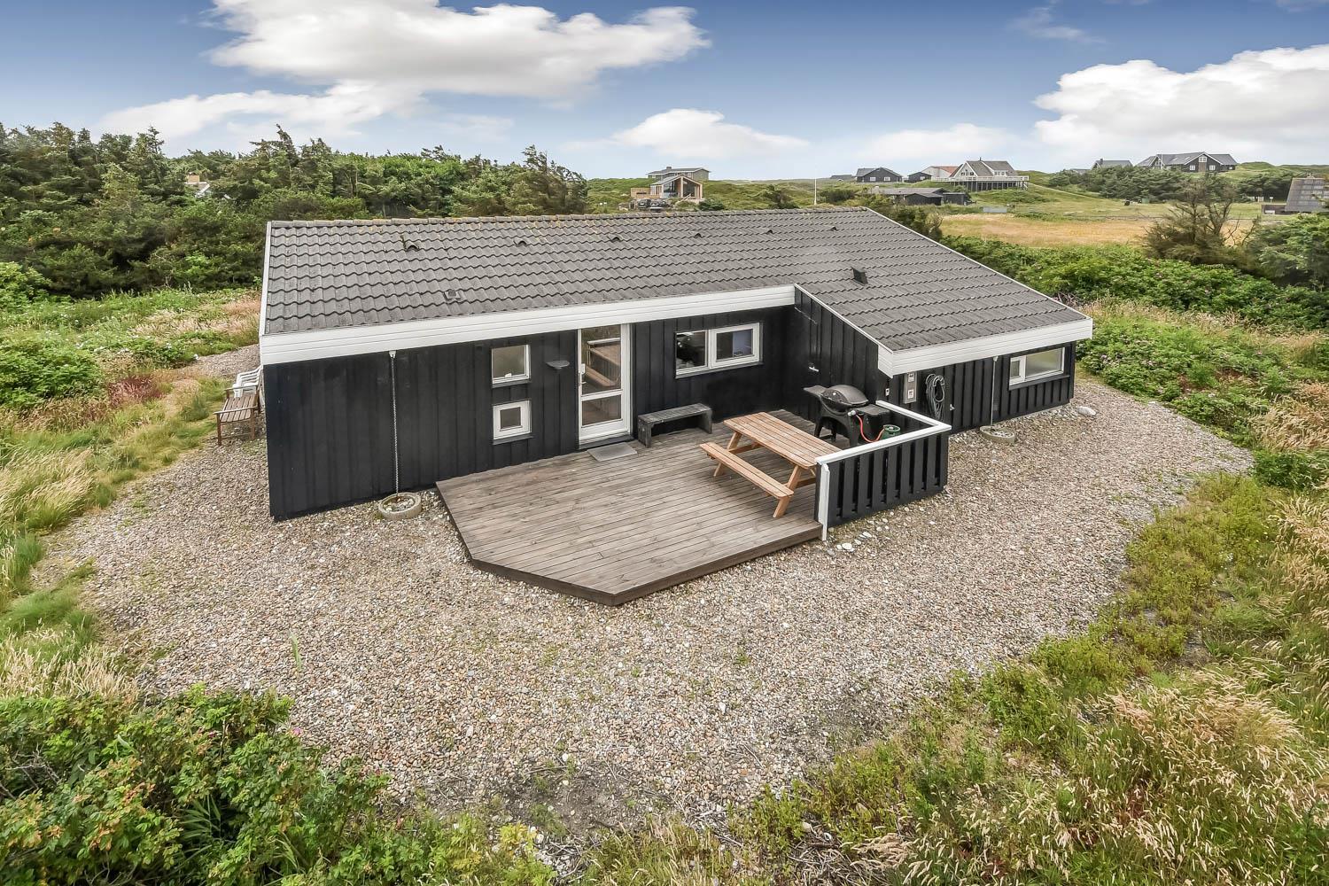 Huset er beliggende på en 2570 m2 naturgrund blot 400 m fra Vesterhavet. Der er en dejlig åben terrasse med havemøbler, solvogne og grill. Området omkring Vejlby Klit er velegnet til at cykle og vandre i. Husets beliggenhed så tæt på Vesterhavet indbyder til daglige besøg på stranden, her er der rigelige aktivitetsmuligheder man kan bade, slikke solskin, lyst fiske, samle sten eller rav eller blot sidde og nyde udsigten over Vesterhavet og mærke vinden i håret. Fra huset er der en kort køretur til både Lemvig og fiskerbyen Thyborøn som begge byder på flere gode restauranter, aktiviteter, seværdigheder og butikker. Et rigtig godt feriehus til gæster som gerne vil bo lidt ugenert og tæt på Vesterhavet.
