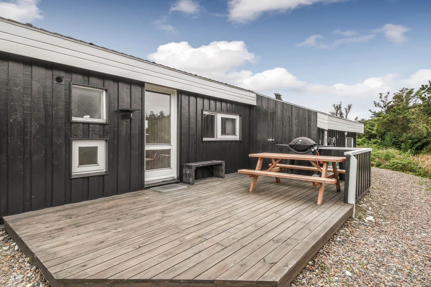 Dette flotte sommerhus ligger ideelt på en skov/naturgrund kun 400 m fra Vesterhavet. Gratis internetadgang. Huset har plads til 8 personer og 1 husdyr.