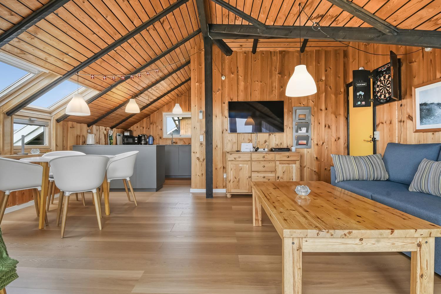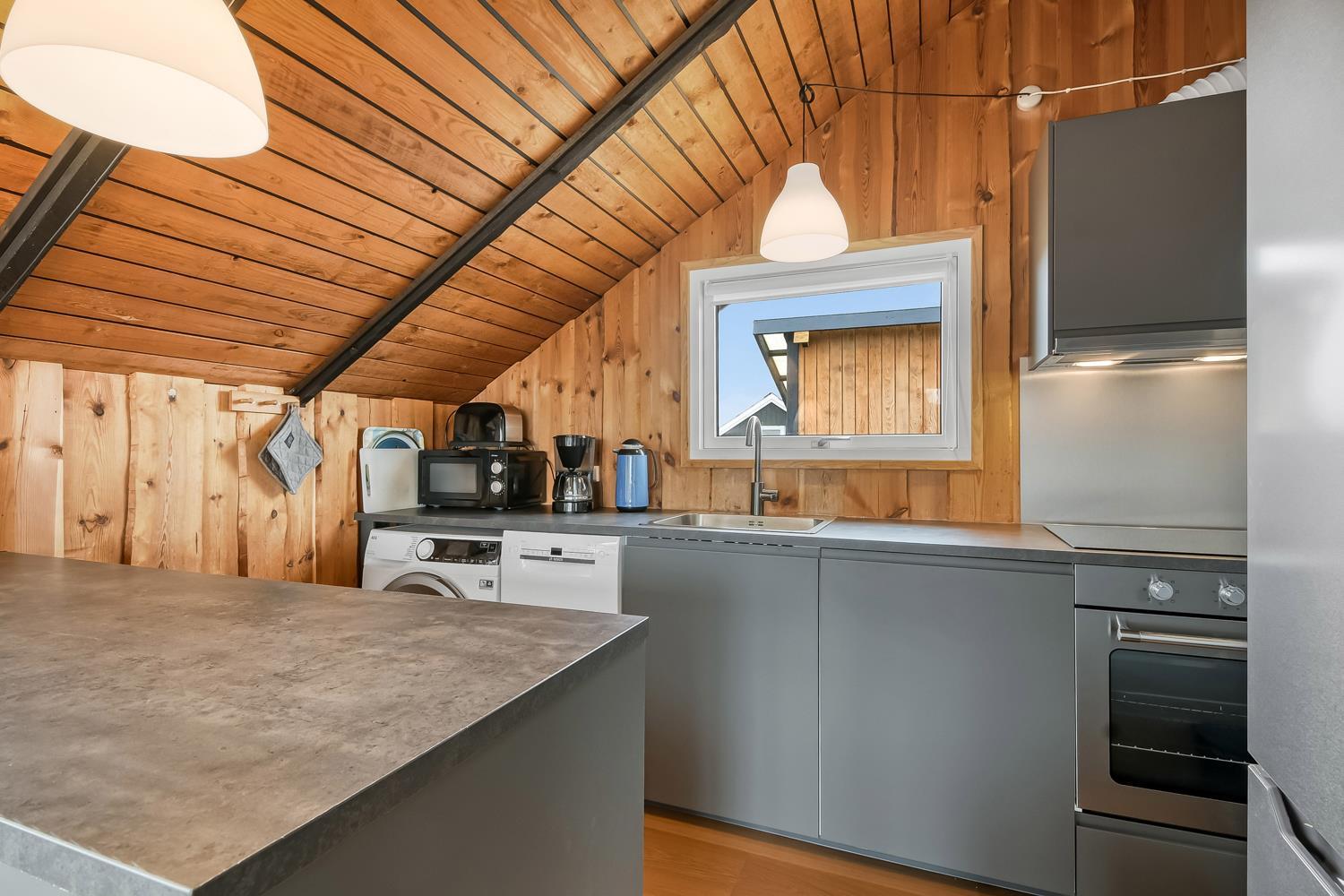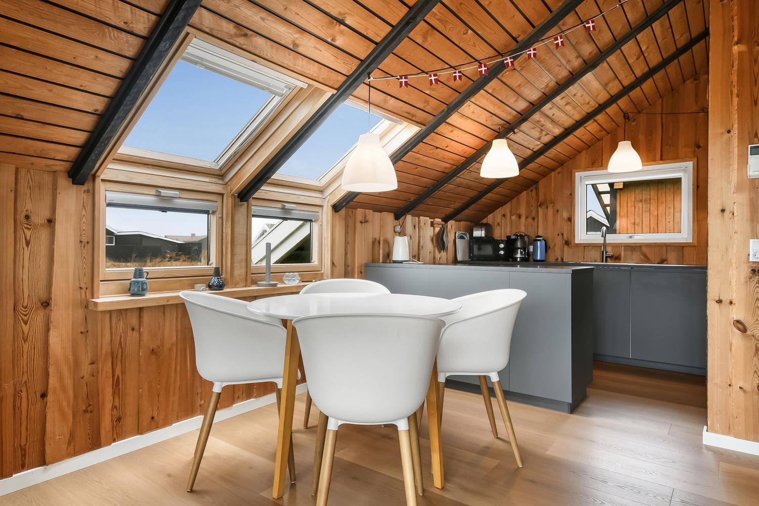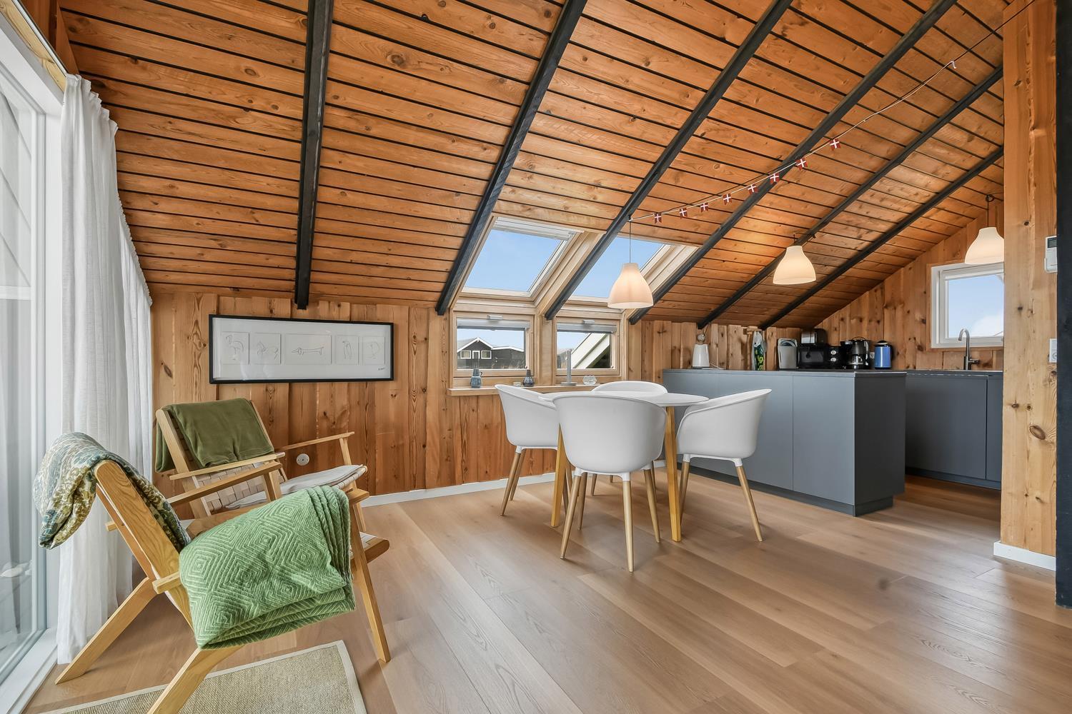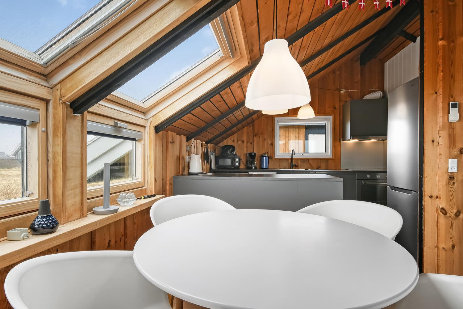 Fra stue er der udgang til en åben delvis overdækket terrasse, både fra stuen og terrassen er der udsigt til Ferring Sø. Der er havemøbler, liggestole og grill. Området omkring Vejlby og Ferring sø ligger ikke langt fra det brusende Vesterhav (400 m) og stranden, så naturen indbyder meget til udendørsaktiviteter året rundt - uanset om det er gåture i landskabet omkring søen eller en strandtur. Der er ikke langt til dagligvarebutikker i både Vejlby og Harboøre - Og er du i bil kan du køre til Lemvig - 'Smilets by' eller den meget populære turistby Thyborøn, hvor du begge steder finder flere dagligvarebutikker samt velfungerende detailhandel. Det ideelle hus for 2 personer eller den lille familie som ønsker en beliggenhed tæt på sø, hav og strand