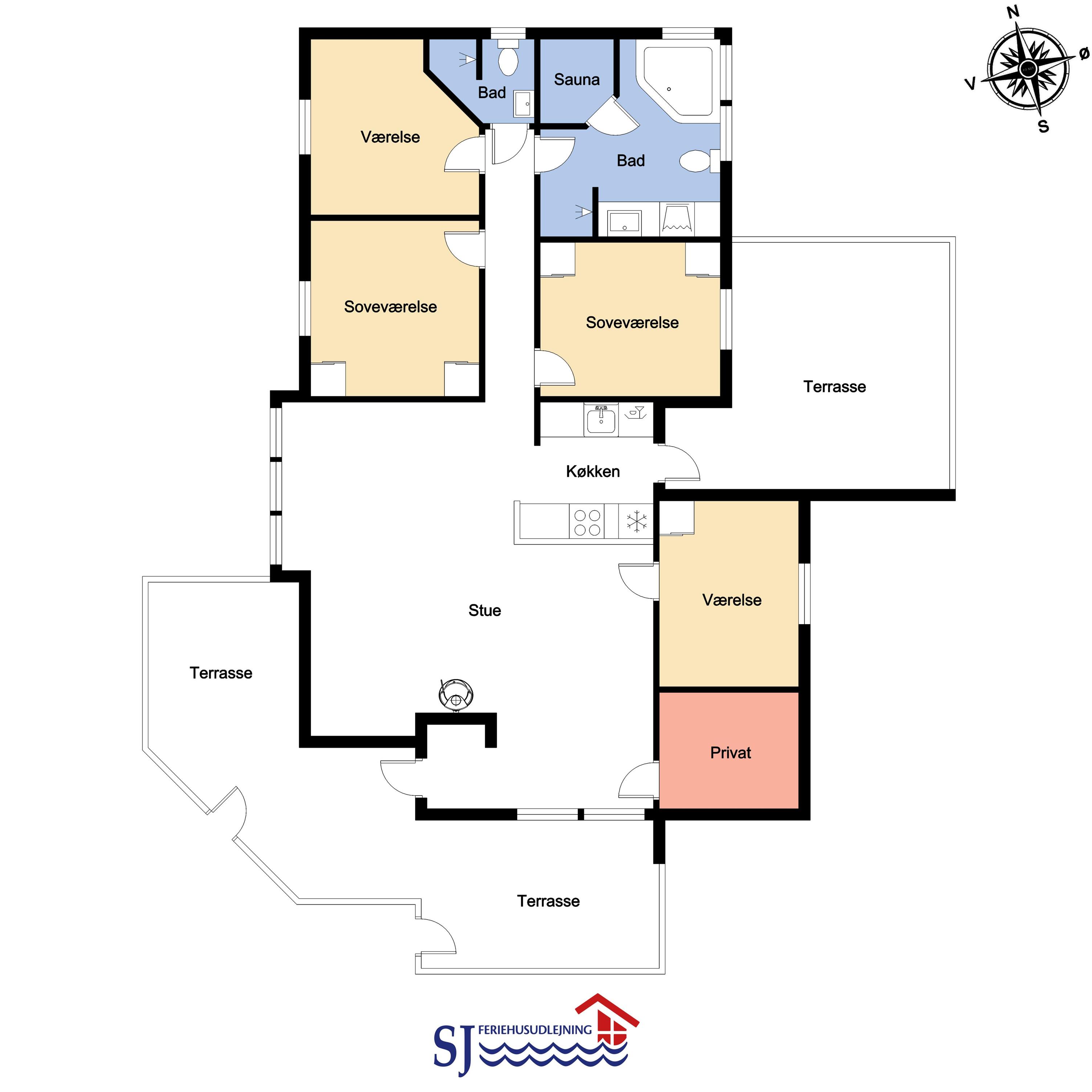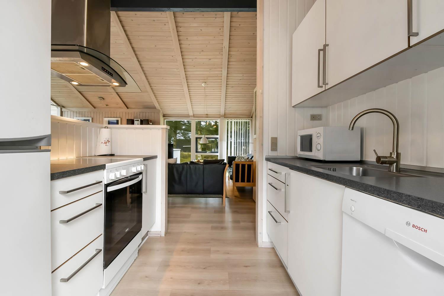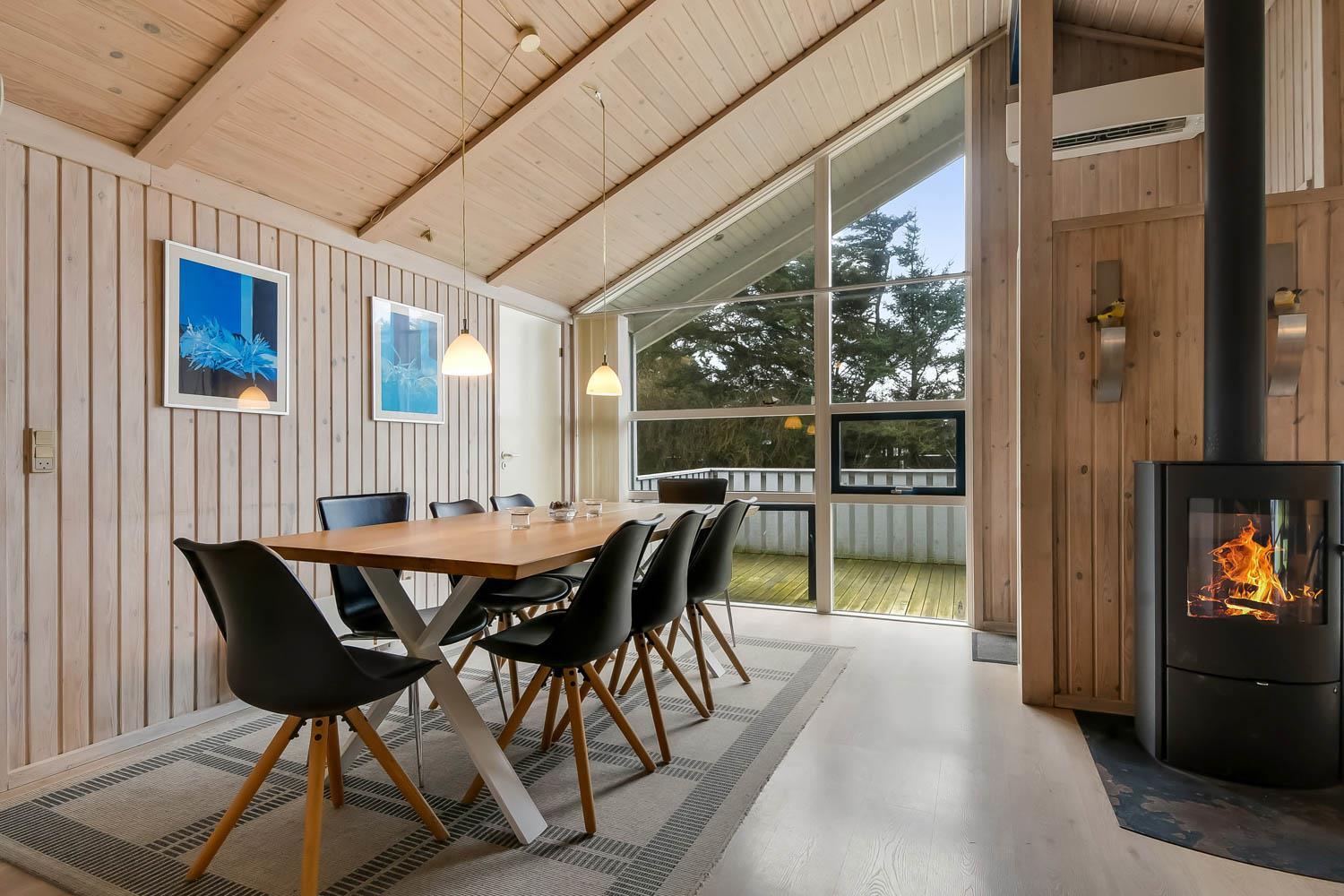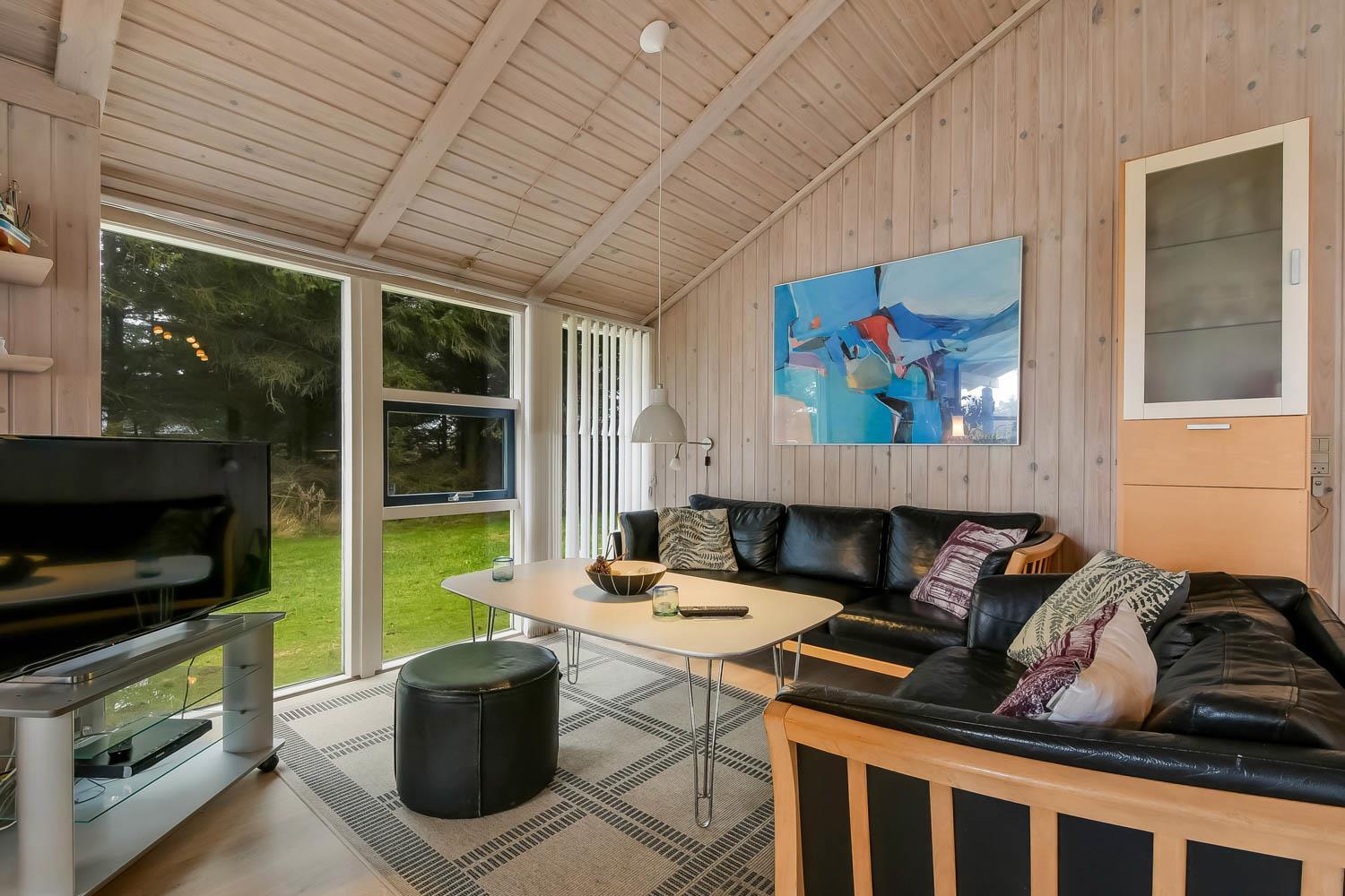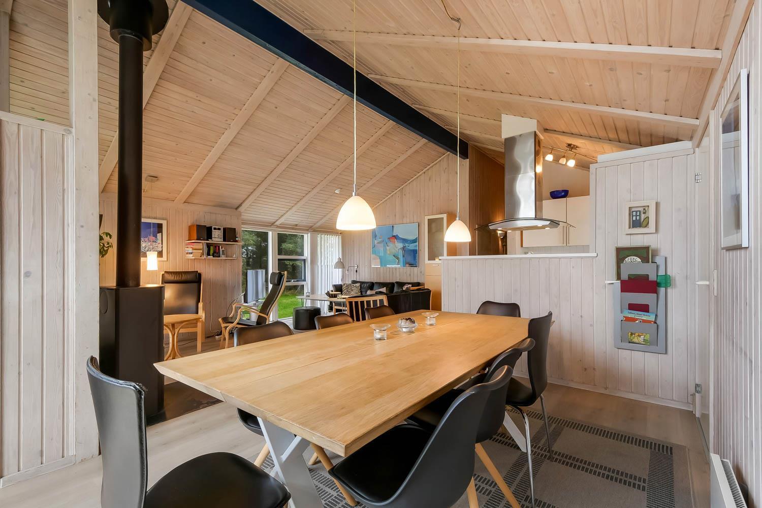 Parker bilen på den anlagte gårdsplads og begynd udpakningen. Hyggelig, kombineret opholdsstue med god brændeovn og et veludstyret køkkenhjørne byder jer velkommen. Opholdsstuen er pænt indrettet med bl.a. lædermøbler, TV med danske og tyske programmer, radio / CD / DVD og dejlig brændeovn samt en varmepumpe som begge hjælper til med en lavere forbrugsafregning. Tæt ved køkkenet står spisebordet til 8 personer, som hele familien kan samles ved når sulten skal stilles. Køkkenhjørne med glaskeramisk komfur, emhætte, mikroovn, opvaskemaskine og køleskab med fryseboks. 4 soveværelser (1DS, 1DS, 2ES, 2ES) med gode senge og praktiske trægulve. Depotrum med højstol og barneseng til de mindste børn. Husets badeværelse har bruser, toilet, håndvask, nedsænket spabad, direkte adgang til sauna og klinkegulv med gulvvarme. Ekstra badeværelse med toilet, bruser, håndvask og klinkegulv med gulvvarme. 2 husdyr tilladt. Et utrolig populært hus med mange gengangere som besøger huset år efter år. Ikke rygerhus