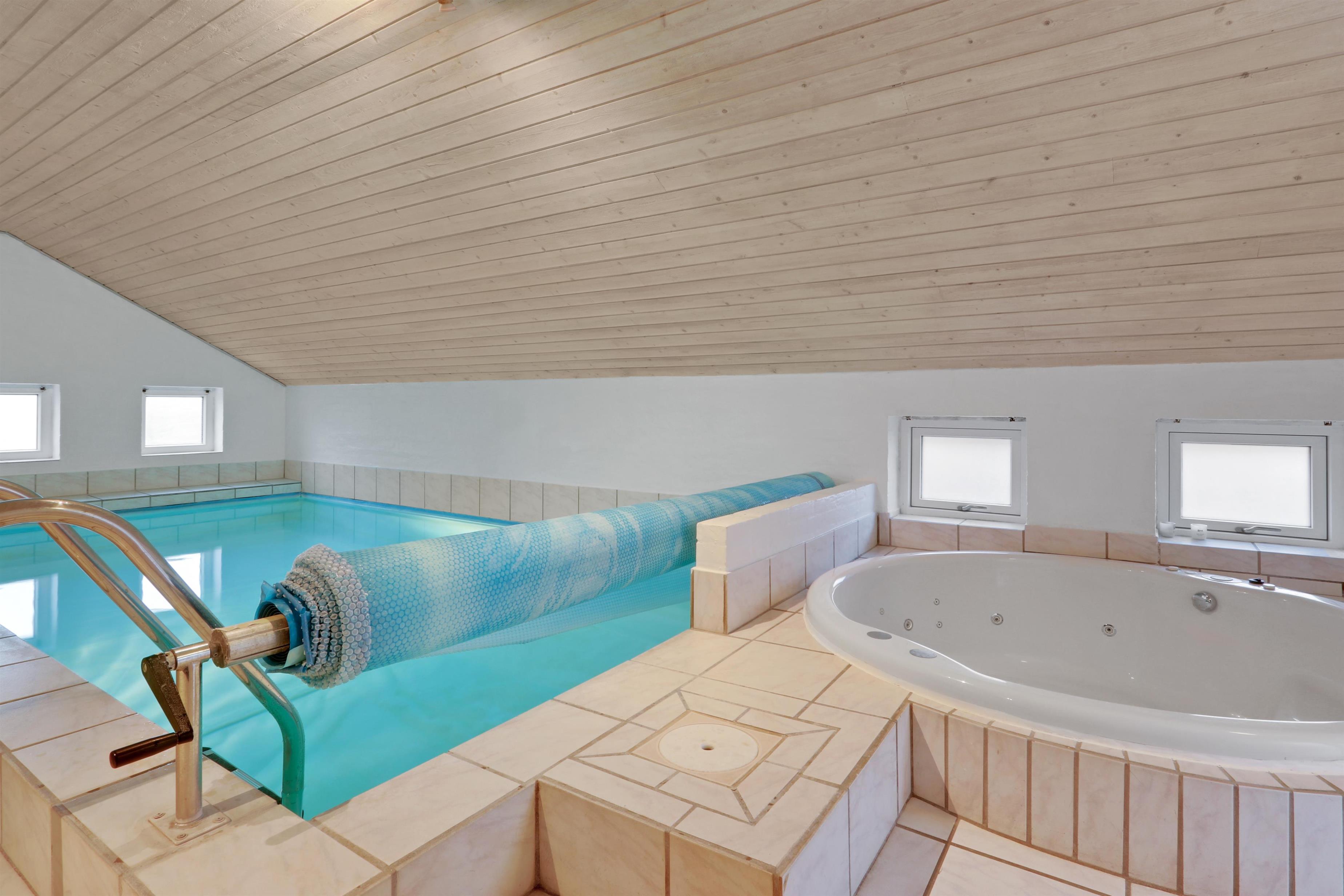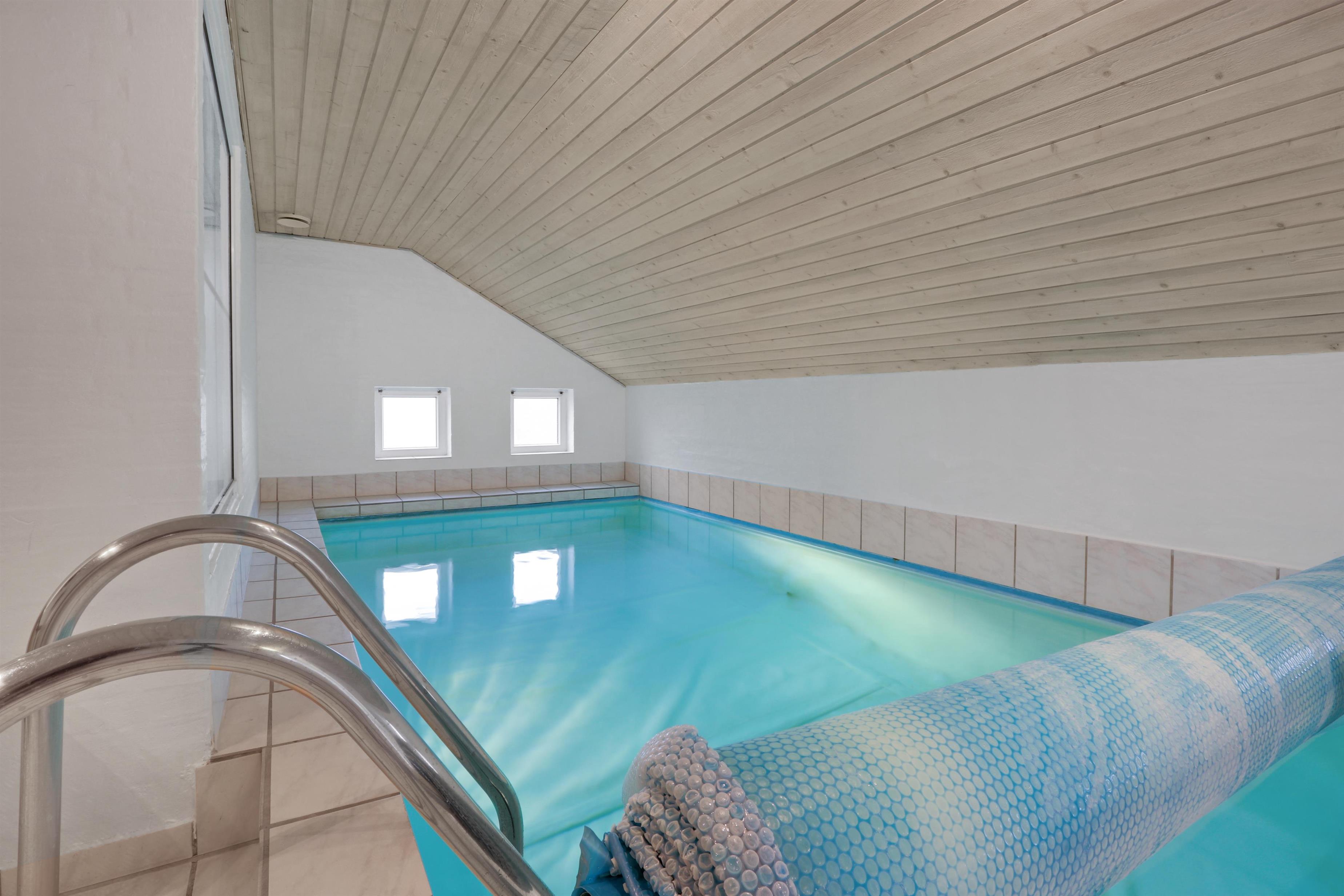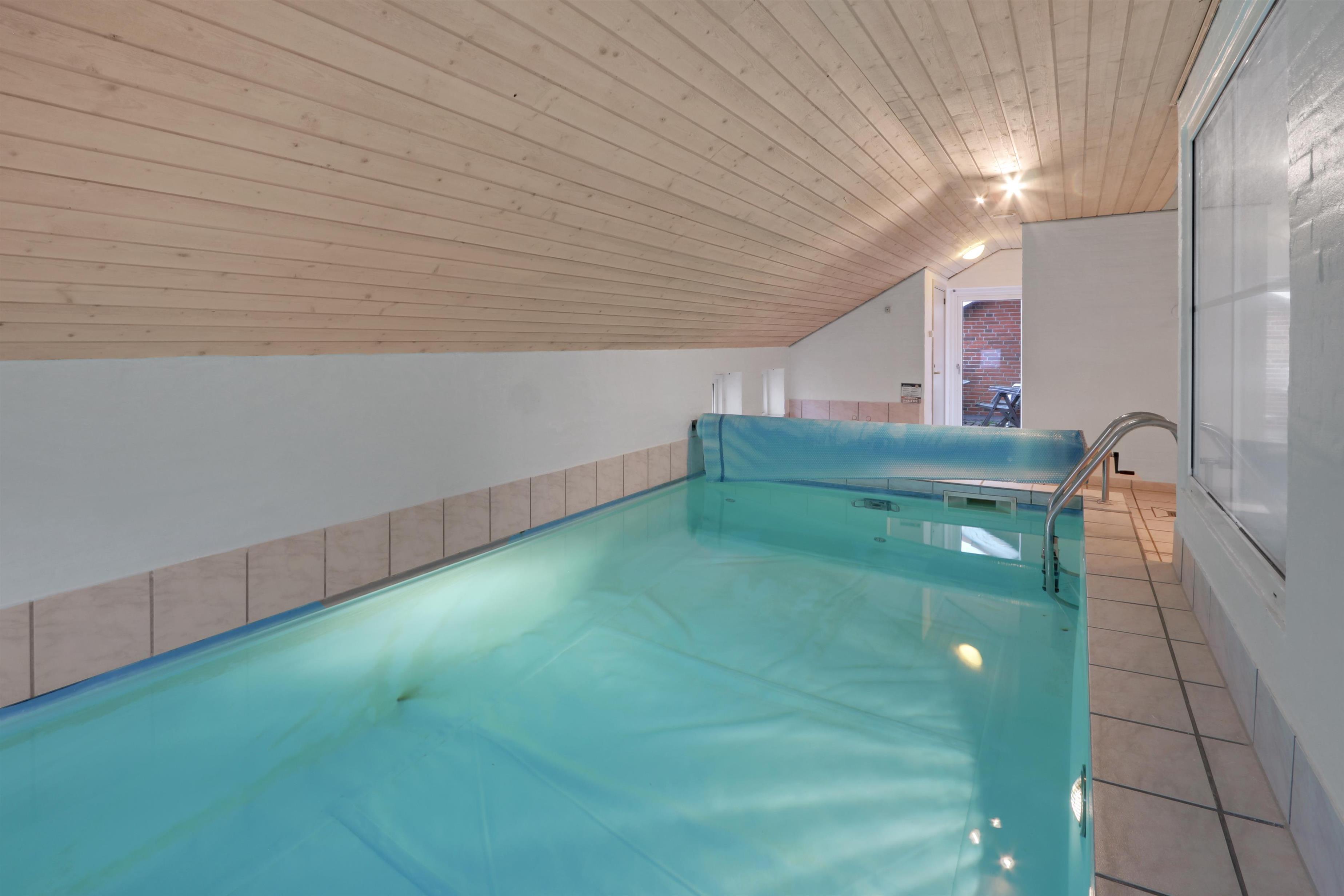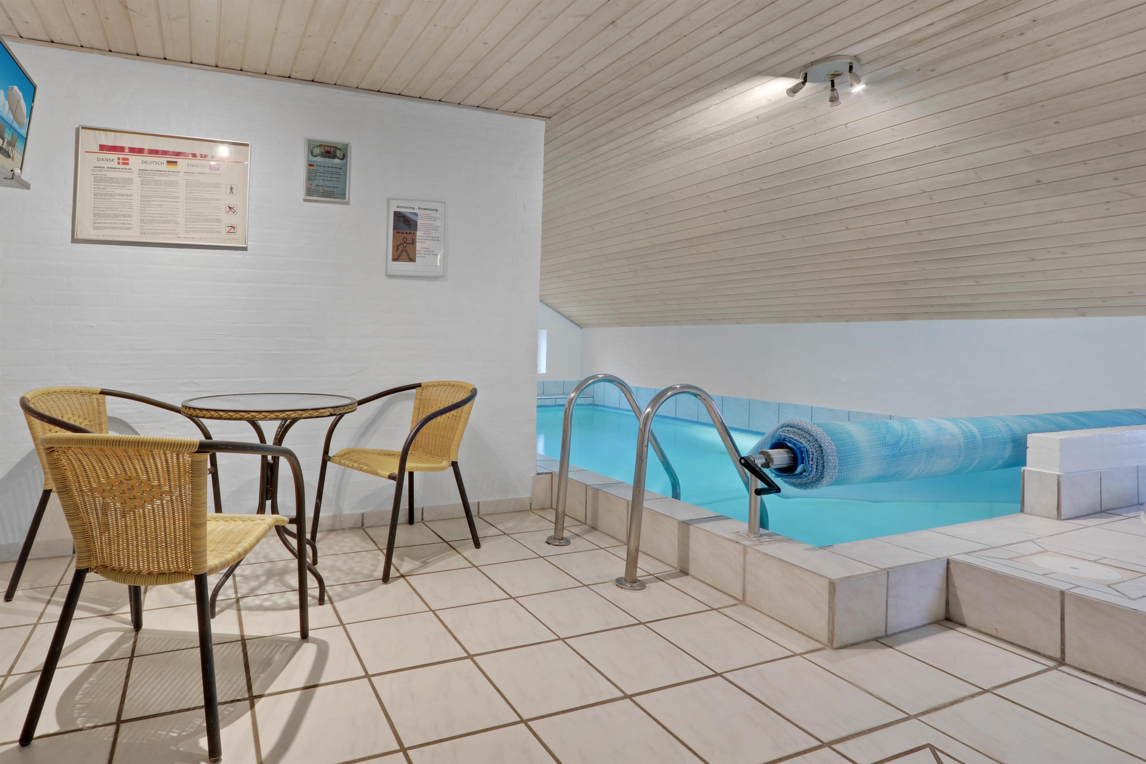 Veludstyret køkken med alle hjælpemidler bla. opvaskemaskine, mikroovn og køle-fryseskab, køkkenet er kombineret med stuen, hvor der er fladskærms-TV med DR1 og TV2 samt parabol til de tyske kanaler, DVD og CD-afspiller og naturligvis en brændeovn, hvor man kan sidde i de komfortable møbler og nyde en god bog foran den knitrende ovn. Der er faktisk hele 4 fjernsyn i huset hvor man kan se forskellige programmer på hver. De findes i stuen, i poolrummet og en i hver af 2 soveværelser. Stuen er åben til kip og har et ovenlysvindue, som giver et godt og venligt lysindfald i rummet. Der er desuden et vindue, hvorfra man kan se ud i poolrummet. Der er 4 gode soveværelser, som er indrettet med 1DS + 1DS + 2S + 2S samt en hems med 2 sovemuligheder. Poolrummet er med en pool som er 3 m x 5,5 m x 1,25 m dyb, undervandsbelysning, svømmetræner. Her er desuden adgang til et af husets badeværelser som også indeholder en sauna, spabad til 4-5 pers. og med rygmassage (model 2015,) i poolrummet har du desuden mulighed for at se TV eller lytte til din yndlingsmusik fra højttalere til CD-afspiller. Husets andet badeværelse er med gulvvarme, toilet, håndvask og bruser. I husets bryggers er der naturligvis vaskemaskine og tørretumbler. Nyd at der er gratis adgang til Harboøre-Centeret. Har man el-bil eller en Plug-In hybrid, så er der ved huset 3-faset 16amp CEE stik, der kan lade op til 11 kWh samt et amlminde el-stik som også kan bruges til opladning. Depositum vintersæson kr. 3000 og sommersæson kr. 2200.