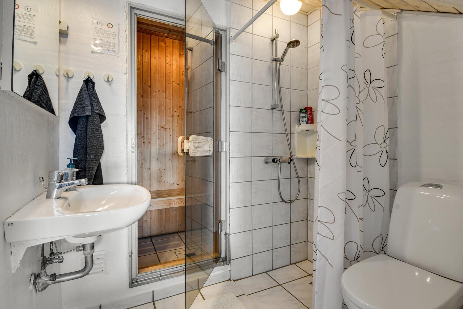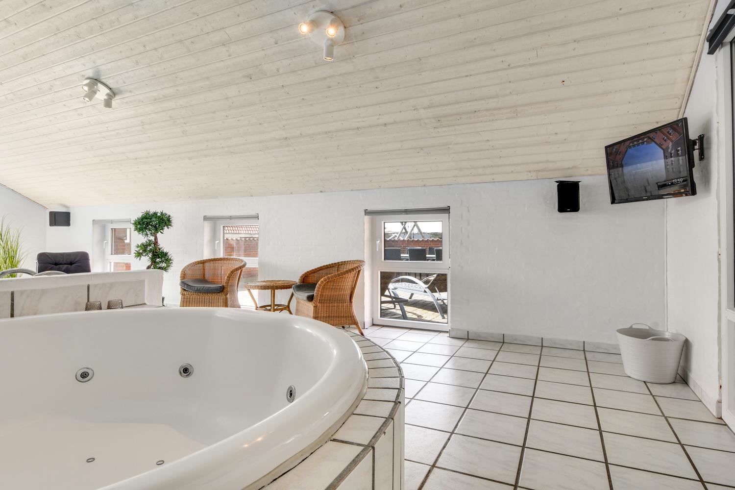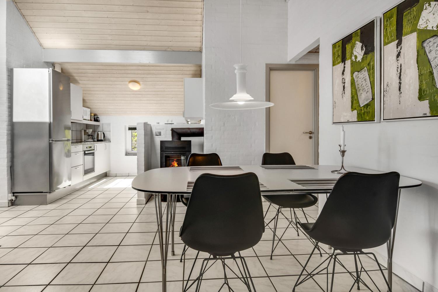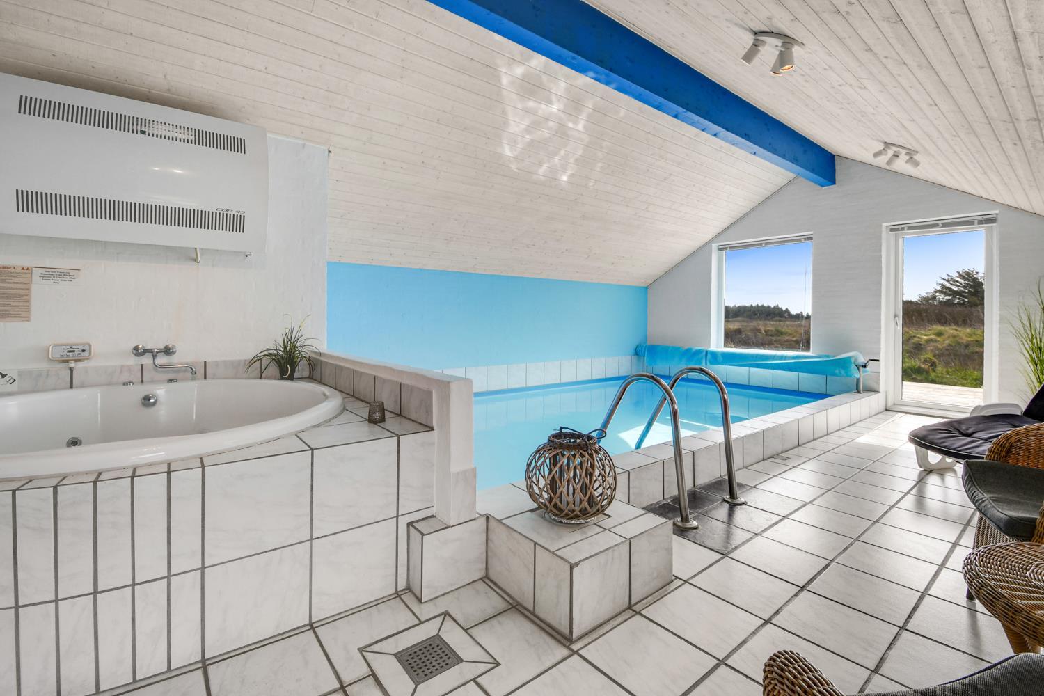 Det åbne køkken er indrettet med alle tænkelige hjælpemidler som bl.a. opvskemaskine, mikroovn og køle/fryseskab. Stuen er med brændeovn, fladskærms-TV med DR1 og TV2 samt parabol med tyske kanaler, der er desuden DVD, CD-afspiller og spillekonsol. I stuen er der også en skøn brændeovn, som man kan nyde fra de komfortable møbler med en god bog i hånden og en varm kop te eller kaffe. 4 store soveværelser med 1DS + 1DS + 2S + 4K. Til de små gæster er der barneseng og barnestol til rådighed. 2 badeværelser begge med gulvvarme og bruser, det ene er i forbindelse med husets poolrum, og herfra er der direkte adgang til saunaen. Poolrummet har en 15 m2 stor pool med undervandsbelysning og svømmetræner samt et spabad til 4 personer. Her kan man rigtig slappe af med svømmeture i poolen og massage i spaen for til sidst at gå ind i saunaen og få kroppen varmet igennem. Der er installeret 2 varmepumper i huset som gør huset meget energivenligt og besparende. 2 hunde er tilladt. Har man el-bil eller en Plug-In hybrid, så er der opsat ladeboks ved huset. Dette er et ikke rygerhus. Depositum vintersæson kr. 3000 og sommersæson kr. 2200