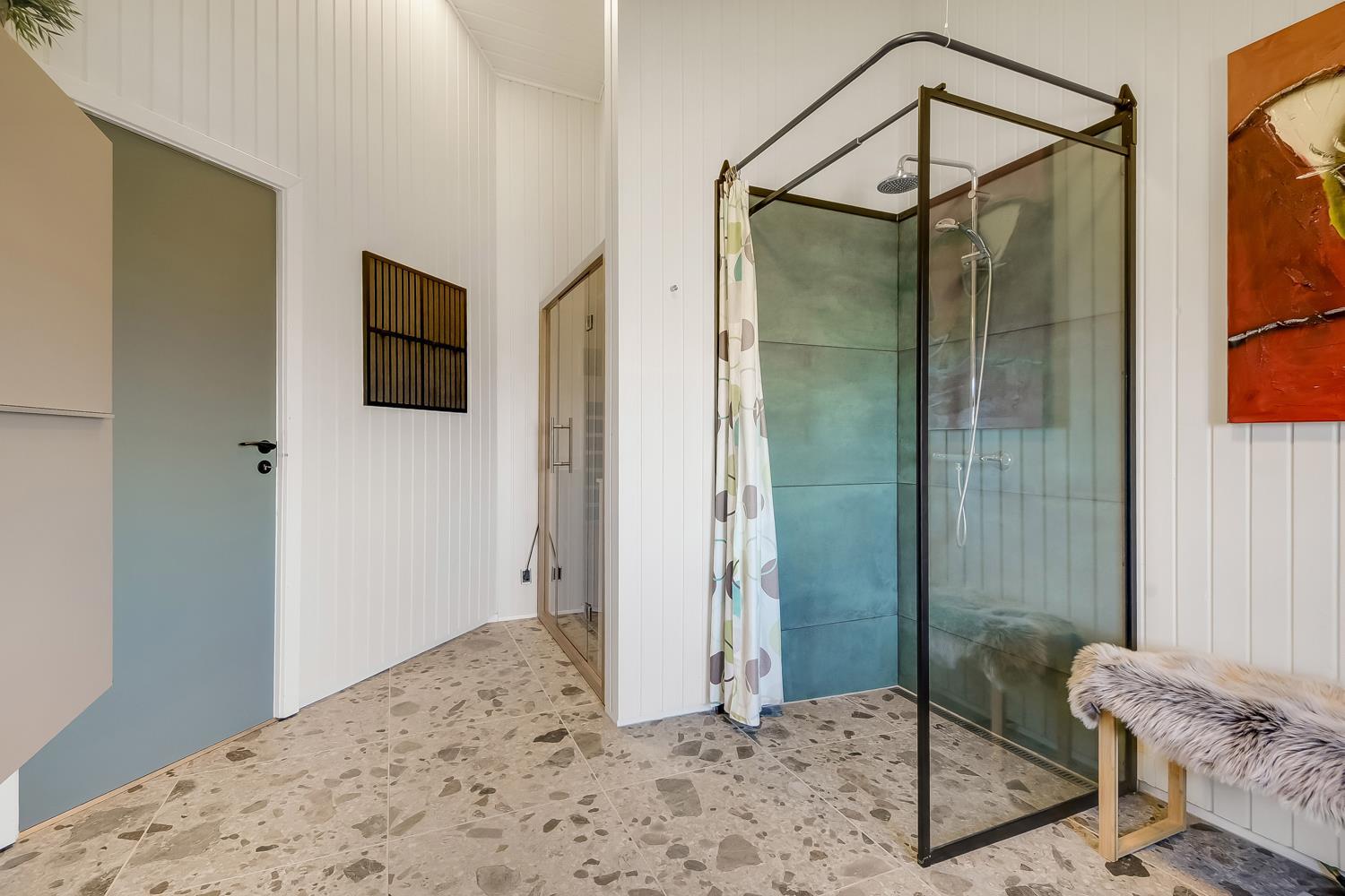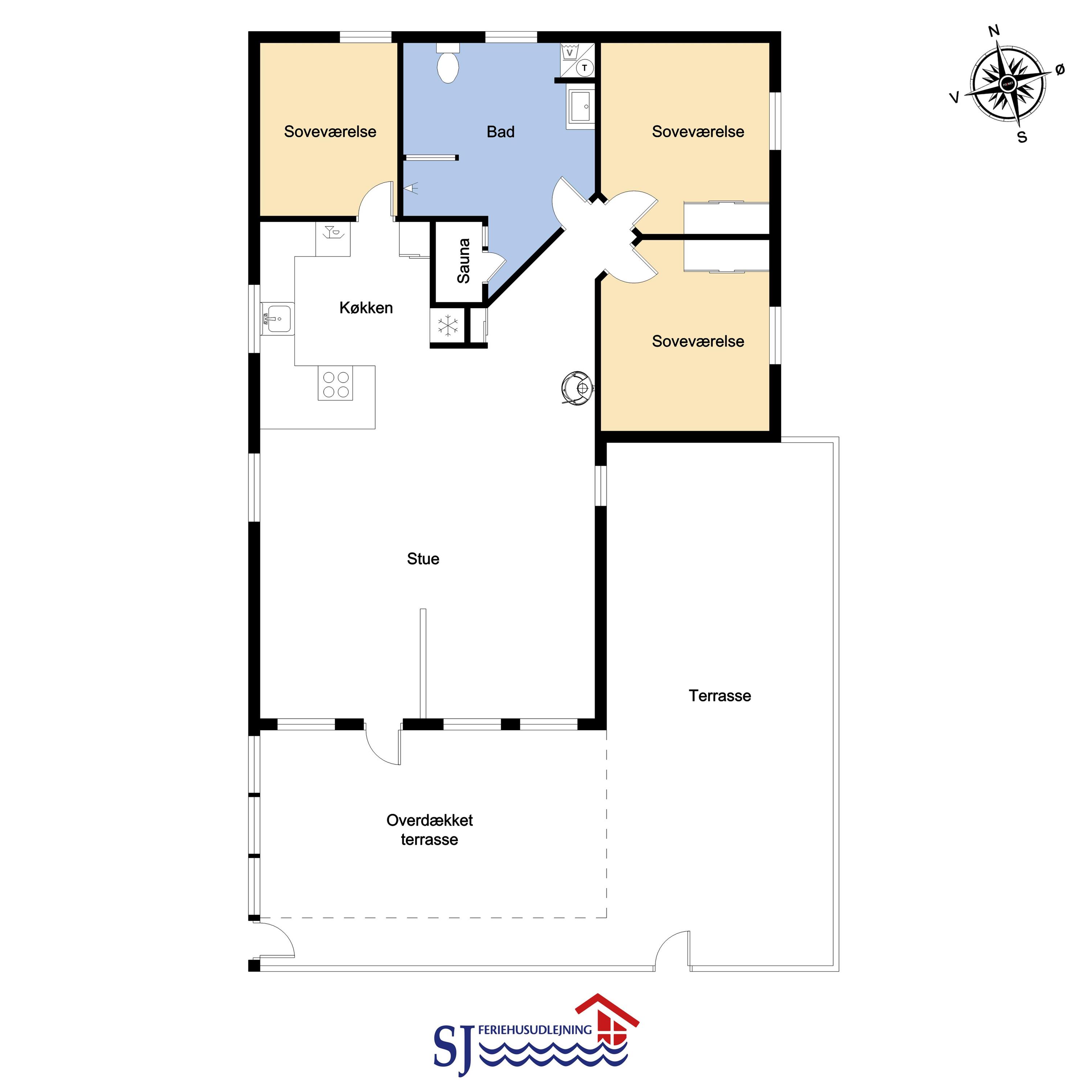 Meget flot, nyrenoveret og velholdt feriehus i træ med kombineret køkken og stue hvor der er åben til kip. Huset er holdt i lyse farver og det store vinduesparti sørger for et godt lysindfald. Stuen er indrettet med gode lædermøbler og spisebord, her er der F-TV med DR-kanaler og tyske kanaler via parabol, radio. Desuden er der en dejlig ny brændeovn og en varmepumpe som begge sørger for en behagelig varme uanset årstid, og er medvirkende til en billigere forbrugsregning. Åbent køkken med elkomfur med keramiske kogeplader, emhætte, køleskab med frostboks, opvaskemaskine. I stue og køkken er der linoleumsgulv. Stort og nyrenoveret badeværelse med toilet, håndvask, bruser og infrarød saunakabine. 3 flotte soverum: 1DS + 1DS + 1DS. Til de mindste gæster er der en barnestol. Der er selvfølgelig også en vaskemaskine og tørretumbler i huset. 2 husdyr er tilladt. Ikke rygerhus.