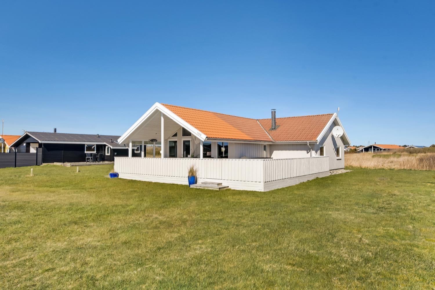 Huset er beliggende på en naturgrund tæt på Vesterhavet og Ferring Sø. Der er en lækker stor delvis overdækket og lukket terrasse med flere havemøbler, solvogne og grill. Her er der altid mulighed for at finde en plads i solen eller i læsiden. Huset er beliggende 200 m fra Ferring sø og her har man mulighed for at følge den nyanlagte sti omkring søen. Ønsker man at besøge stranden ved Vesterhavet er der blot 350 m fra huset til stranden. Her er der mange muligheder for aktiviteter kun fantasien sætter grænsen. En køretur med bil ca. 15 minutter fra huset og du kommer til havnebyen Thyborøn hvor der findes flere gode attraktioner, restauranter og butikker. Kører man i den anden retning kommer man til den gamle handelsby Lemvig som ligger i meget naturskønt område, her findes der ligeledes gode shoppingmuligheder, restauranter og museer. Dette flotte nyrenoverede hus passer både til et par eller den lille familie som gerne vil bo godt og tæt på Vesterhavet.