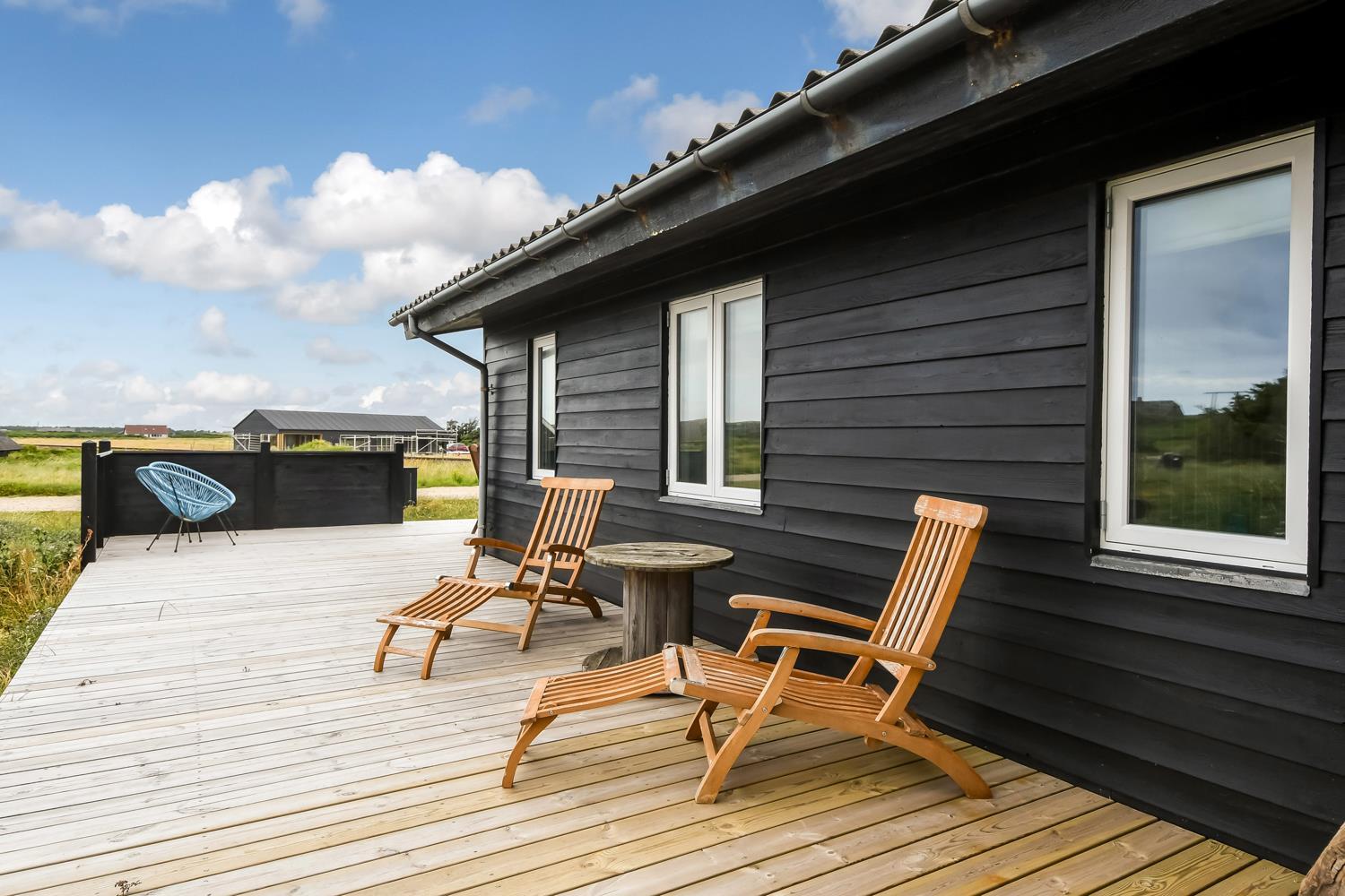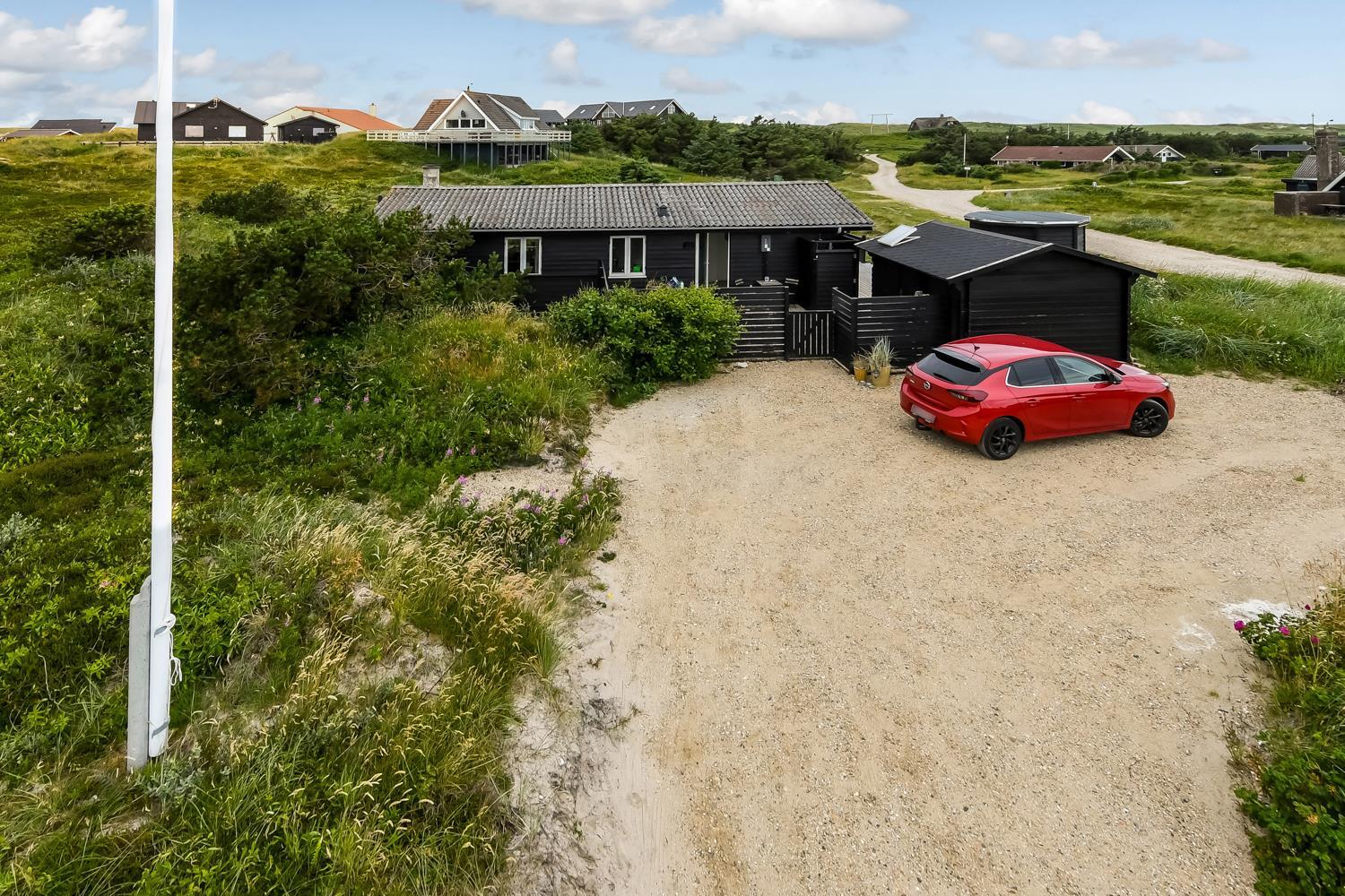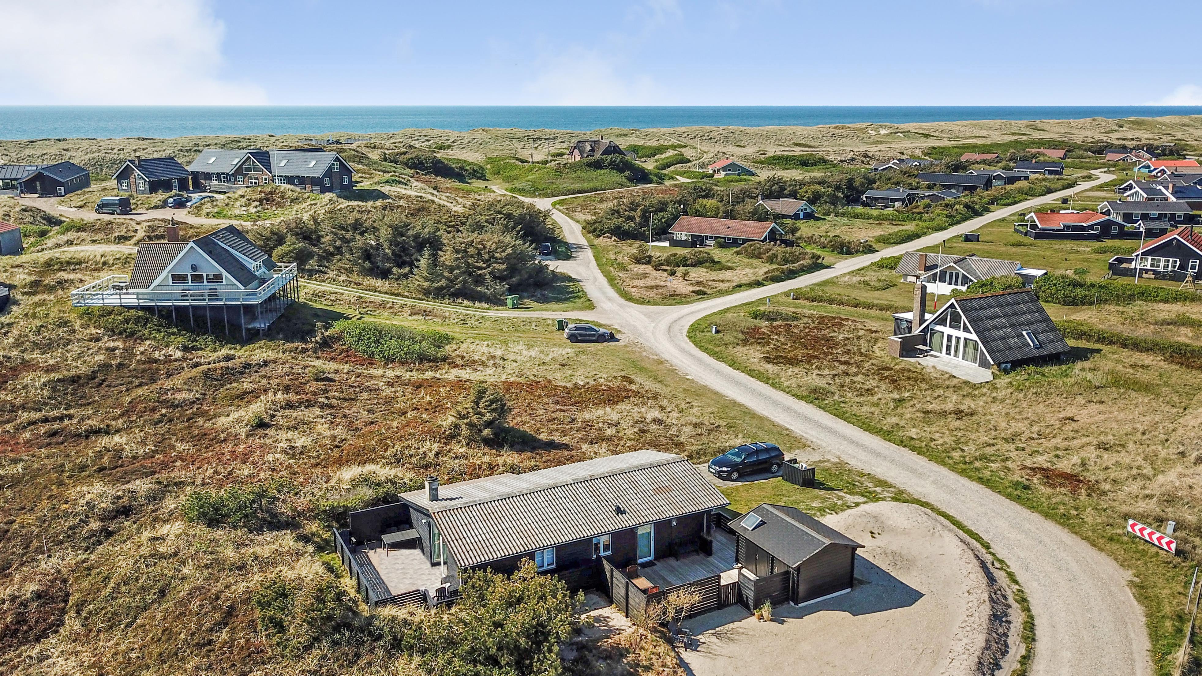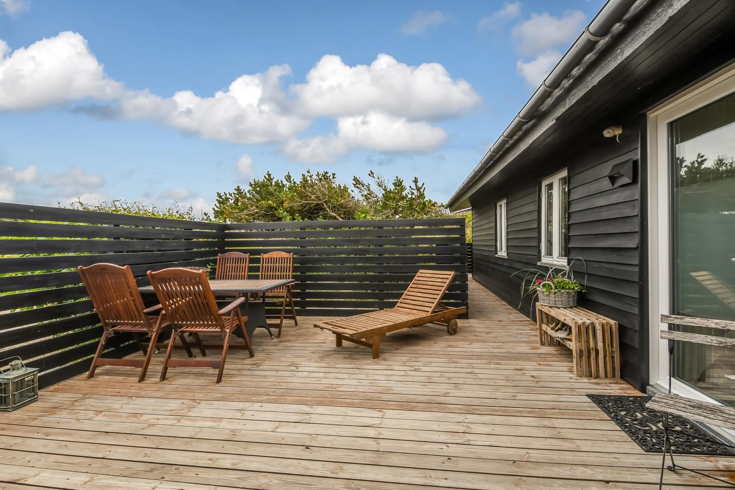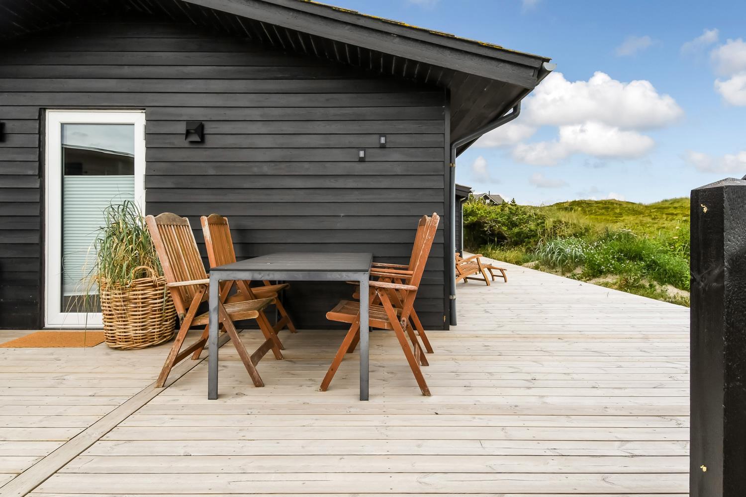 Feriehuset er beliggende på en ca. 1.284 m2 meget privat grund. Lækker lukket terrasseanlæg med havemøbler, solvogne og grill. Terrasseanlægget løber også langs med huset og er meget privat. Der er altid mulighed for at finde en plads i solen og det er nemt at spise udenfor i havemøblerne, da man derved kan bringe forsyninger ud direkte fra stue og køkken. Fra huset er der ikke langt til klitterne og på den anden side venter en bred strand og Vesterhavet med mange muligheder. Her kan man bade, sole sig, vandre, samle rav, lyst fiske eller flyve med drage. Det er altid en god start eller slutning på dagen, at trave en tur over klitten og nyde synet af Vesterhavet. Der er omkring 1500 m til nærmeste købmand, som kun har åbent i sommerhalvåret eller man kan begive sig de 4 km til Harbøre hvor der både er Brugsen og Rema1000, som for øvrigt har åbent alle dage året rundt. Dette hus har et godt udgangspunkt til at udforske området fra hvad enten man gør det til fods eller fra bil. Tag eventuelt med den Danmarks berømte jernbane VLTJ, som har et trinbræt 1000 m fra huset ved Viktoria Street Station. Ikke rygerhus.
