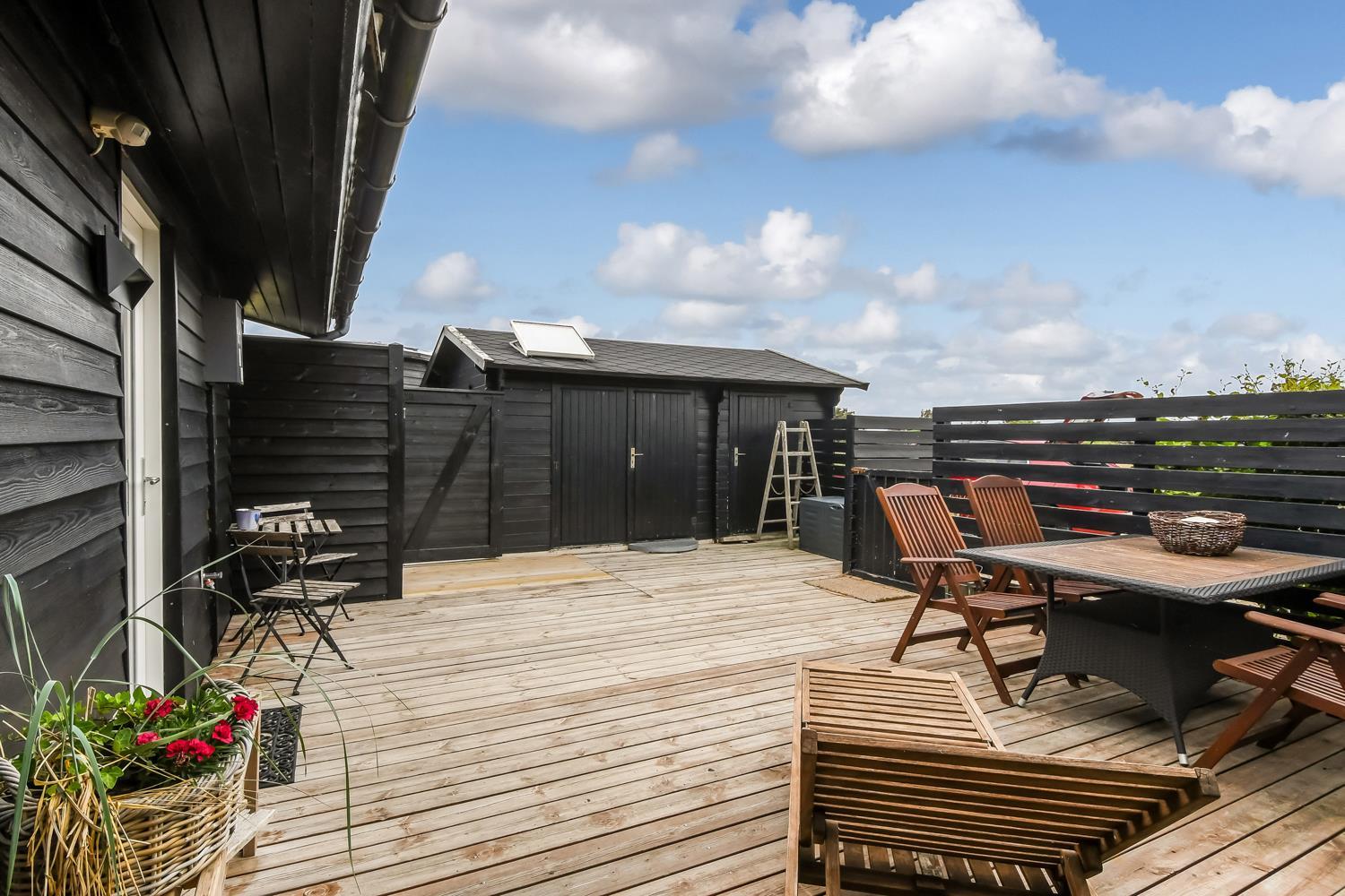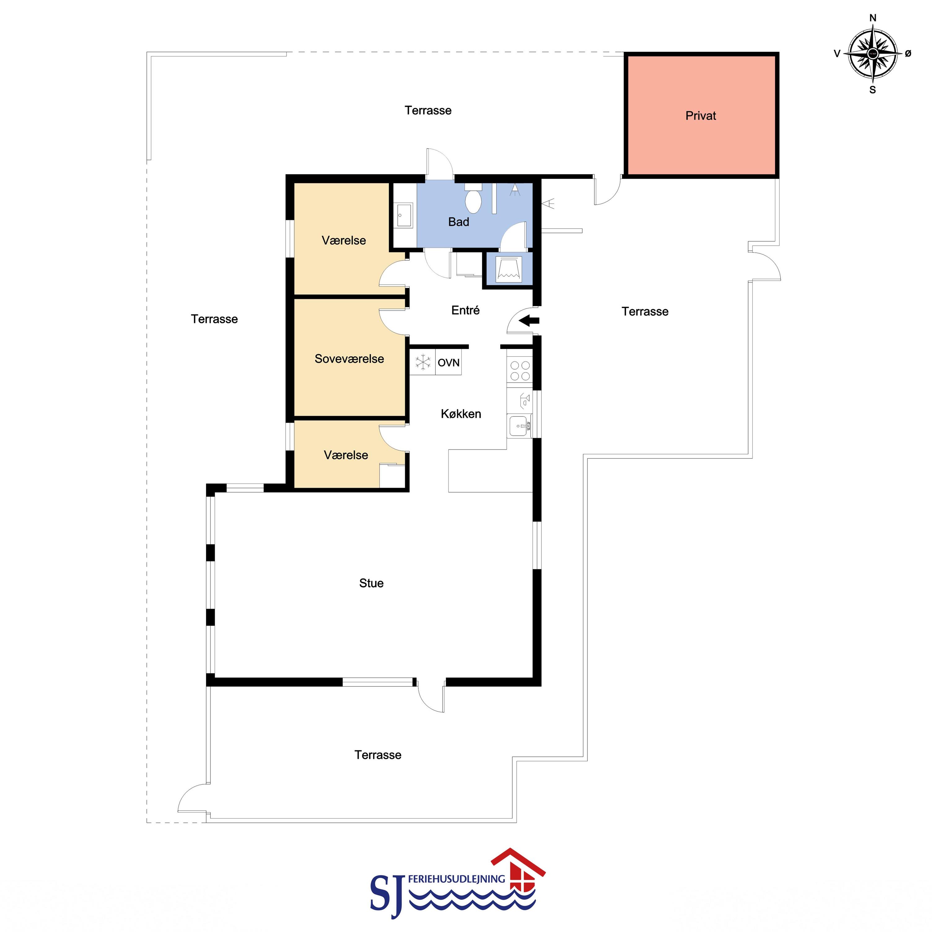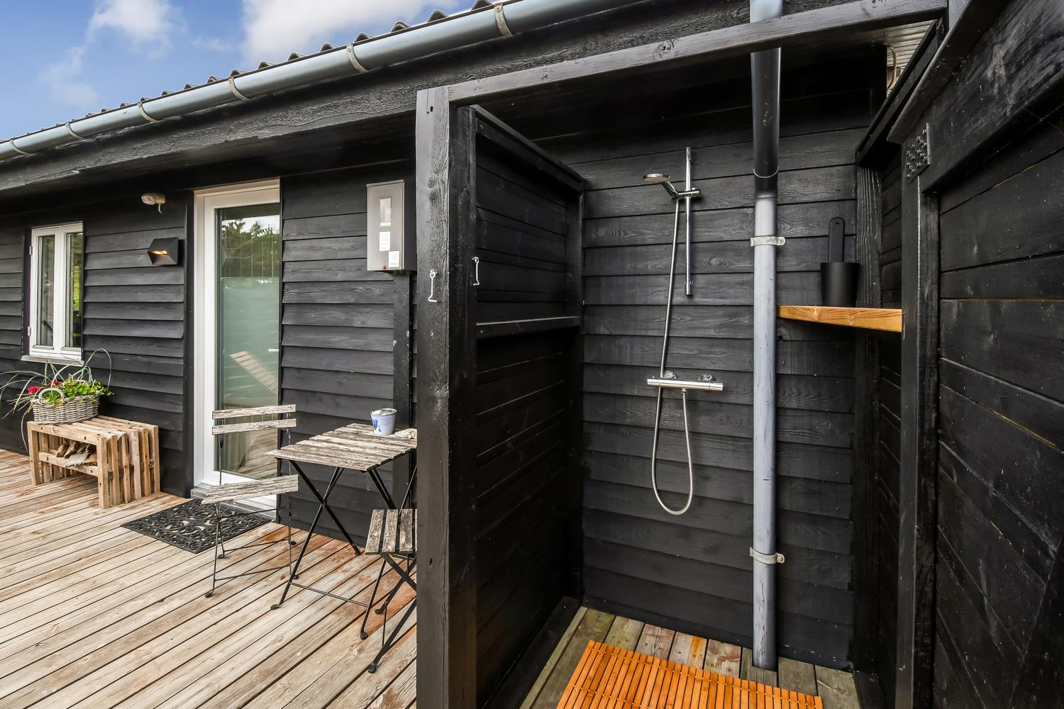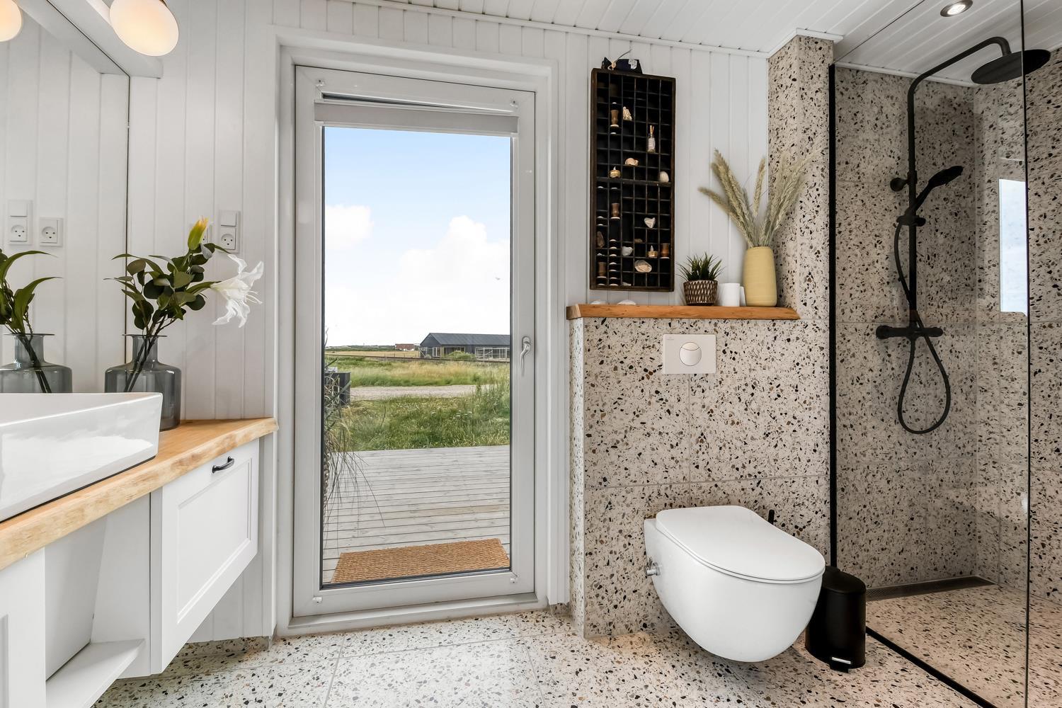 Feriehuset er beliggende på en ca. 1.284 m2 meget privat grund. Lækker lukket terrasseanlæg med havemøbler, solvogne og grill. Terrasseanlægget løber også langs med huset og er meget privat. Der er altid mulighed for at finde en plads i solen og det er nemt at spise udenfor i havemøblerne, da man derved kan bringe forsyninger ud direkte fra stue og køkken. Fra huset er der ikke langt til klitterne og på den anden side venter en bred strand og Vesterhavet med mange muligheder. Her kan man bade, sole sig, vandre, samle rav, lyst fiske eller flyve med drage. Det er altid en god start eller slutning på dagen, at trave en tur over klitten og nyde synet af Vesterhavet. Der er omkring 1500 m til nærmeste købmand, som kun har åbent i sommerhalvåret eller man kan begive sig de 4 km til Harbøre hvor der både er Brugsen og Rema1000, som for øvrigt har åbent alle dage året rundt. Dette hus har et godt udgangspunkt til at udforske området fra hvad enten man gør det til fods eller fra bil. Tag eventuelt med den Danmarks berømte jernbane VLTJ, som har et trinbræt 1000 m fra huset ved Viktoria Street Station. Ikke rygerhus.