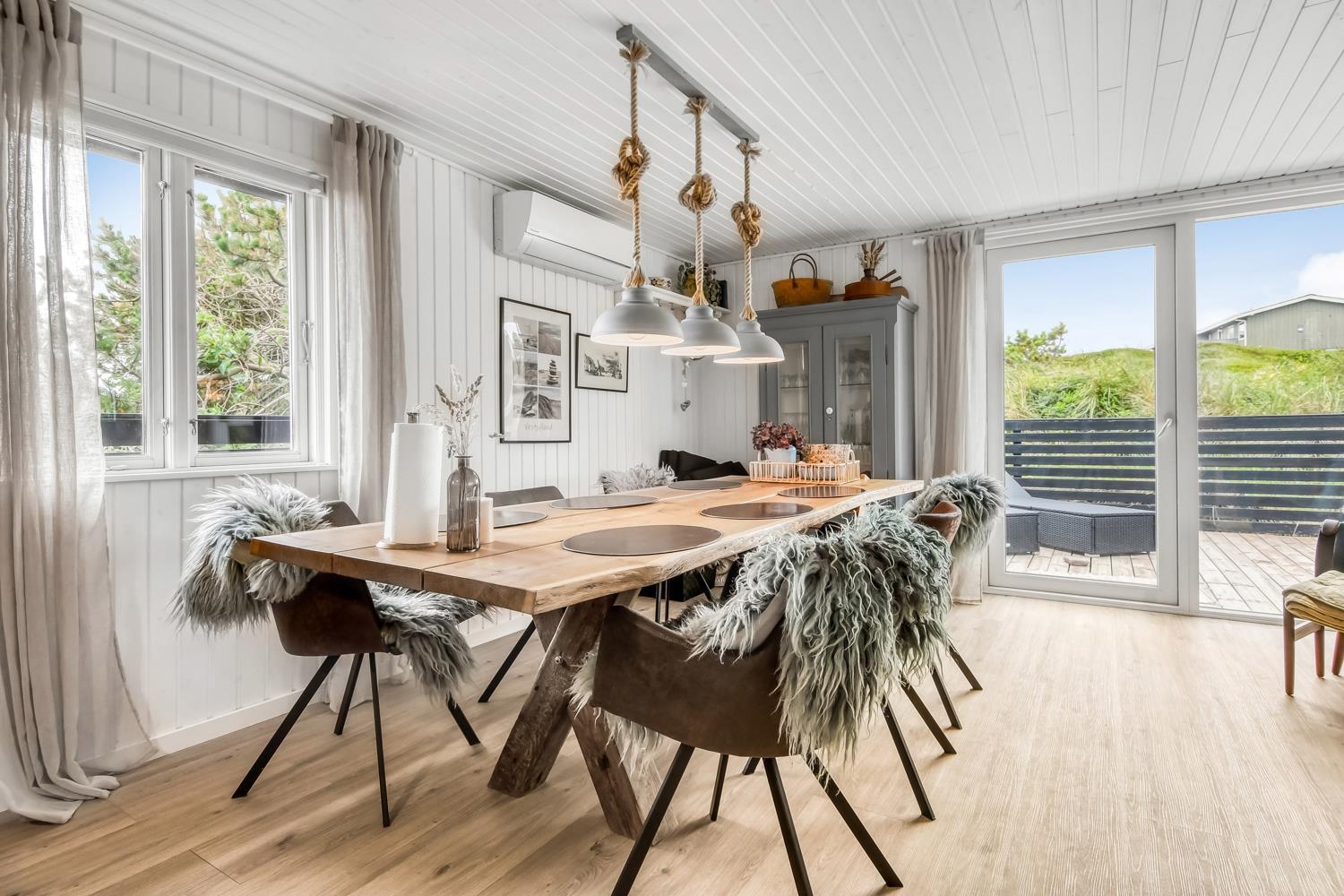 Dette dejlige feriehus i træ er 79 m2 og indrettet med en sove- og badeafdeling. Der er lige lavet et helt nyt badeværelse med toilet, håndvask og bruser. 3 soverum: 1DS + TV, 2S + TV, 1S. Stuen er indrettet med en ny brændeovn samt en varmepumpe som begge sørger for ekstra hygge og varme til de rå dage ved Vesterhavet. Opholdsstuen er med sofagruppe med sofabord, spisebord, fladskærm med danske og tyske kanaler. Helt nyt køkkenhjørne med induktionskogeplade og ovn, køle-/fryseskab, mikroovn og opvaskemaskine. Ikke rygerhus. Max 2 husdyr er tilladt.