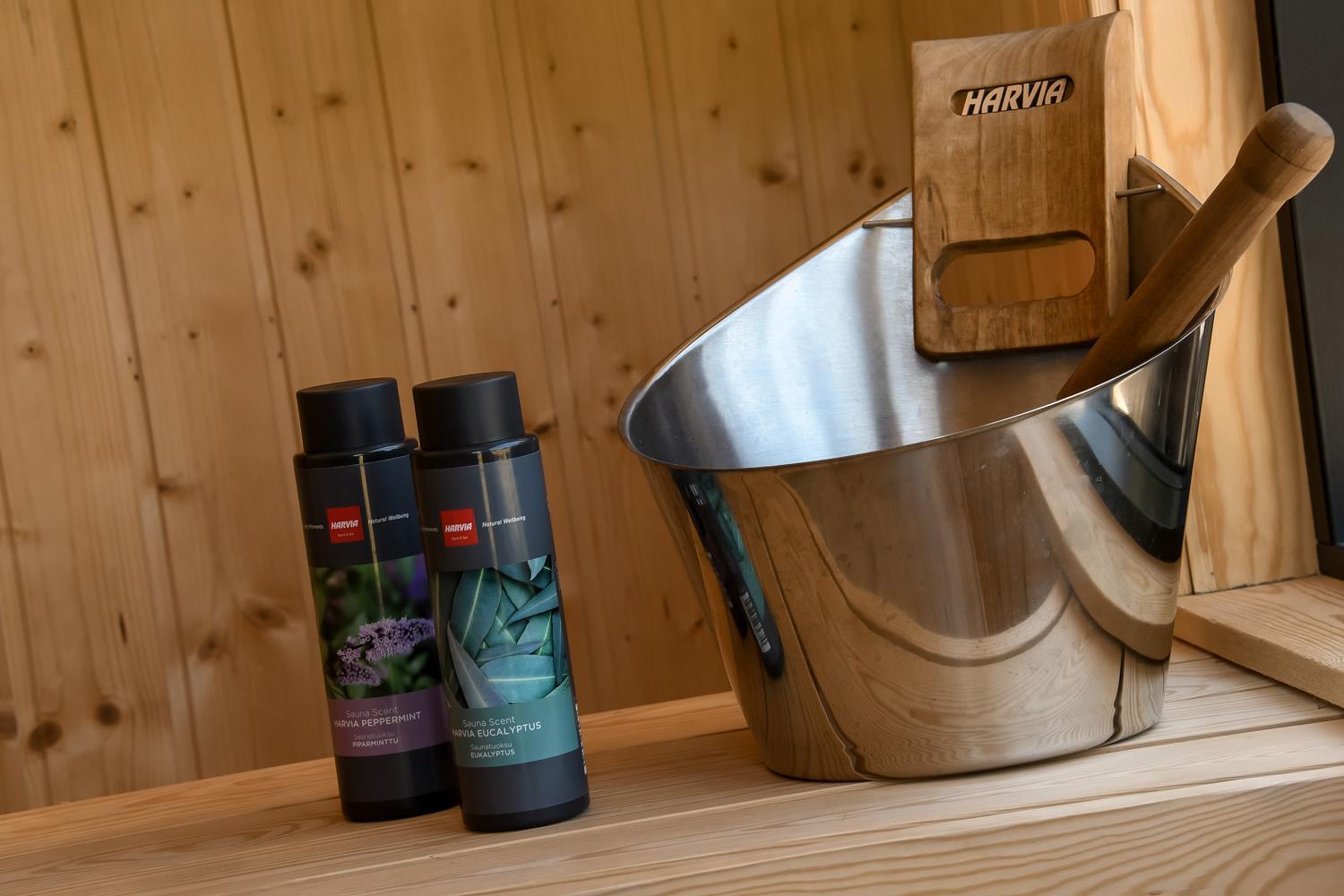Husets 2 badeværelser er helt unikke. De er begge udført i mikrocement som giver en helt speciel oplevelse. Begge har med toilet, håndvask, bruser og gulvvarme, men på det største badeværelse er der også spabad og direkte adgang til sauna. Puslepude, babubadekar, barneseng og højstol til de små medrejsende. I hele huset er det praktiske og rengøringsvenlige gulve. Der er tænkt på alt, og ejer af huset passer og plejer huset, så det altid præsenteres fra den bedste side.