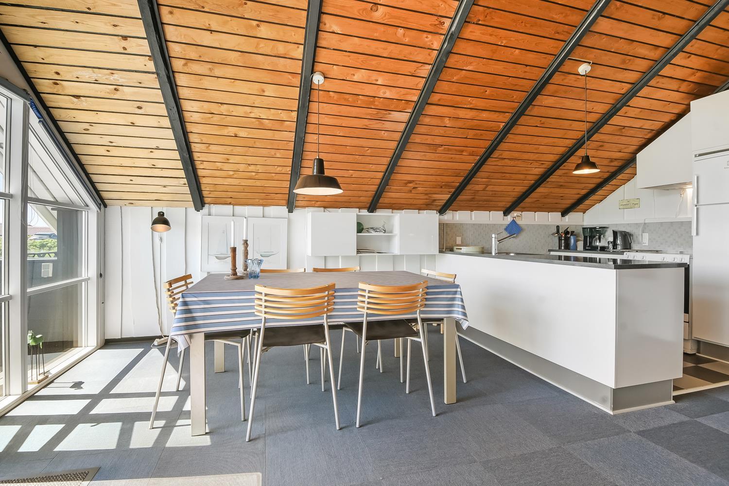 Dette dejligt indrettede træferiehus fremstår lyst og personligt. Badeværelset er helt nyt med gulvvarme, og begge soveværelser har fået ny belægning.