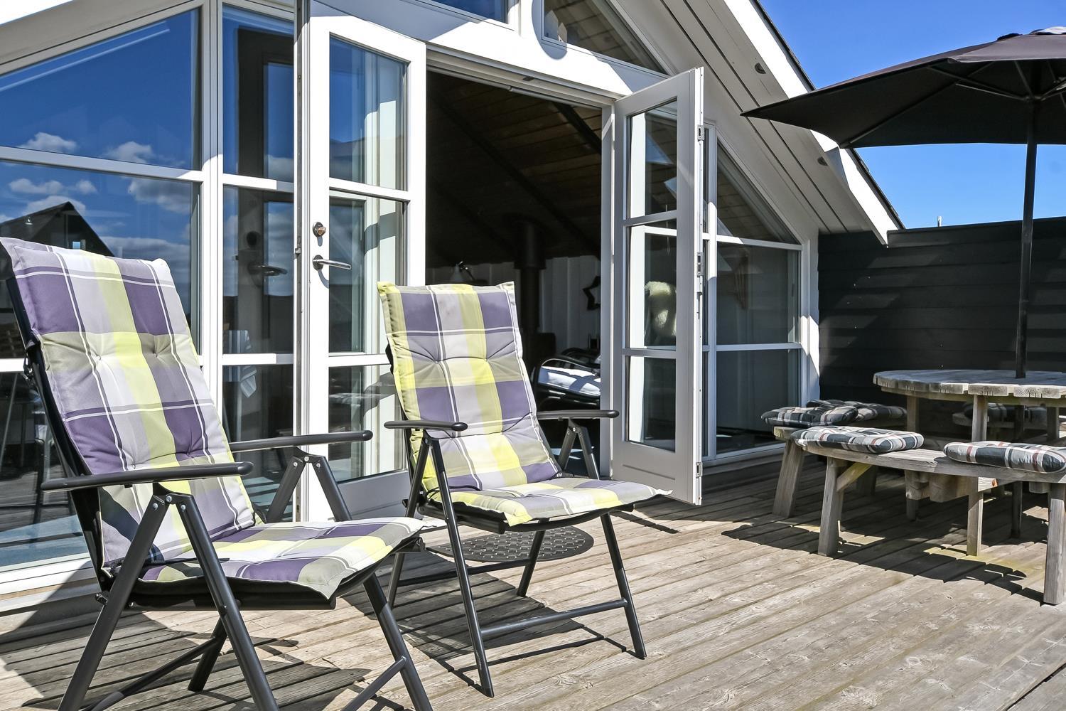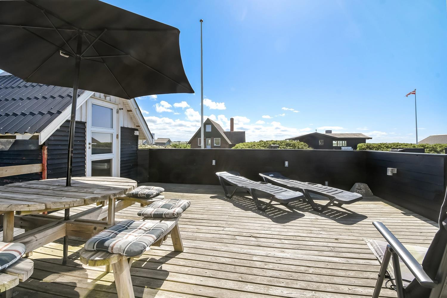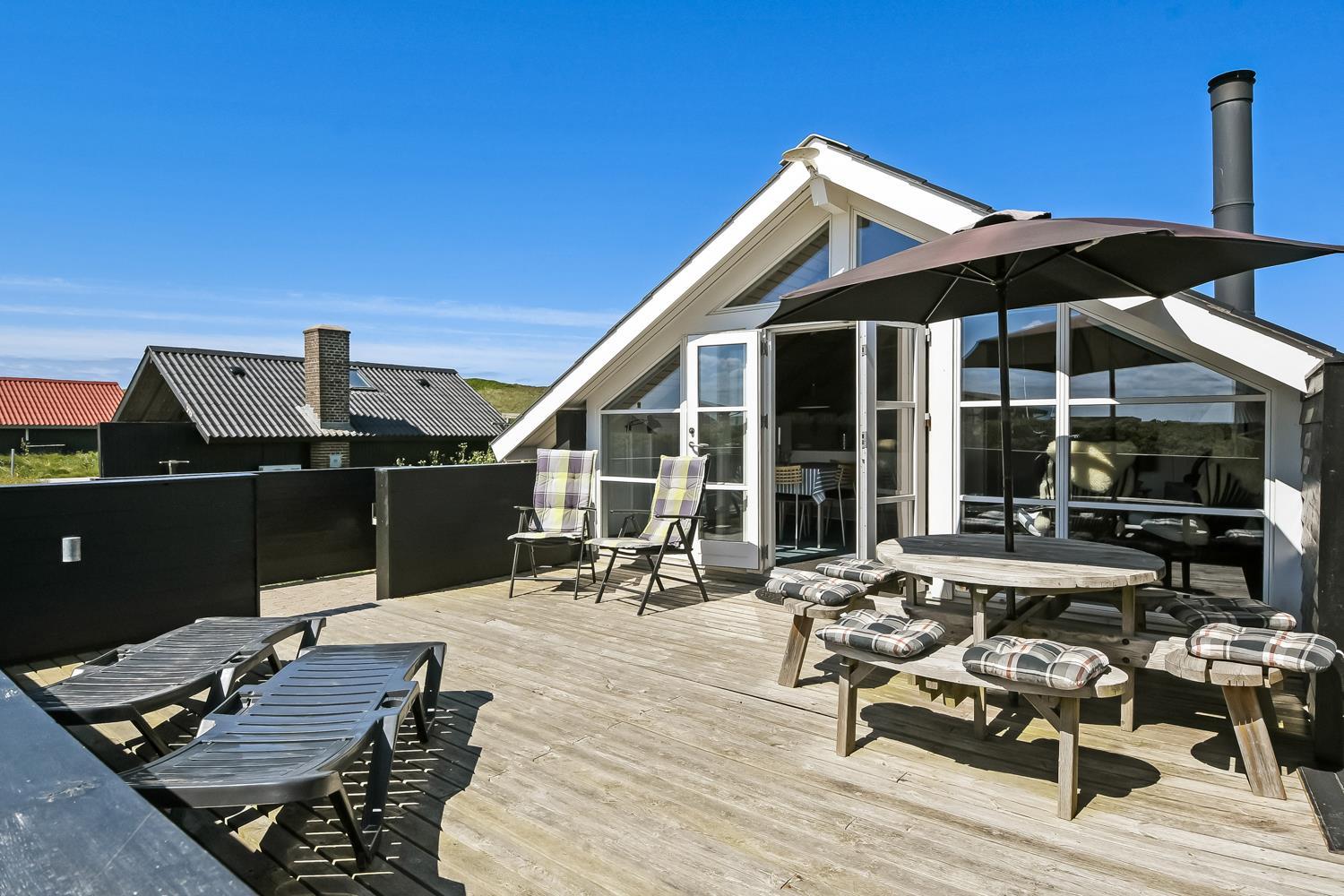 Fra terrassen kan man nyde den skønne udsigt over Ferring Sø og klitterne. Terrassen er udstyret med havemøbler, solvogne og parasol. Vesterhavet ligger inden for gåafstand og byder på daglige, maleriske oplevelser. Området er ideelt til vandre- og cykelture, og omkring Ferring Sø findes en sti, så man kan gå hele vejen rundt om søen og nyde naturen fra alle sider.