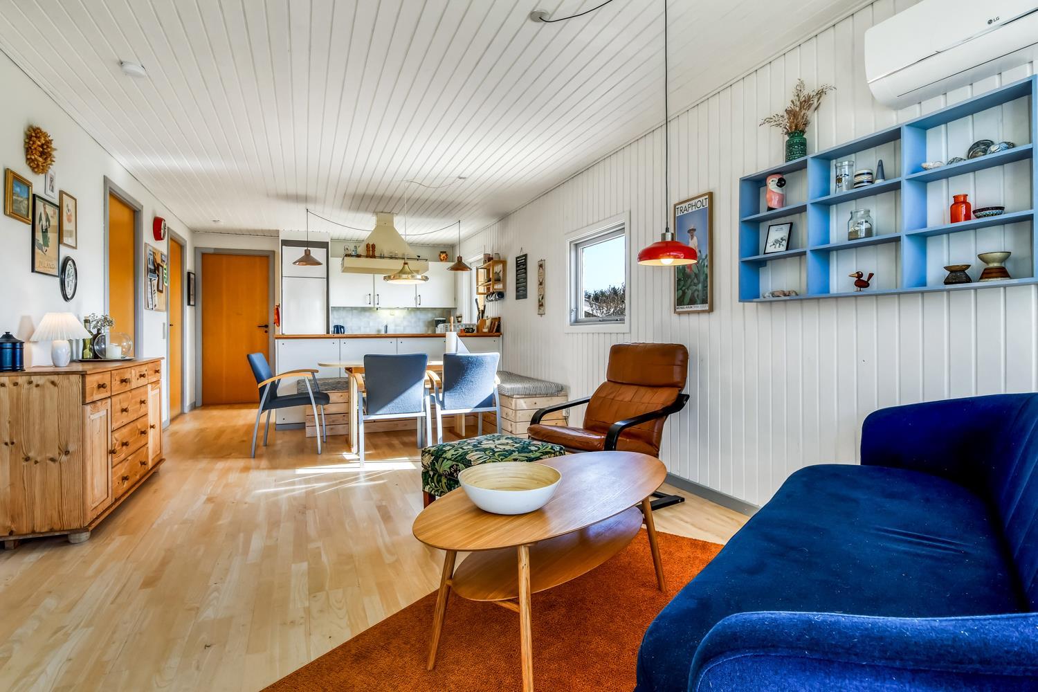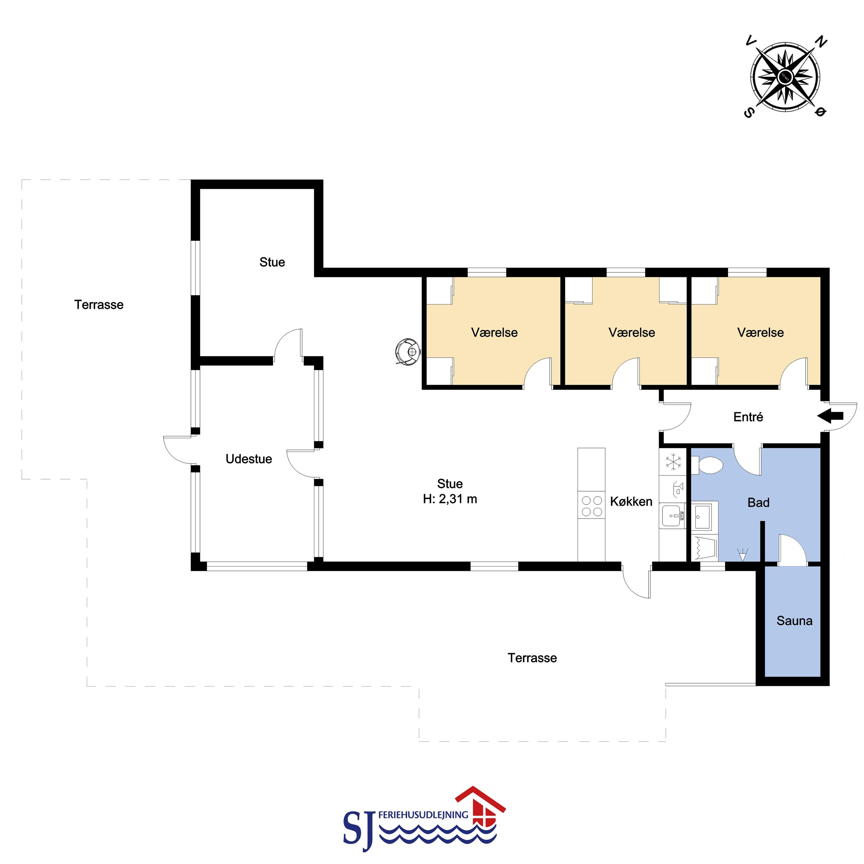 Sæt bilen i carporten og en fordeler gang byder jer velkommen. Huset er til 6 personer og har 3 værelser (1DS, 1DS, 1KS). Badeværelse med bruseniche, toilet, håndvask, klinkegulv gulvvarme, vaskemaskine og direkte adgang til mindre sauna. Veludstyret køkkenhjørne med opvaskemaskine, miniovn, komfur med glaskeramiske kogeplader, emhætte, køleskab med fryseboks, alt i service og køkkengrej samt udgang til en dejlig terrasse. Pænt møbleret opholdsstue med polstermøbler, TV med tyske og danske kanaler og en dejlig hyggekrog med brændeovn som er perfekt til hygge med spil eller en god bog. En dejlig varmepumpe hjælper yderligere til med at begrænse el-forbruget i huset. Spiseplads med hjørnebænk lige ved køkkenhjørnet. Adgang til en dejlig udestue for enden af stuen med endnu et spisebord og flotte træmøbler. Der er pergogulve i alle opholdsrum og i soverummene. Ikke ryger hus. Max 2 Husdyr tilladt
