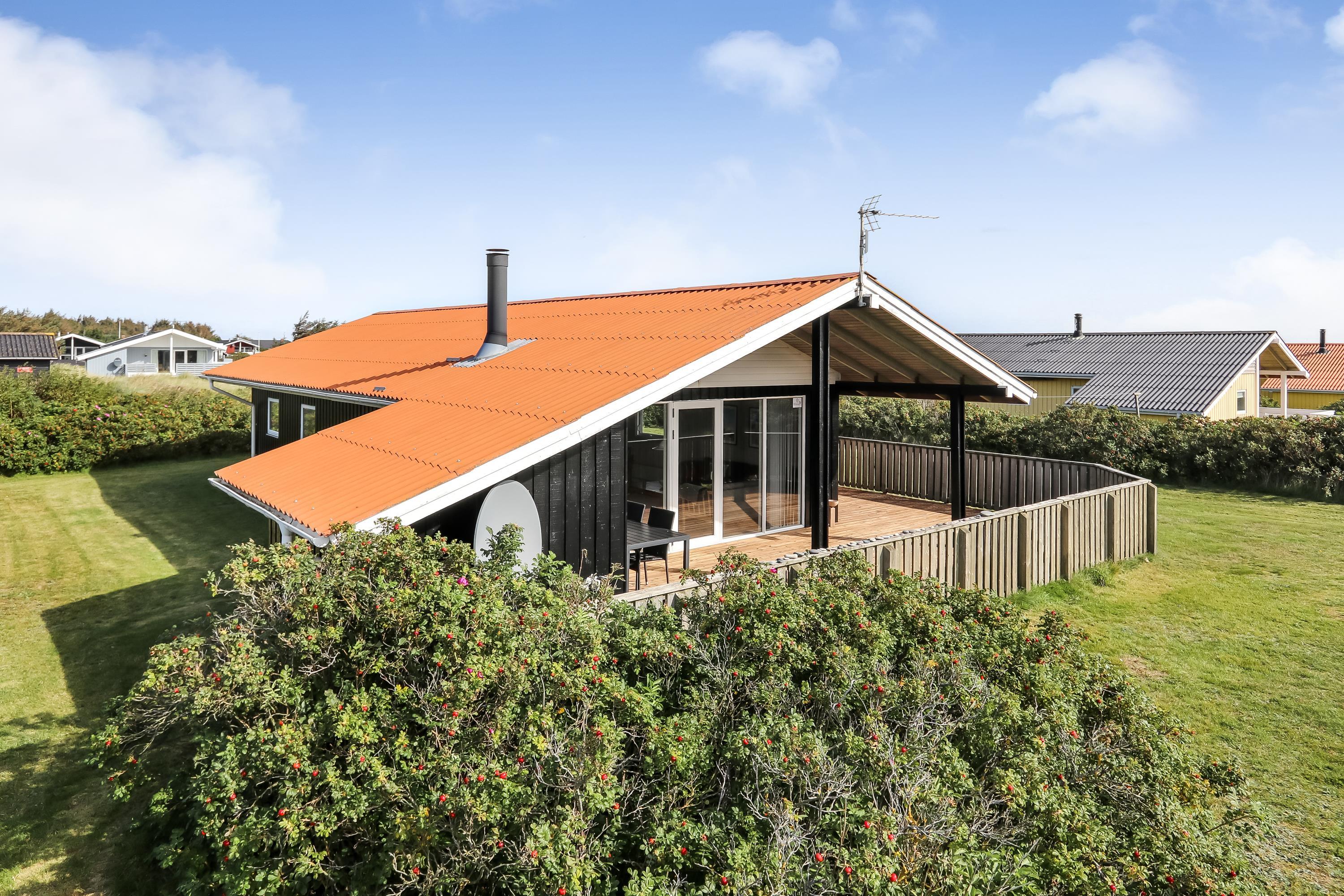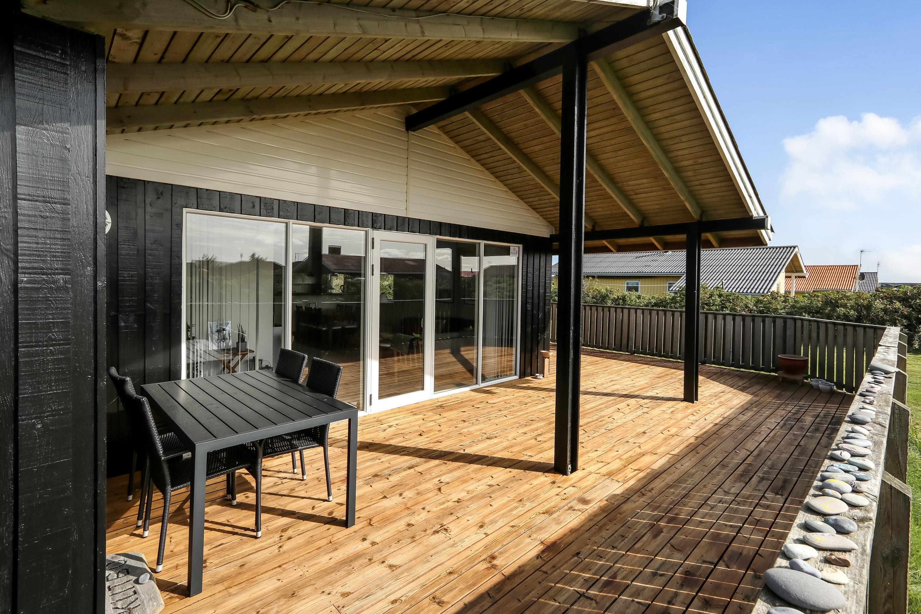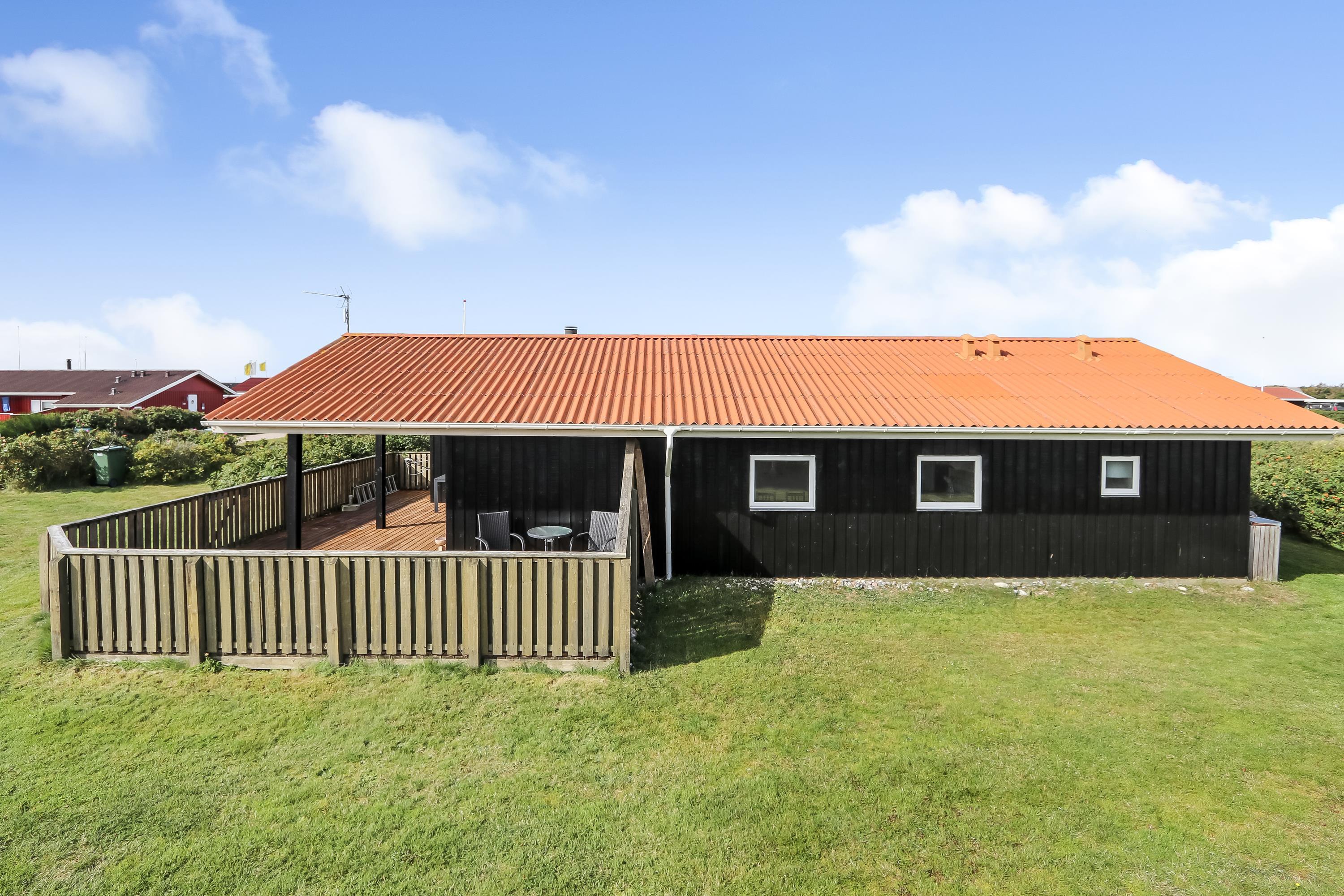 Udgang fra opholdsstuen til en dejlig delvis overdækket, indhegnet træterrasse med havemøbler, grill og liggestole. Den lukket terrasse er et stort plus når der medbringes husdyr og mindre børn. Nyd området, solen og roen på terrassen. Kun ca. 500m fra huset ligger det brusende Vesterhav som hver dag byder på en maleriske oplevelse. I sæsonen kan du hente morgenbrød, købmandsvarer eller måske invitere familien ud at spise kun ca. 2 min på gåben fra huset. Perfekt til familien eller parret som ønsker central beliggenhed i dejlige rammer hele året rundt.