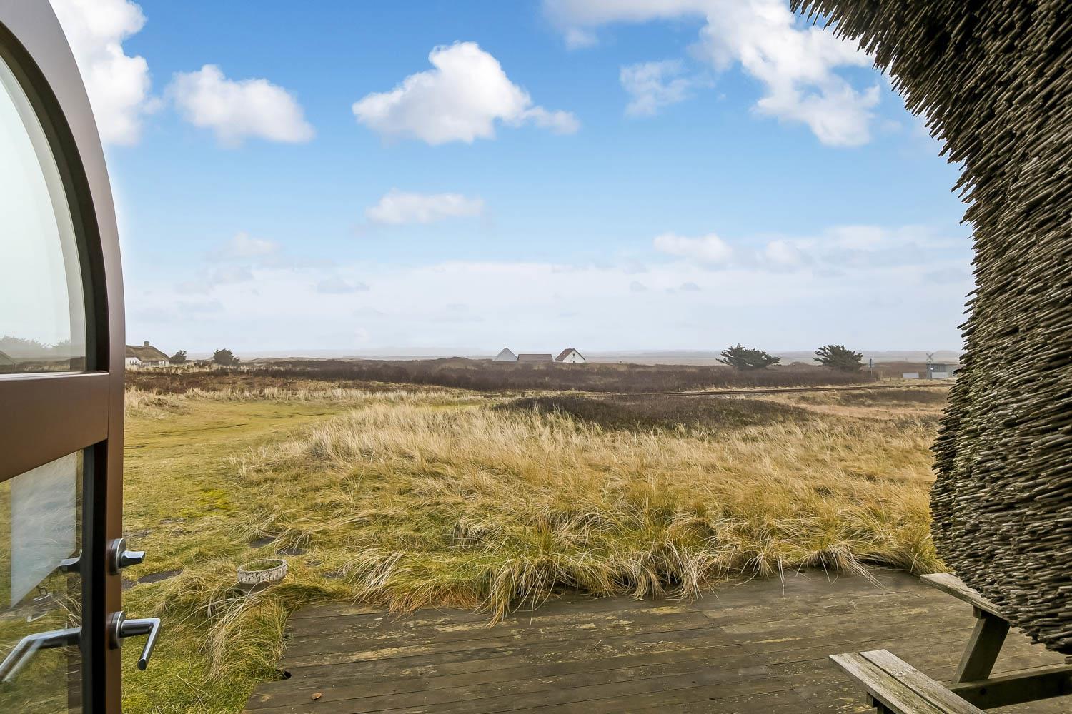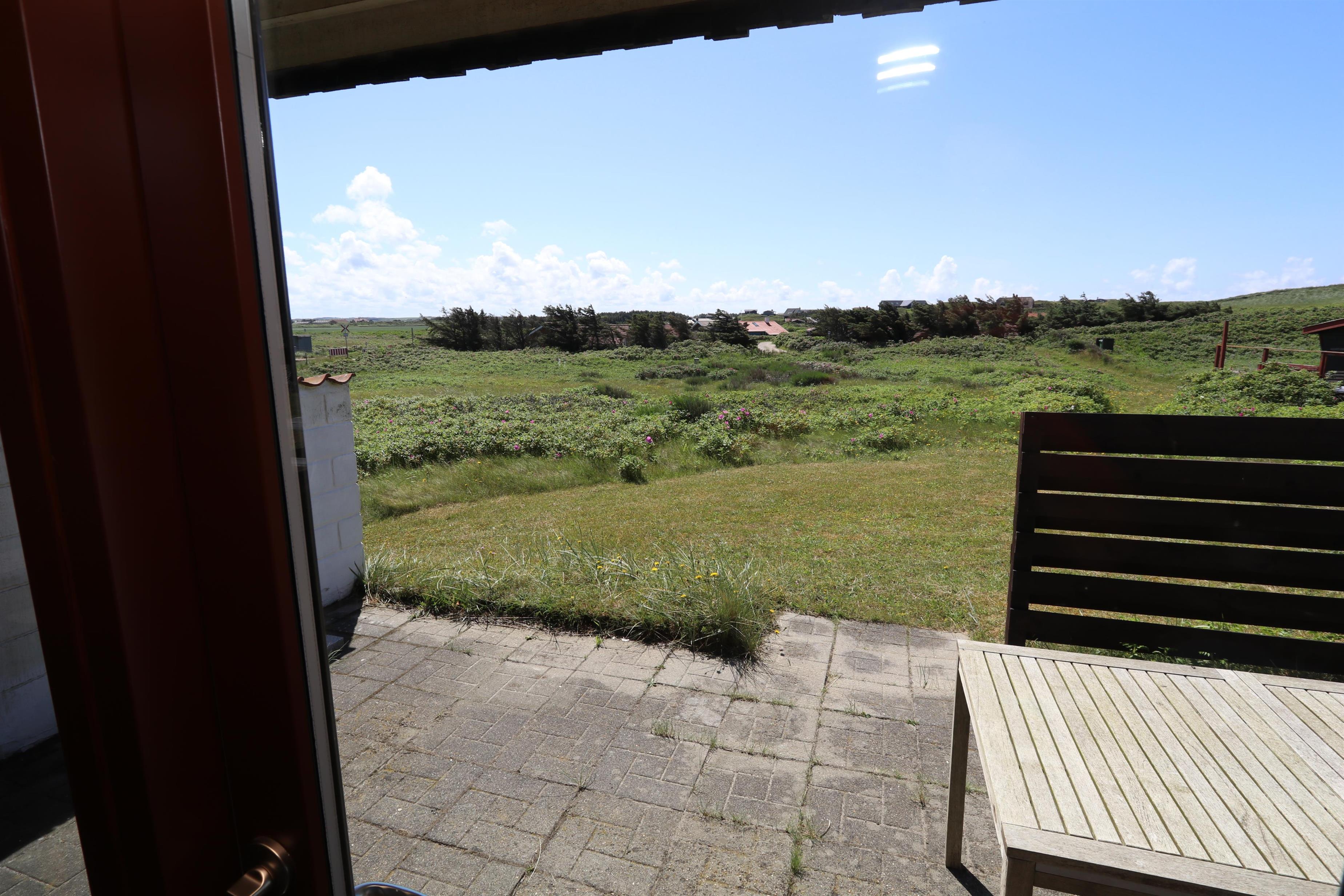 Husets ligger på en ca. 1.677 m2 stor, ugeneret naturgrund for enden af en blind vej. Der er 2 terrasser. Fra opholdsstuen er der udgang til de ene terrasser med havemøbler og grill og fra køkkenhjørnet er der udgang til en dejlig morgenterrasse med havemøbler. Fra grunden er der en sti direkte langs til klitterne og på den anden side venter en bred strand og Vesterhavet med mange muligheder. Her kan man bade, sole sig, vandre, samle rav, lystfiske eller flyve med drage. Det er altid en god start eller slutning på dagen at trave en tur over klitten og nyde synet. Der er omkring 2.000 meter til nærmeste købmand, som kun har åbent i sommerhalvåret eller skal man begive sig de ca. 5,5 km til Harboøre hvor der både er Aldi og Brugsen, som forøvrigt har åbent alle dage året rundt. Nyd en økonomisk ferie i et enkelt feriehus med en fantastisk beliggenhed. Parker bilen og nyd at I resten af ferien kan gå til stranden. Oplev det brusende Vesterhav som hverdag byder på nye oplevelser. Gå en tur eller dyrk den daglige motion langs med havet, i det smukke landskab eller udforsk områdets mange andre muligheder.