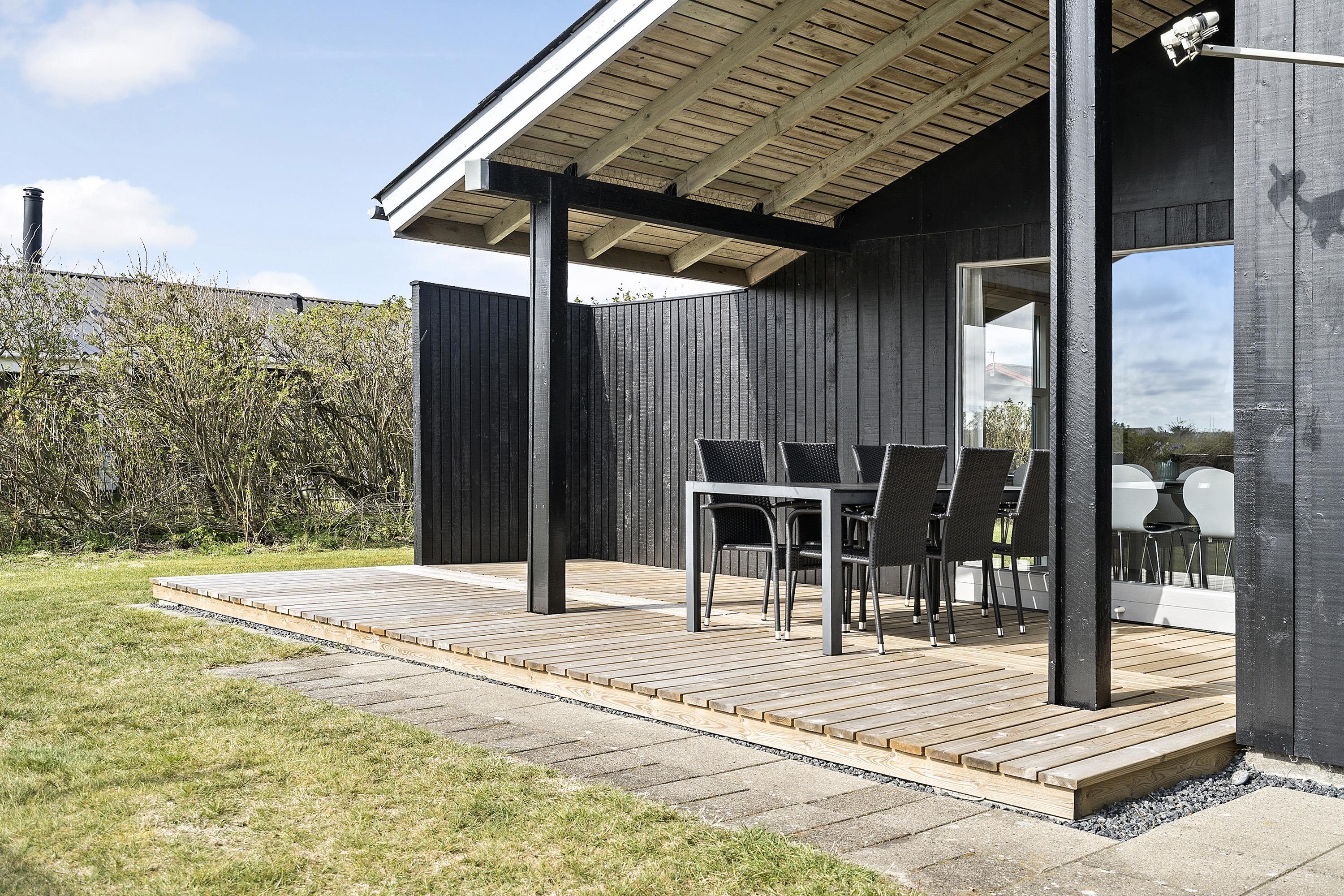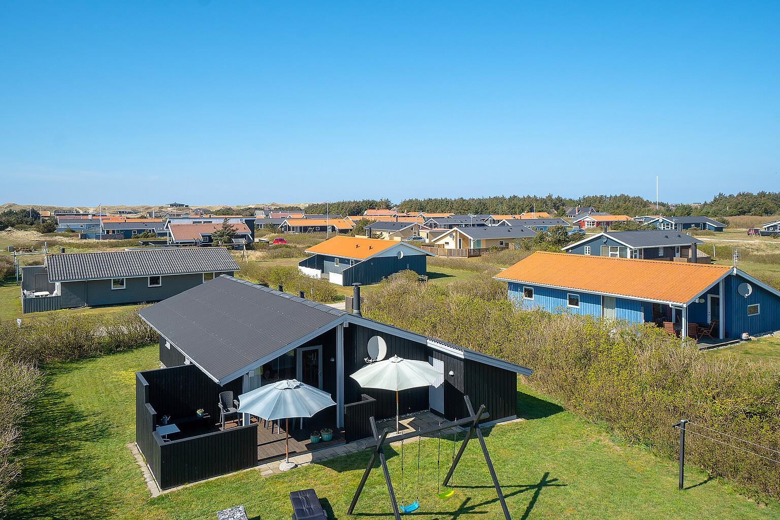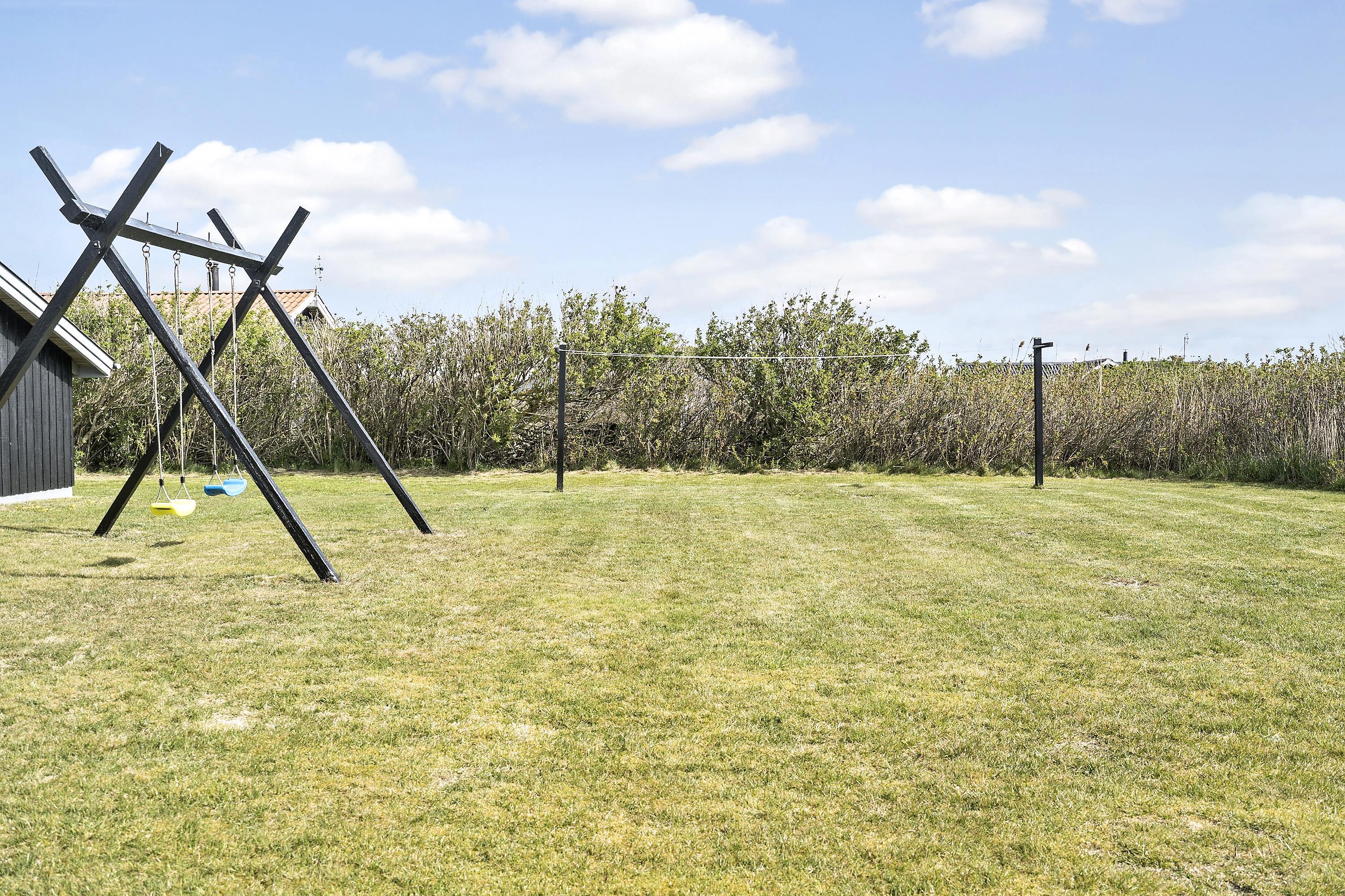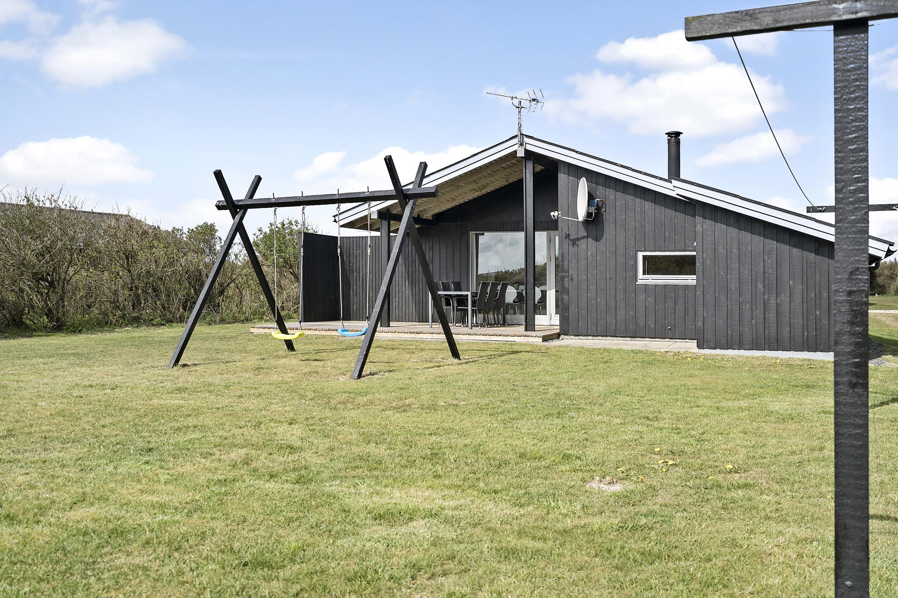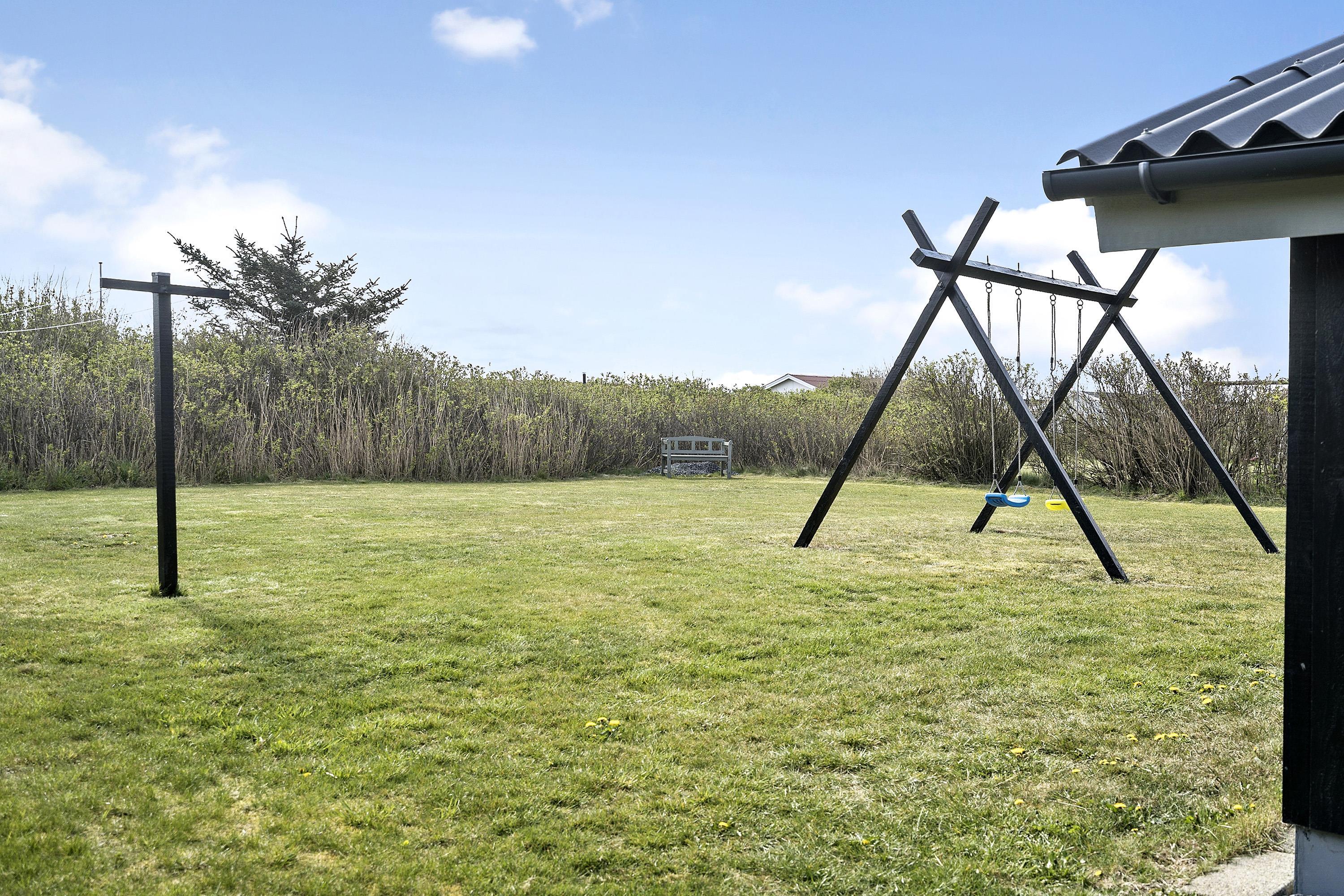 Den velholdte grund er ca. 848 m2 stor, så der er masser af mulighed for sjov og narrestreger. På grunden er der opstillet et fodboldmål og gynge stativ. Er gyngerne på grunden ikke nok, så ligger der en dejlig offentlig legeplads tæt ved huset, så der er massere af muligheder for både børn og barnlige sjæle. Fra Stuen er der udgang til en stor delvis overdækket terrasse med havemøbler, liggestole og grill. Fra køkkenet er der også udgang til en mindre morgen terrasse. med havemøbler. Der kan altid findes en plads i solen. Lille skur som er perfekt til opbevaring af diverse. Et utrolig dejligt, overskueligt hus, hvor der er tænkt på det meste og med masser af muligheder. Tæt på huset ligger Vesterhavet, der altid invitere til en frisk gå- eller løbetur. Nyd også at områdets købmand ligger i gåafstand fra huset og som i sæsonen byder på frisk morgenbrød og her kan de daglige indkøb også klares. Også området madsted ligger tæt ved huset. Inden for 25-30 minutter kan flere aktiviteter og shoppingmuligheder nås. Så hvad enten I er til aktiv ferie eller total afslapning, danner dette rummelige feriehus en dejlig ramme både hvad angår hus, beliggenhed og omgivelser.