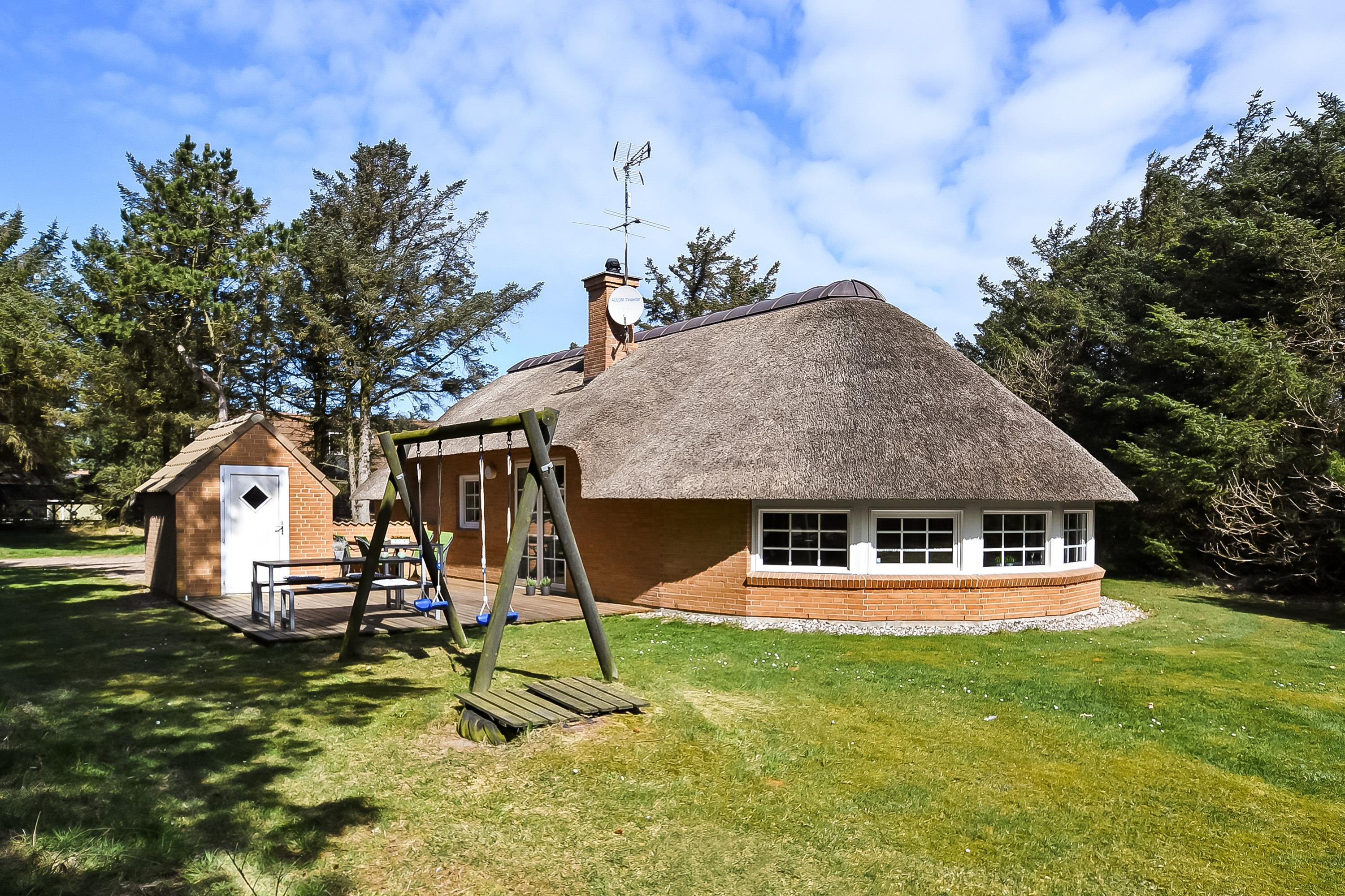 Huset ligger på en ca. 1.600m2 dejlig grund med mange solkroge. Terasseanlægget byder på gode havemøbler, liggestole, hynder, parasol og grill og som er perfekt til den hyggelige grillaften. Den velholdte naturgrund er omkranset af høje træer som giver dejlig læ, så solen kan nydes både morgen og aften. Kun ca. 350m fra huset ligger det brusende Vesterhav som hver dag byder på nye maleriske oplevelse. I sæsonen kan du hente morgenbrød, købmandsvarer eller måske invitere familien ud at spise kun ca. 5 min på gåben fra huset. Så hvad enten du er til aktiv ferie eller total afslapning danner dette flotte feriehus den perfekte ramme både hvad angår hus, beliggenhed og omgivelser.