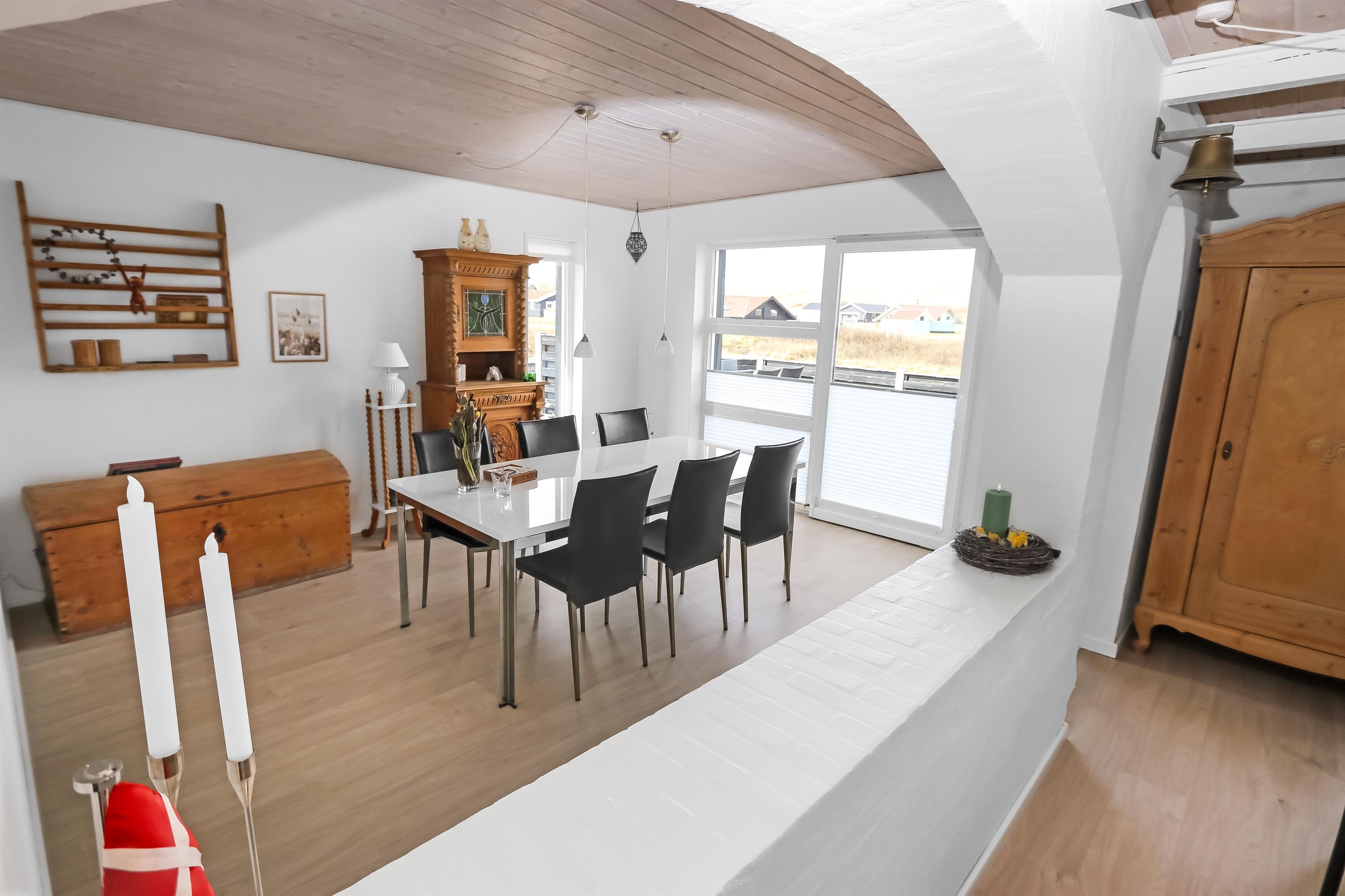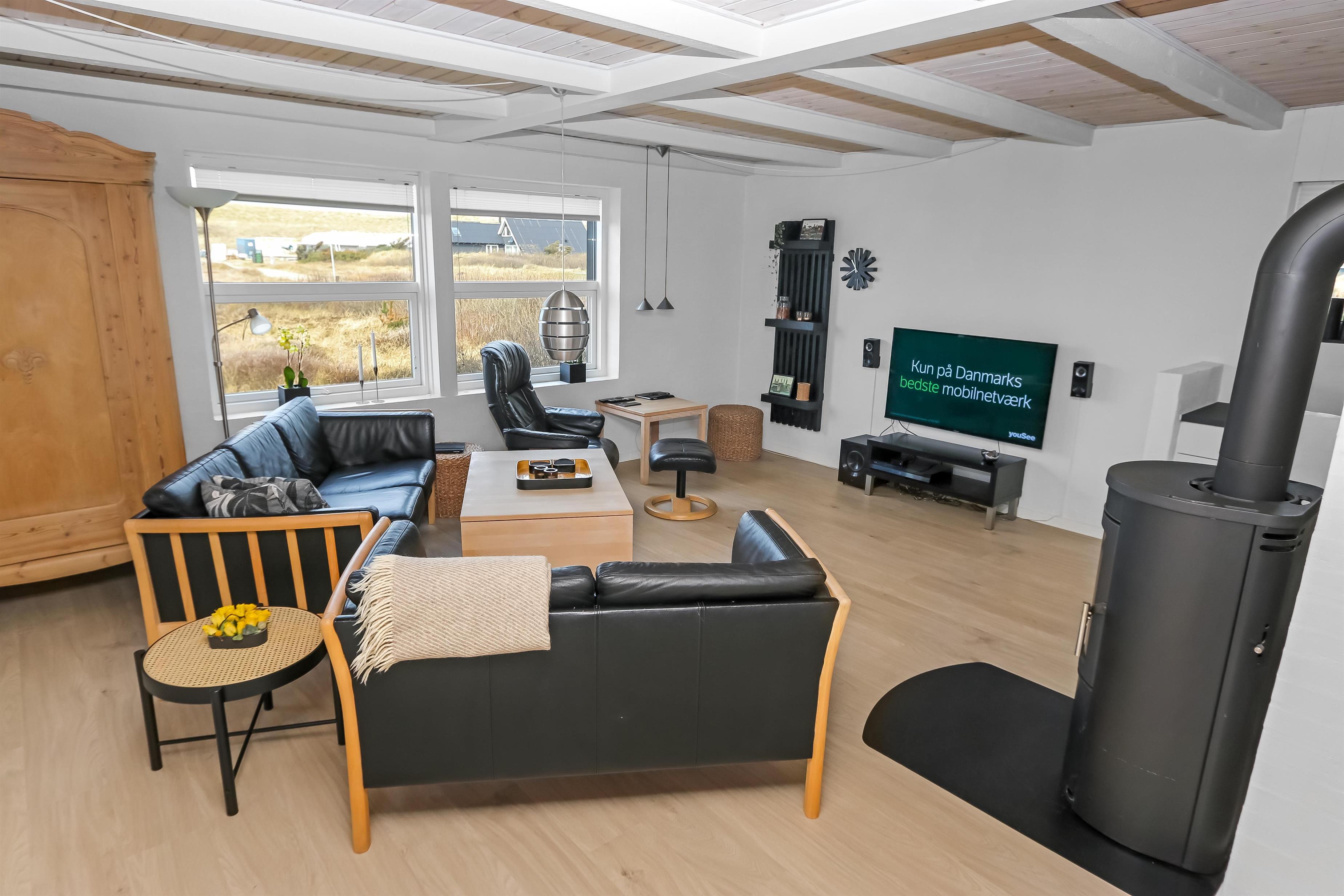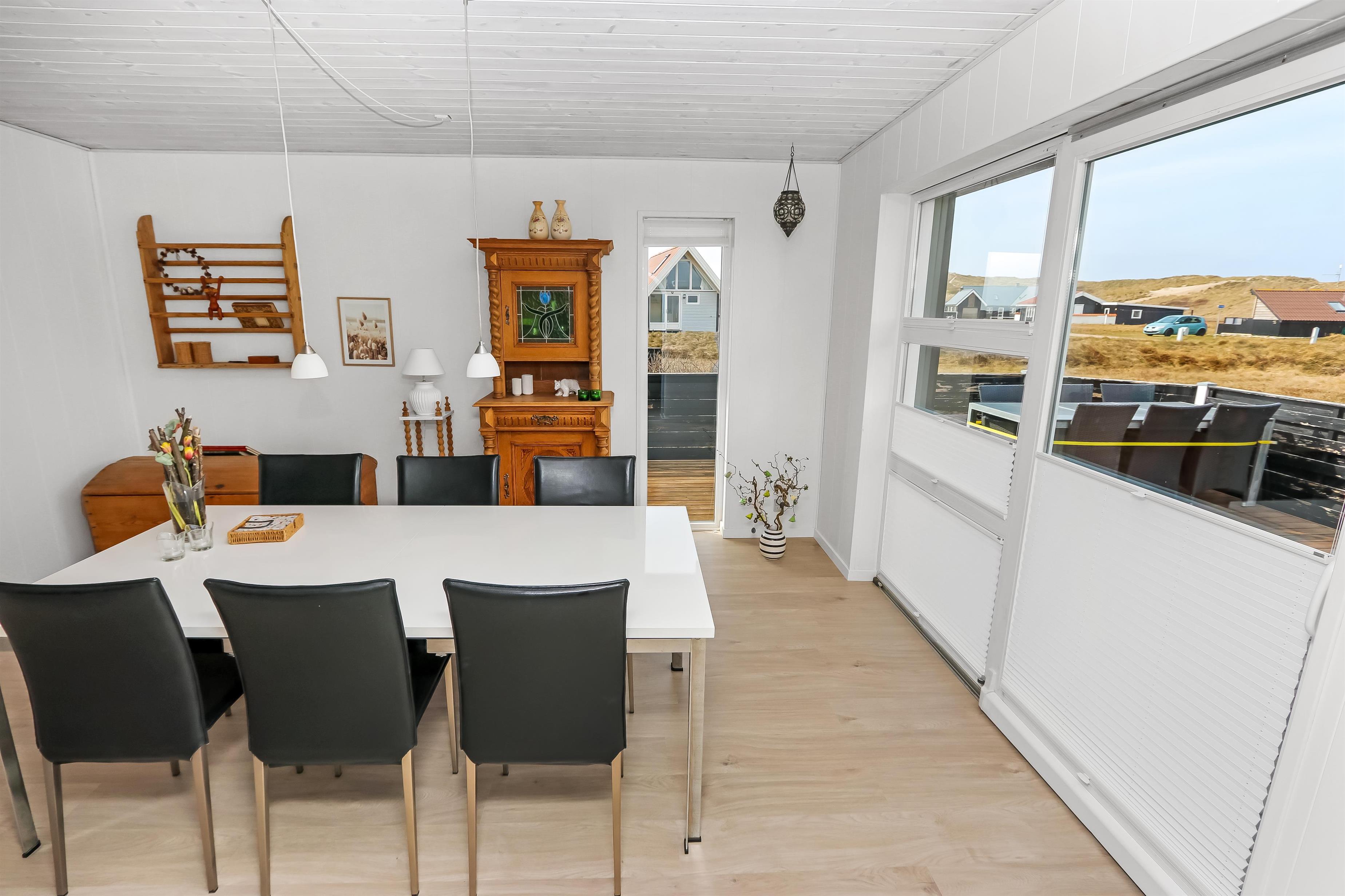 Udendørs er der en stor terrasse med havemøbler og liggestole, hvor man kan nyde solen og naturen. Huset ligger tæt på Vesterhavet, og stranden byder på mange aktiviteter såsom badning, fiskeri, sandslottebygning og leg. Området omkring huset er desuden ideelt til vandre- og cykelture, så både aktive og afslappede feriegæster kan få en oplevelsesrig ferie.