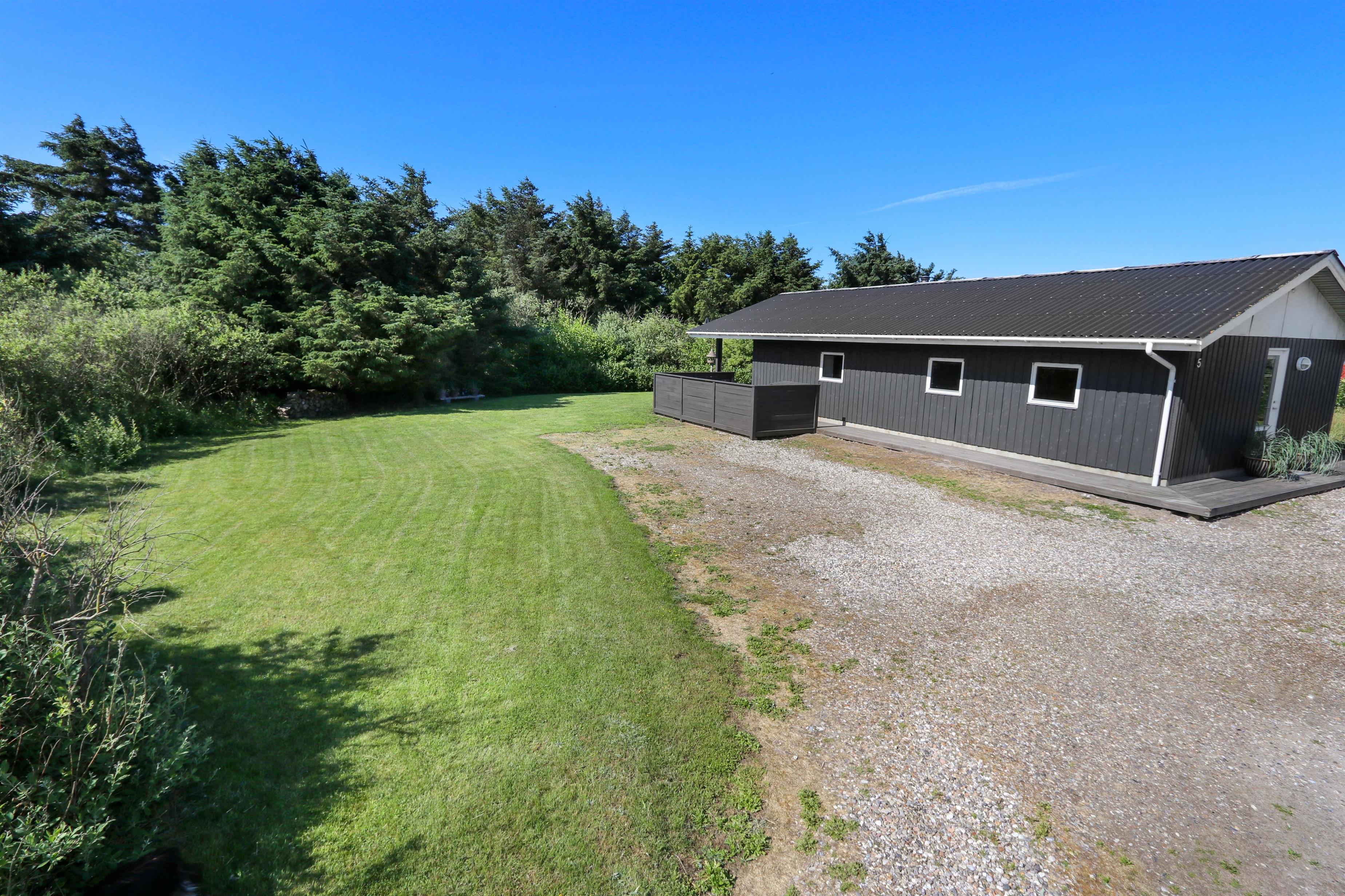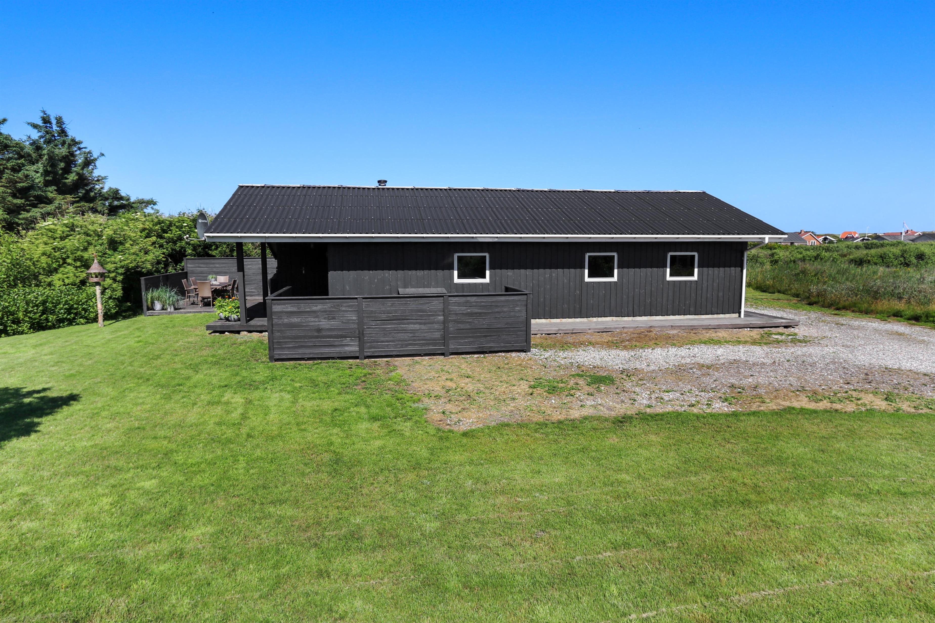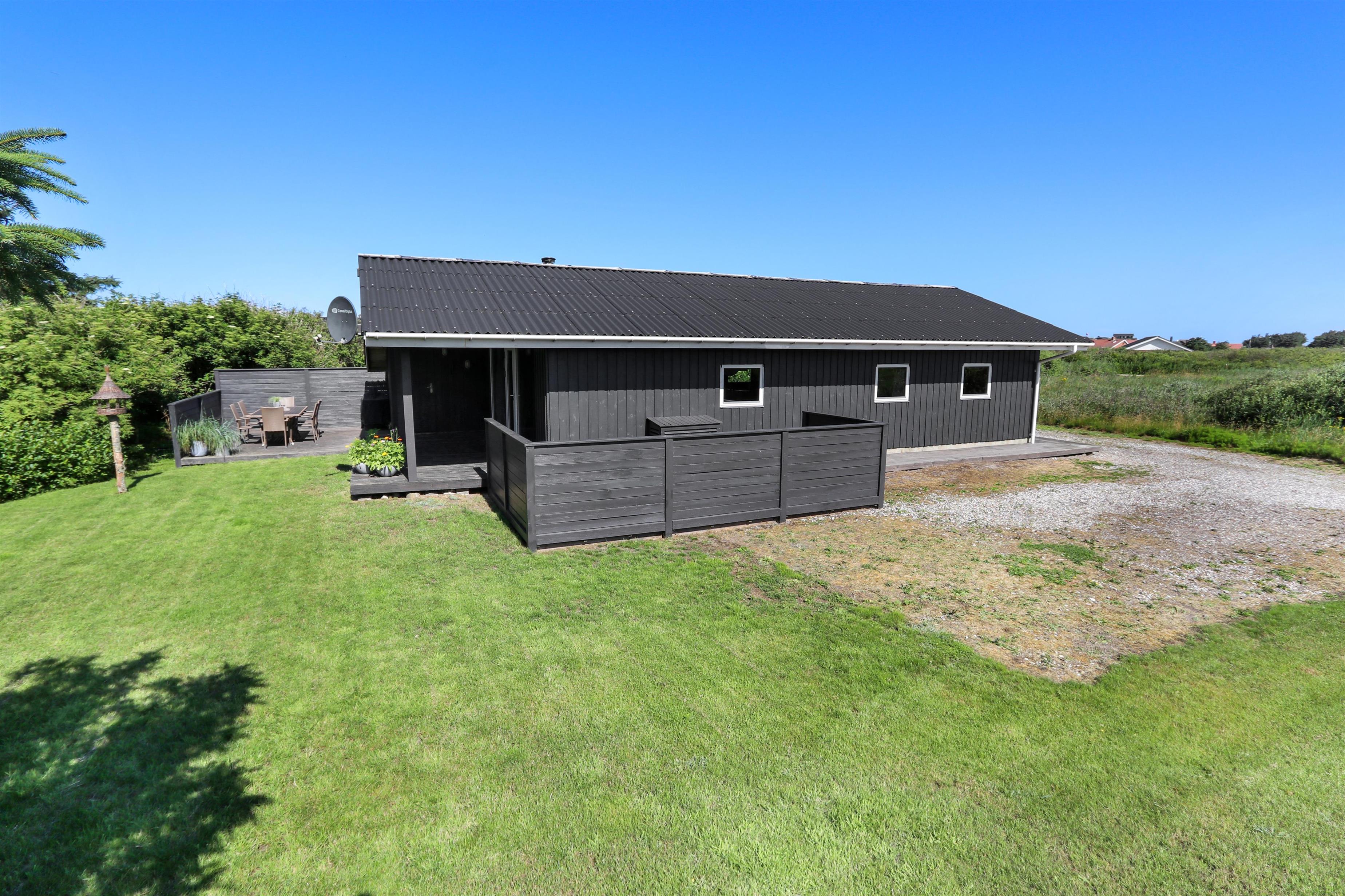 Fra stuen er der direkte adgang ud til den store delvis overdækkede terrasse. Den er både syd- og østvendt så den kan bruges hele dagen. Husets og terrassens belliggenhed tæt ved træerne gør at der er ekstra afskærmning for vinden. Hug jer her med havemøblerne og grillen, som hører til huset. Huset ligger kun 450 meter fra Vesterhavet og stranden. Her er der en stor og bred strand hvor der altid er masser af plads og huset er i særdeleshed et godt udgangspunkt for en god badedag. Er der ikke lige badevejr, så kan I lystfiske, finde rav, flyve med drager eller bygge sandslotte og dæmninger. Huset er ligeledes et godt udgangspunkt for cykelture, vandreture eller køreture til nærliggende attraktioner i Thyborøn som for eksempel Kystcenteret, Jyllandsakvariet eller prøv den meget børnevenlige badestrand. I kan også køre til Lemvig som er en geografisk perle beliggende i en tunneldal med op til 90 meter høje bakker. Her kan man gå en hyggetur på havnen hvor der ofte er meget liv.