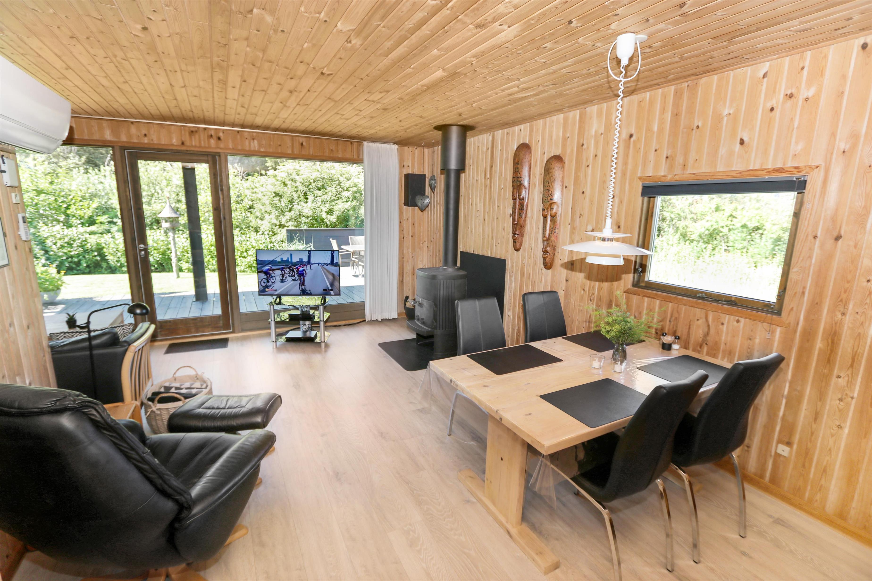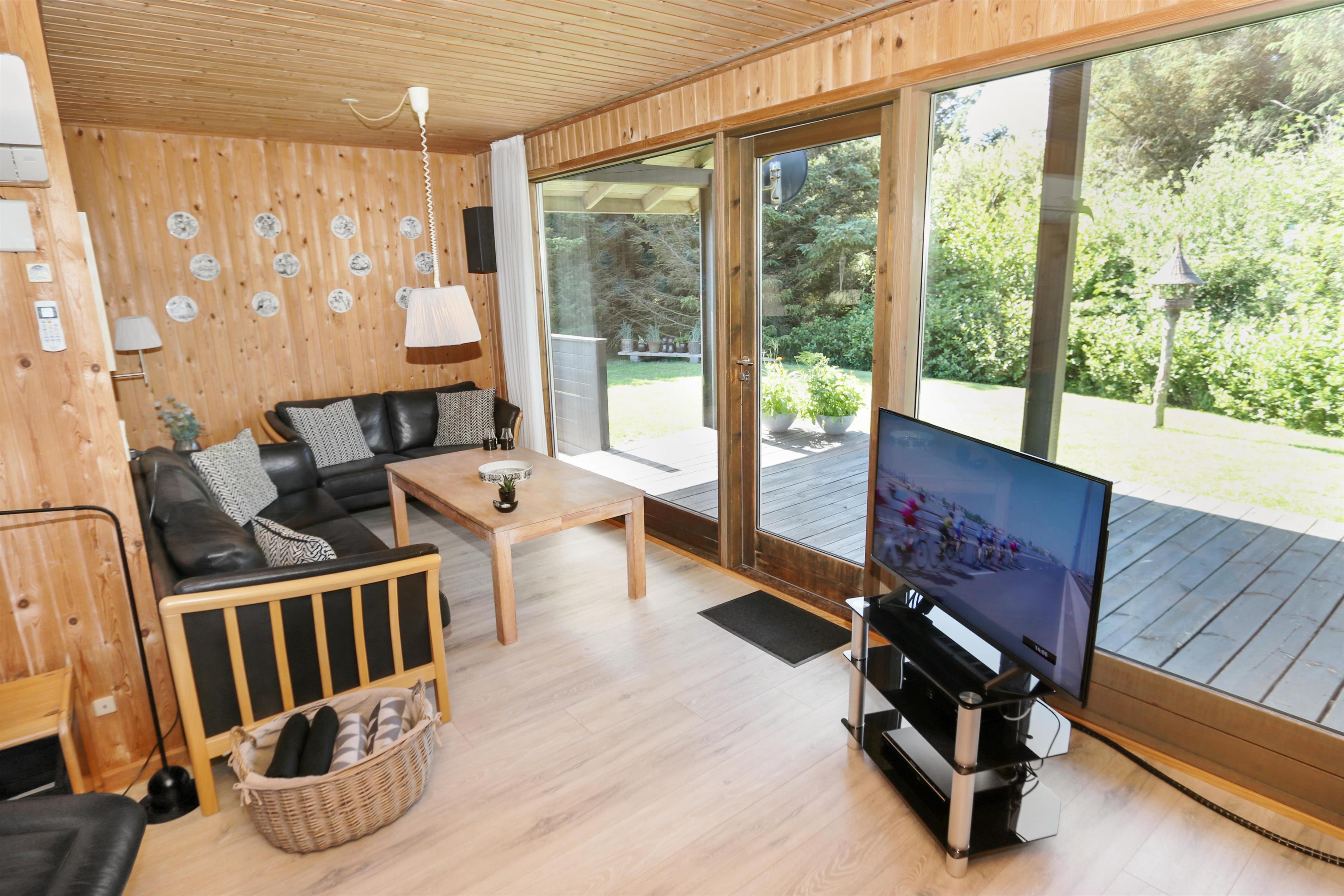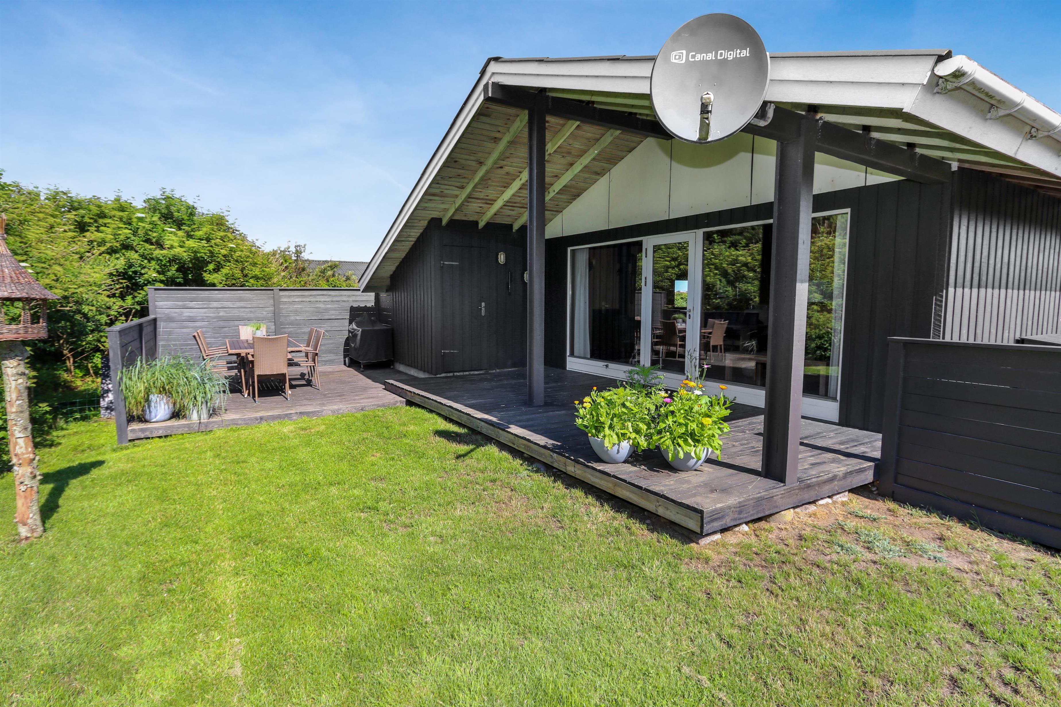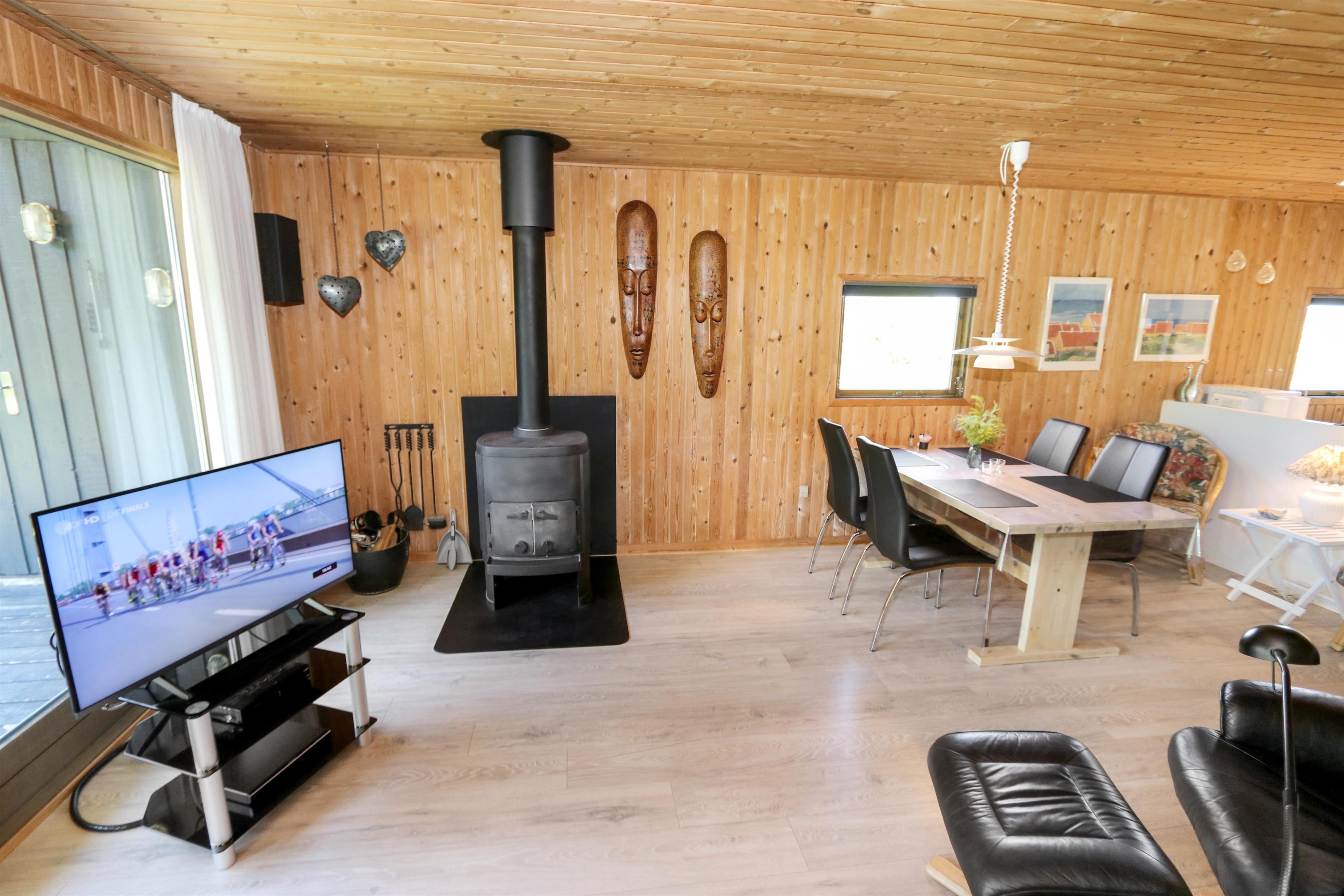 Fra stuen er der direkte adgang ud til den store delvis overdækkede terrasse. Den er både syd- og østvendt så den kan bruges hele dagen. Husets og terrassens belliggenhed tæt ved træerne gør at der er ekstra afskærmning for vinden. Hug jer her med havemøblerne og grillen, som hører til huset. Huset ligger kun 450 meter fra Vesterhavet og stranden. Her er der en stor og bred strand hvor der altid er masser af plads og huset er i særdeleshed et godt udgangspunkt for en god badedag. Er der ikke lige badevejr, så kan I lystfiske, finde rav, flyve med drager eller bygge sandslotte og dæmninger. Huset er ligeledes et godt udgangspunkt for cykelture, vandreture eller køreture til nærliggende attraktioner i Thyborøn som for eksempel Kystcenteret, Jyllandsakvariet eller prøv den meget børnevenlige badestrand. I kan også køre til Lemvig som er en geografisk perle beliggende i en tunneldal med op til 90 meter høje bakker. Her kan man gå en hyggetur på havnen hvor der ofte er meget liv.
