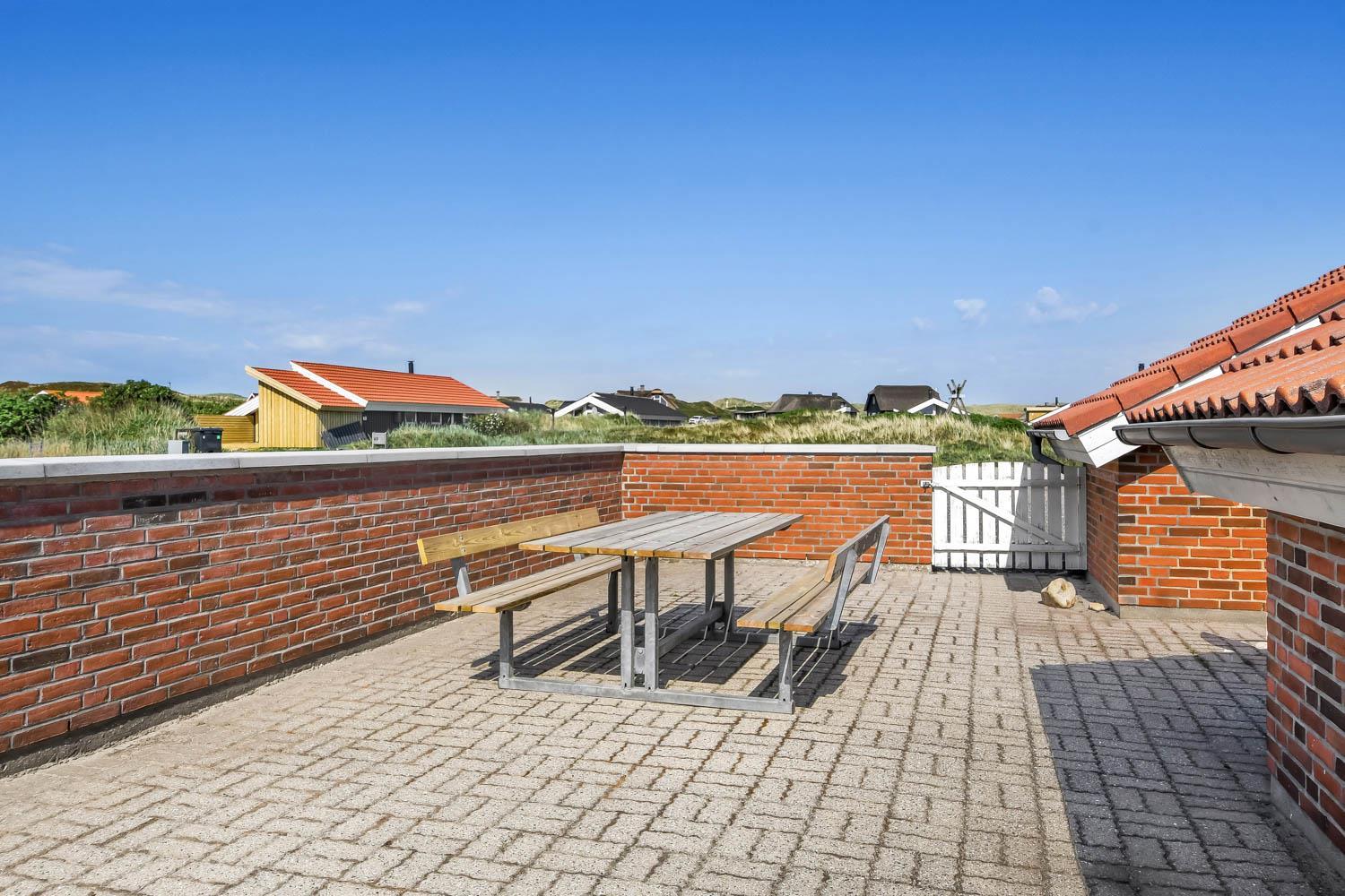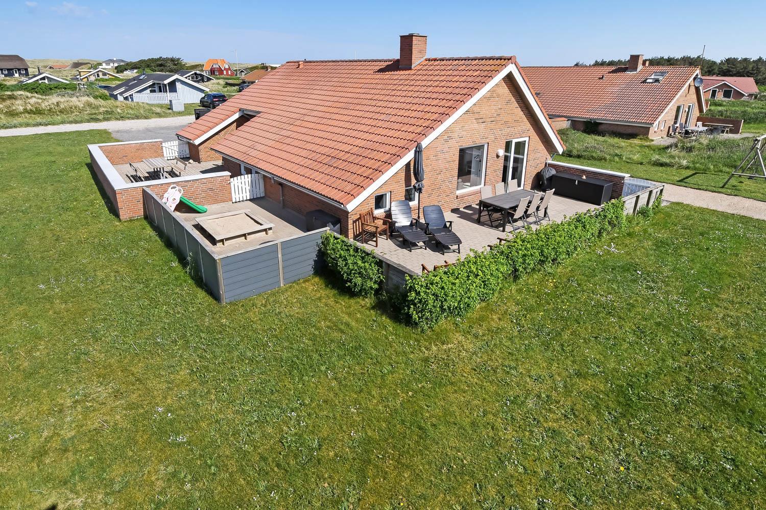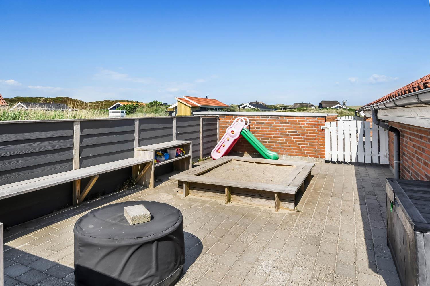 Huset er beliggende på en naturgrund, og der er udgang til en lukket gårdhave med havemøbler, grill og solvogne. Til børnene er der gynger og sandkasse. Der er blot 200 m til Vesterhavet og 400 m til restaurant og købmand. Ønsker man at opleve mere end selve området, kan man indenfor kort køreafstand besøge Lemvig, som er en meget flot og hyggelig indkøbsby med en skøn Havnepromenade. Her finder du bl.a. bowlingcenter og en udendørs skaterbane. Ikke langt fra huset er der et stoppested til vores lille lokale togbane, hvor der er mulighed for at købe en familiebillet så man kan køre en hel dag, toget kører både til Lemvig og til Thyborøn, som er en rigtig levende havneby, hvor man stadig kan opleve de lokale fiskere og se deres både m.v.