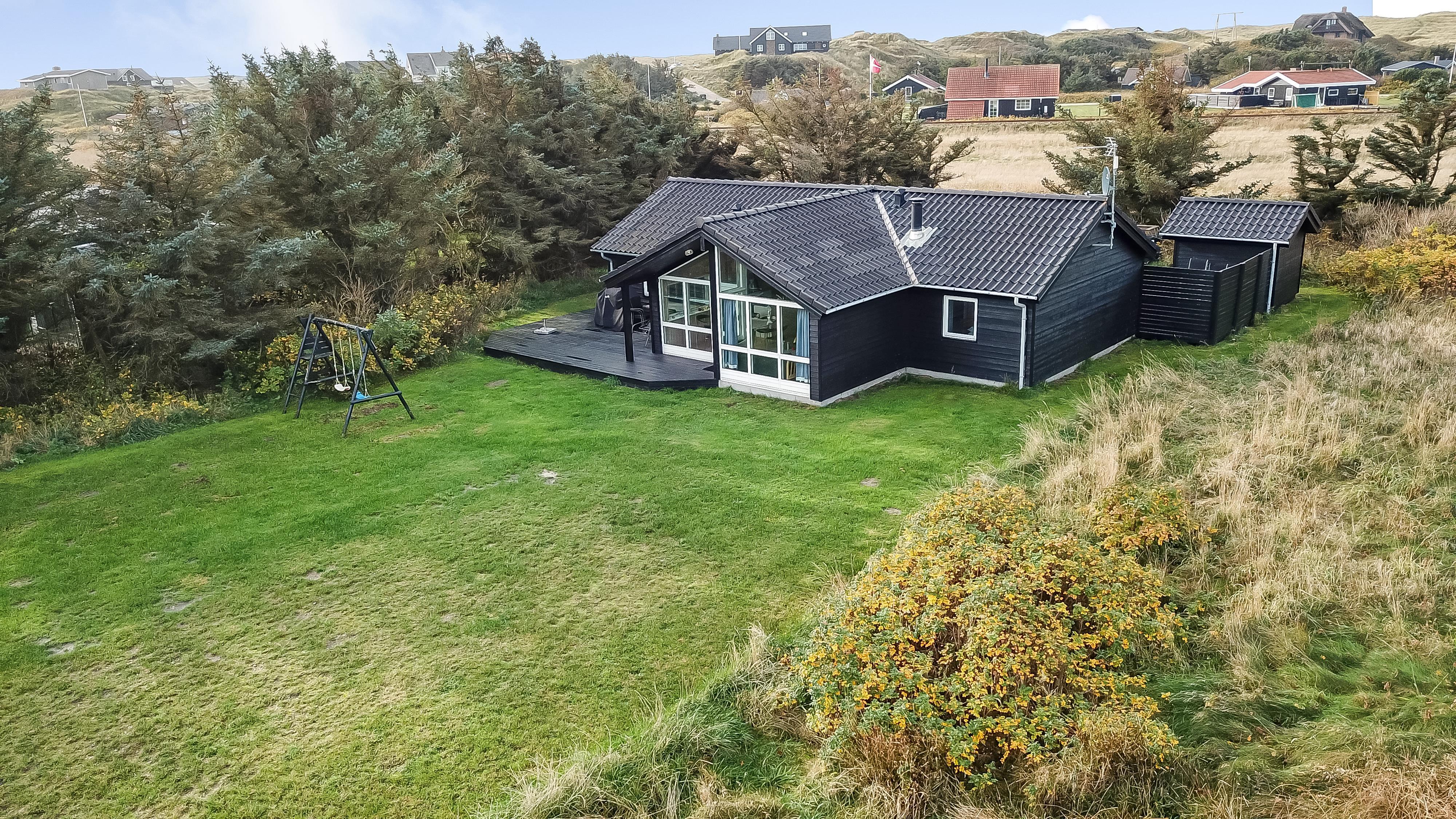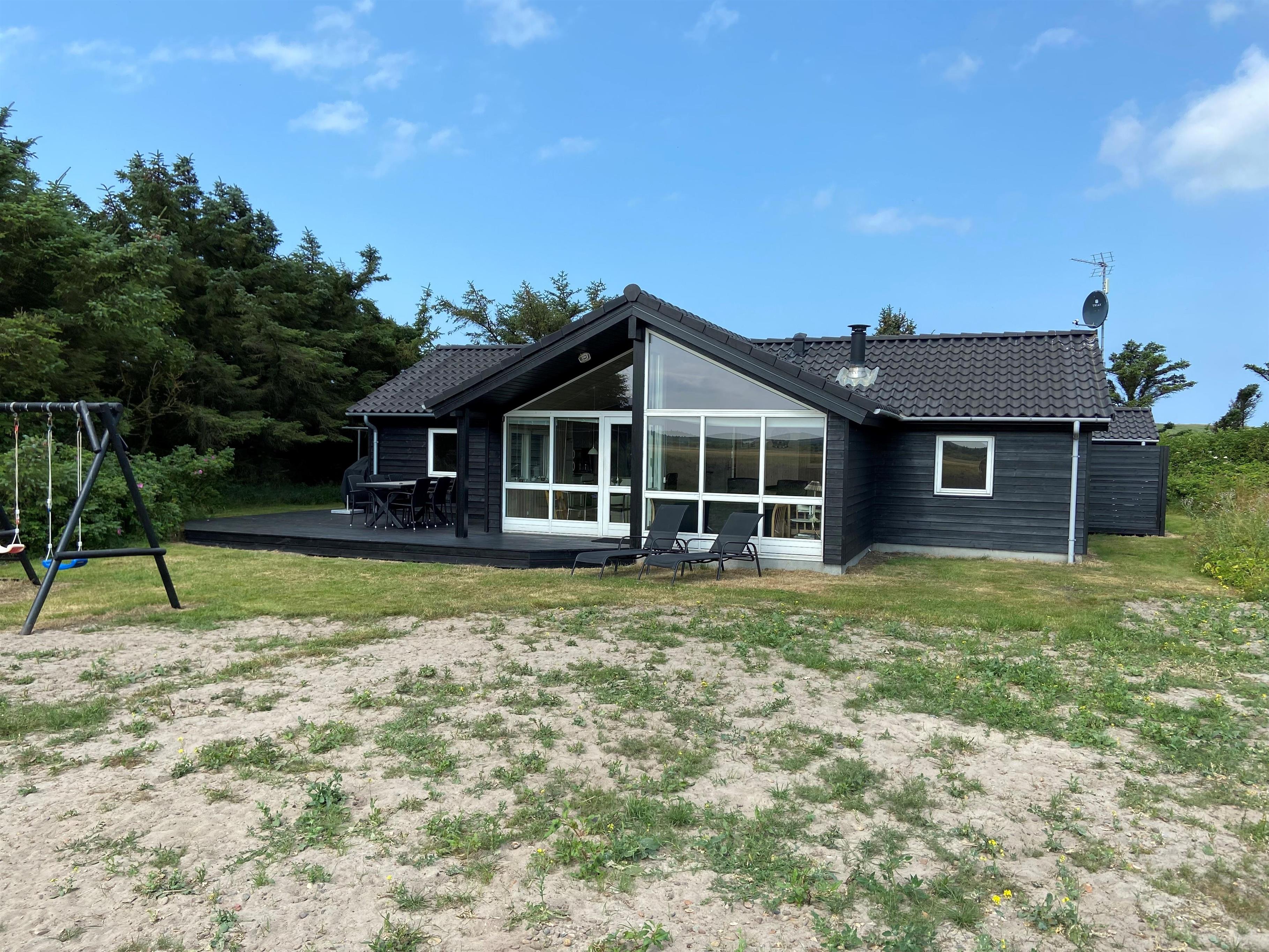 Huset er beliggende på en dejlig skov/naturgrund kun 350 m fra det brusende Vesterhav. Huset har 2 terrasser, den ene vender mod øst og her er der også på grunden gynger til de mindste børn. På vestsiden findes den anden terrasse som er lavet som en solgård, her er der rigtig gode muligheder for at finde læ. På begge terrasser er der havemøbler, 1 grill og 2 solvogne. En kort køretur i bil bringer jer til Lemvig eller Thyborøn, hvor der findes gode indkøbsmuligheder samt diverse aktiviteter. Et dejligt hus som velegnet til ferie uanset årstid.