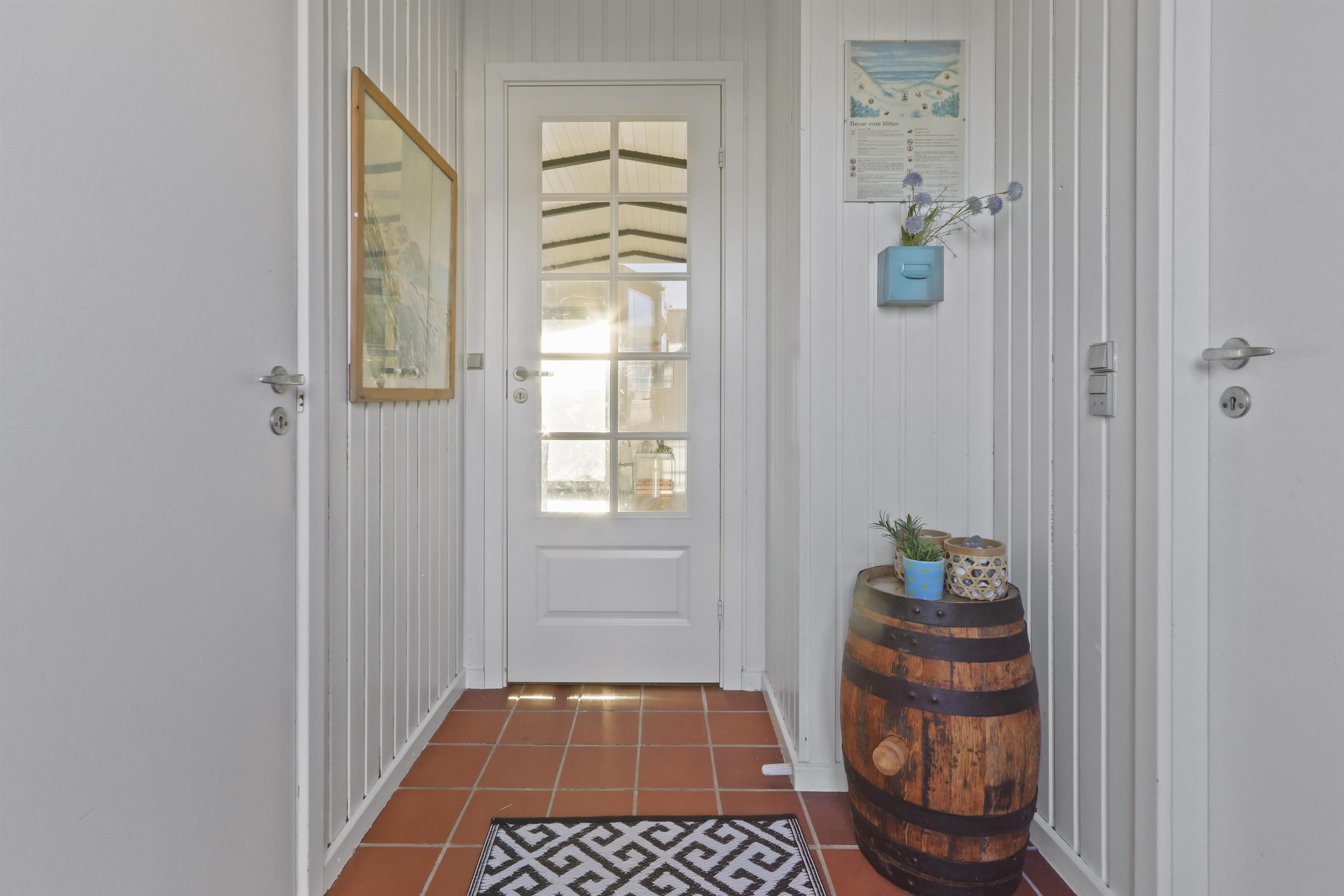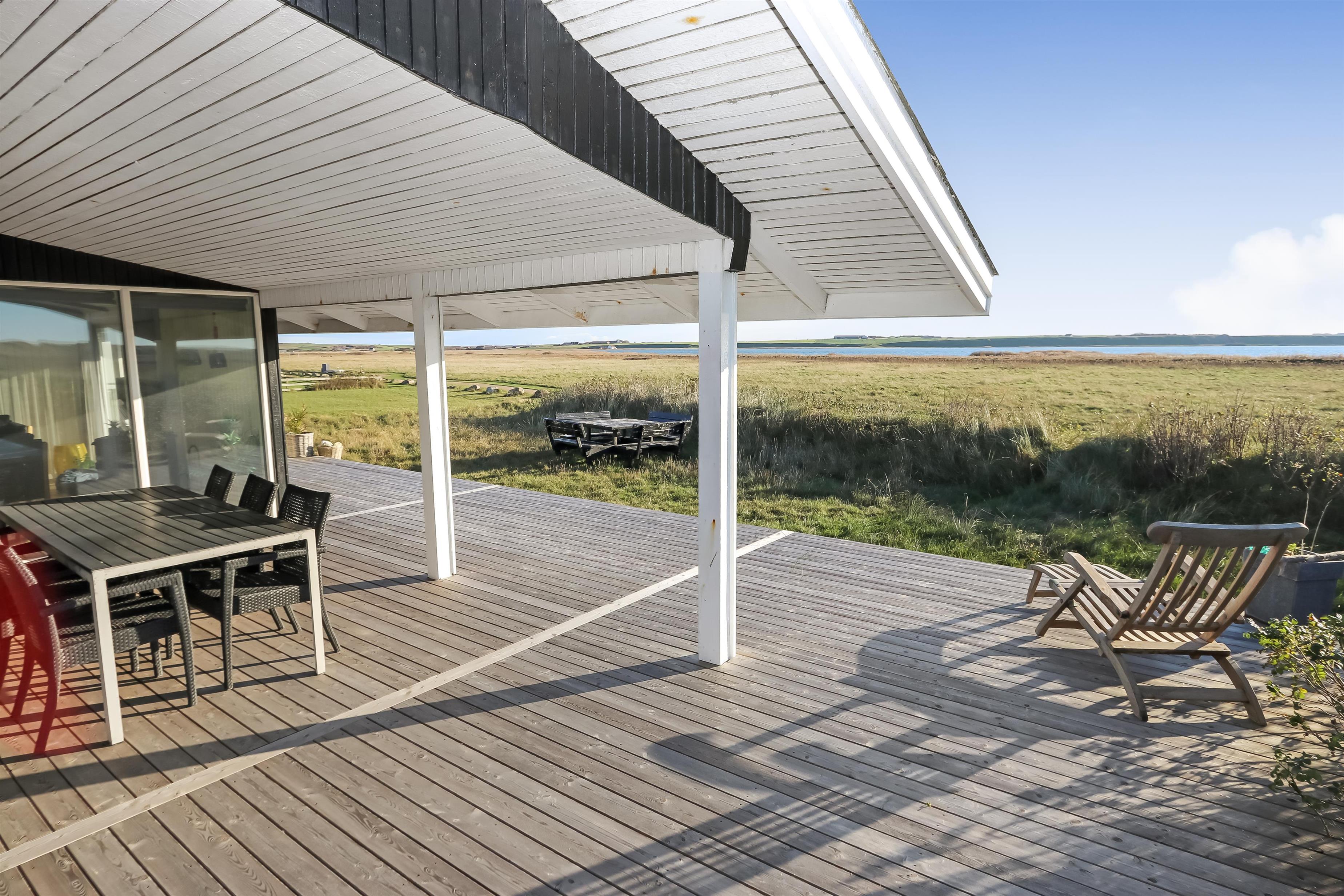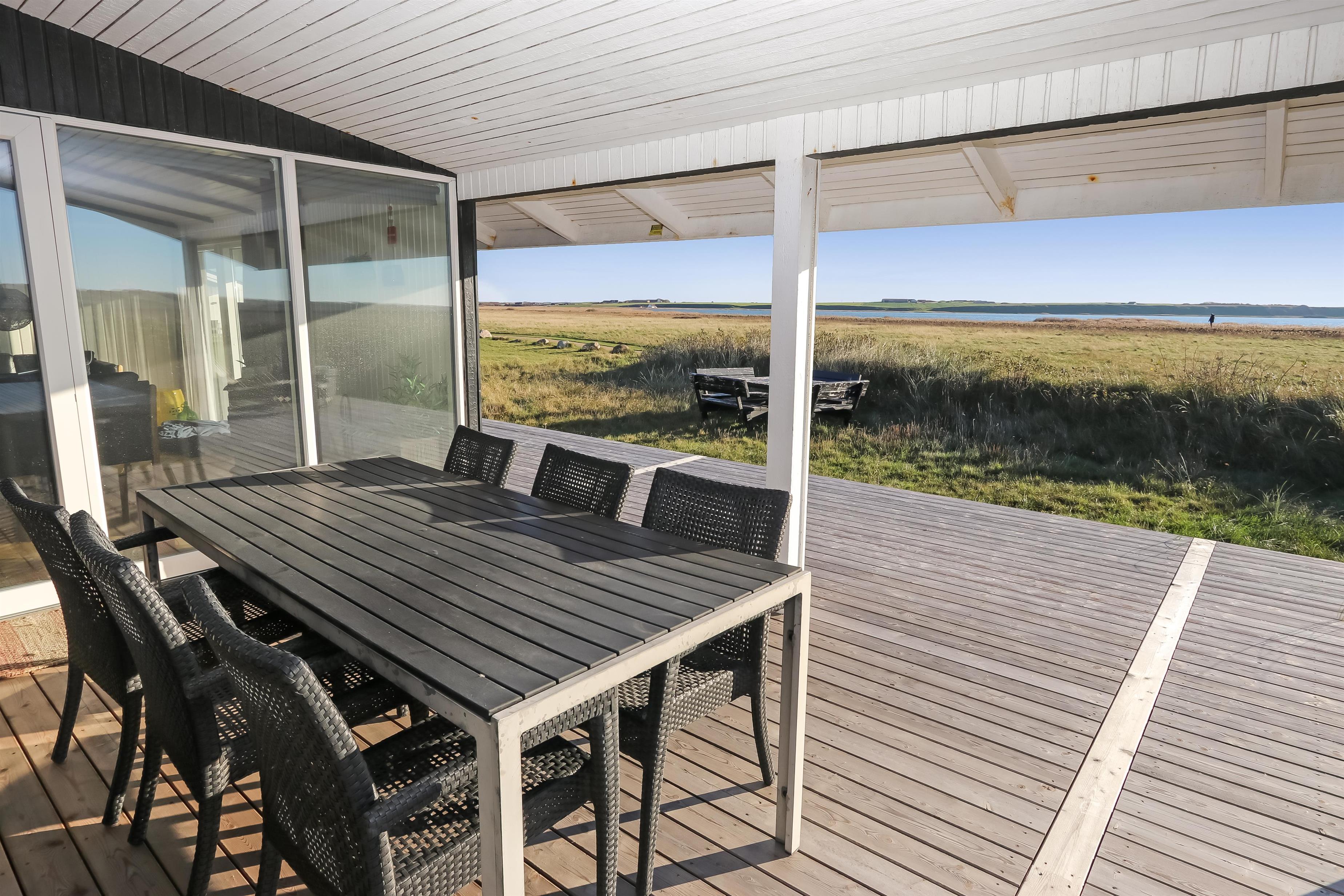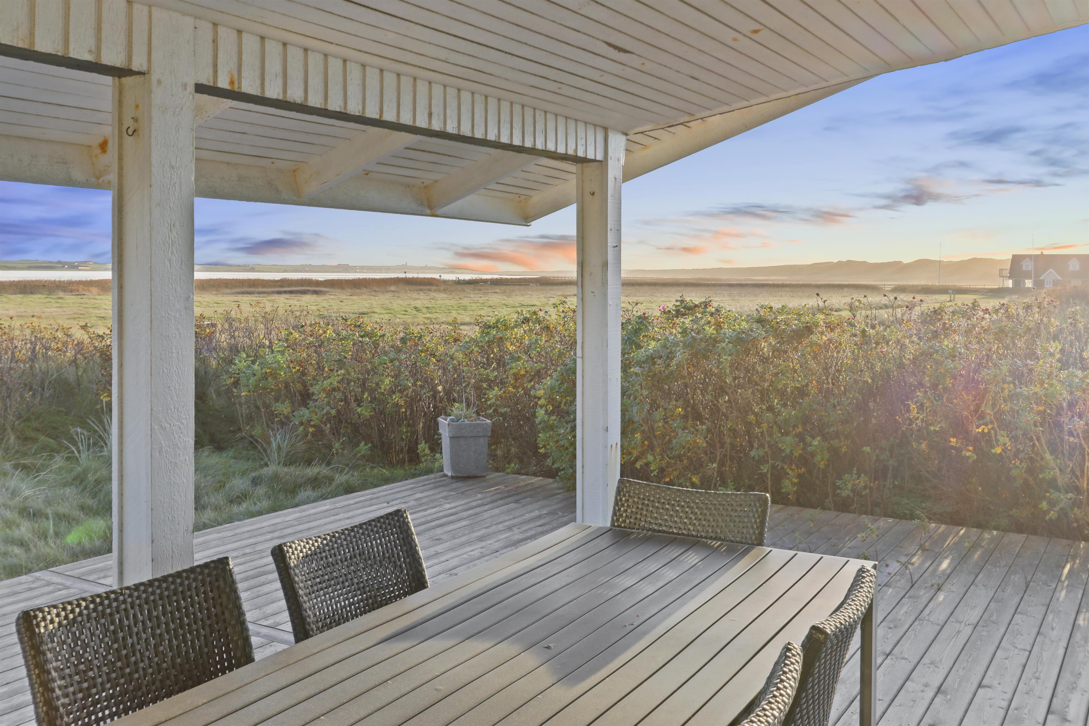 Huset har også en overdækket terrasse med havemøbler og en grill, der ligger op til hyggelige grillaftener, mens I nyder den fantastiske omkringliggende natur.