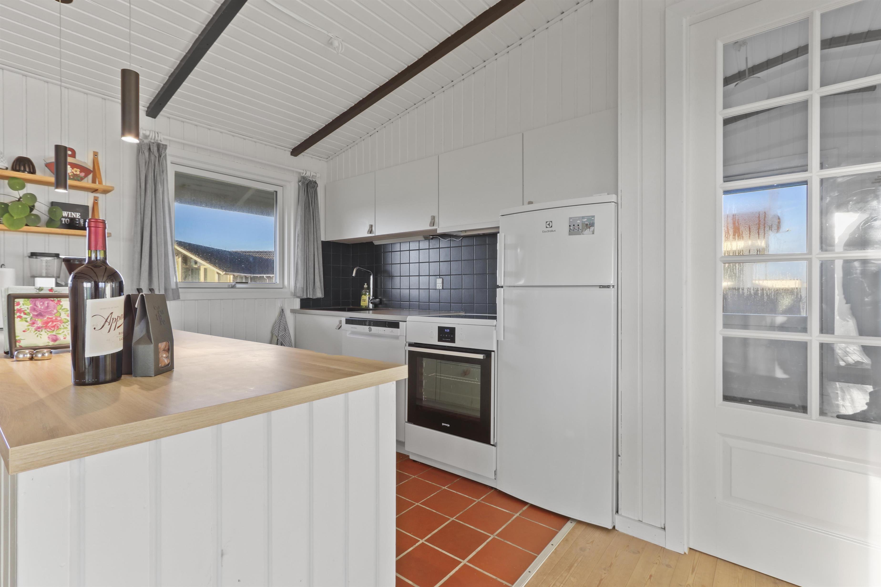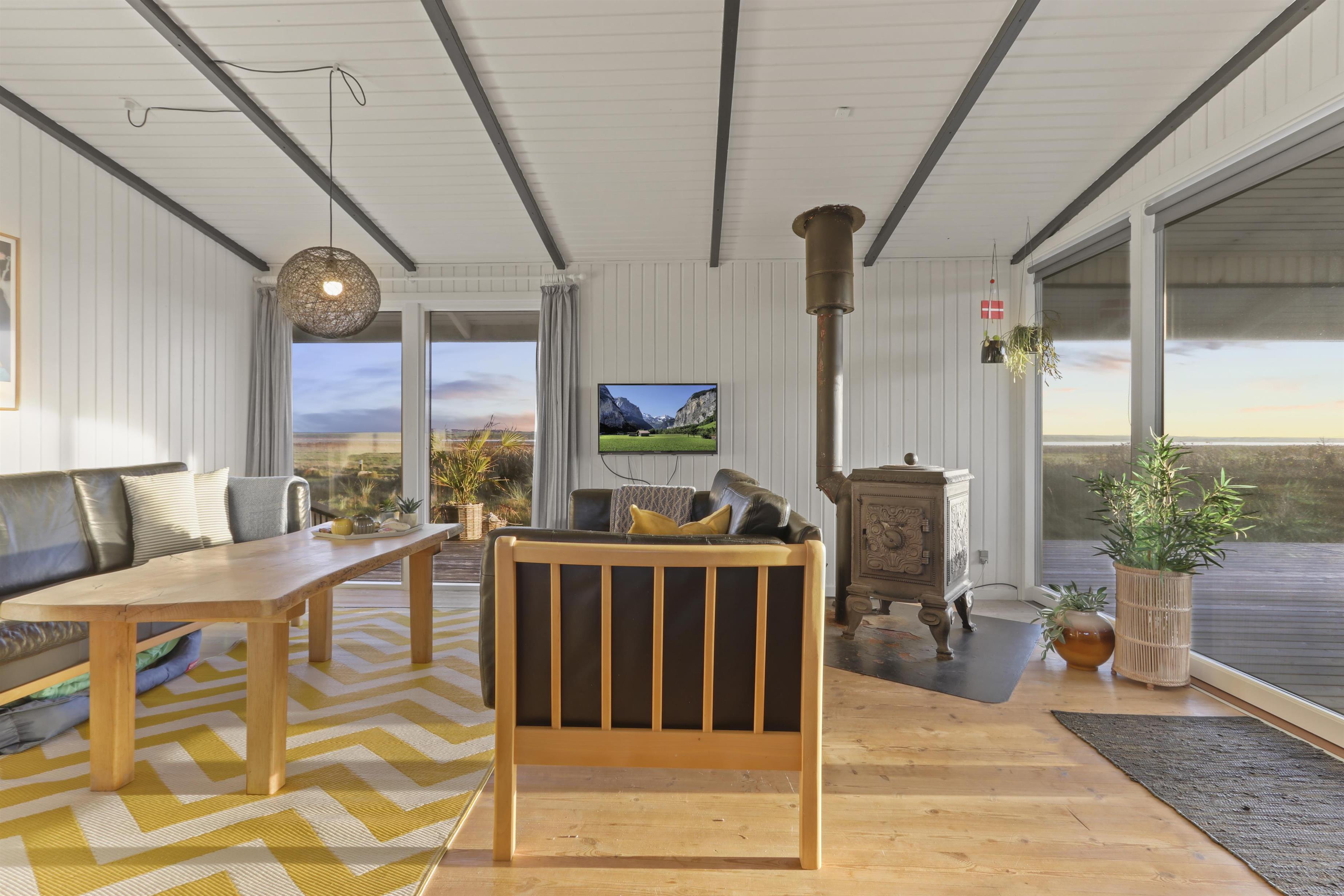 Huset byder på en bemærkelsesværdig udsigt til Ferring Sø, og med kun 100 meter til søen og 250 meter til stranden, er dette stedet for dem, der elsker natur og vand. Huset– indbyder til både afslapning og samvær. Det har tre soverum, hvoraf to er indrettet med dobbeltsenge og et med en sovesofa, hvilket giver mulighed for op til fire personer. Den åbne planløsning mellem stue og køkken skaber en lys og indbydende atmosfære. I stuen finder man en varm brændeovn, der ikke blot er en kilde til varme, men også skaber en hyggelig stemning på køligere aftener. Køkkenet er veludstyret og med en opvaskemaskine, så du kan nyde mere tid med dine kære og mindre tid på opvasken. Ikke-ryger hus. Husdyr er ikke tilladt.