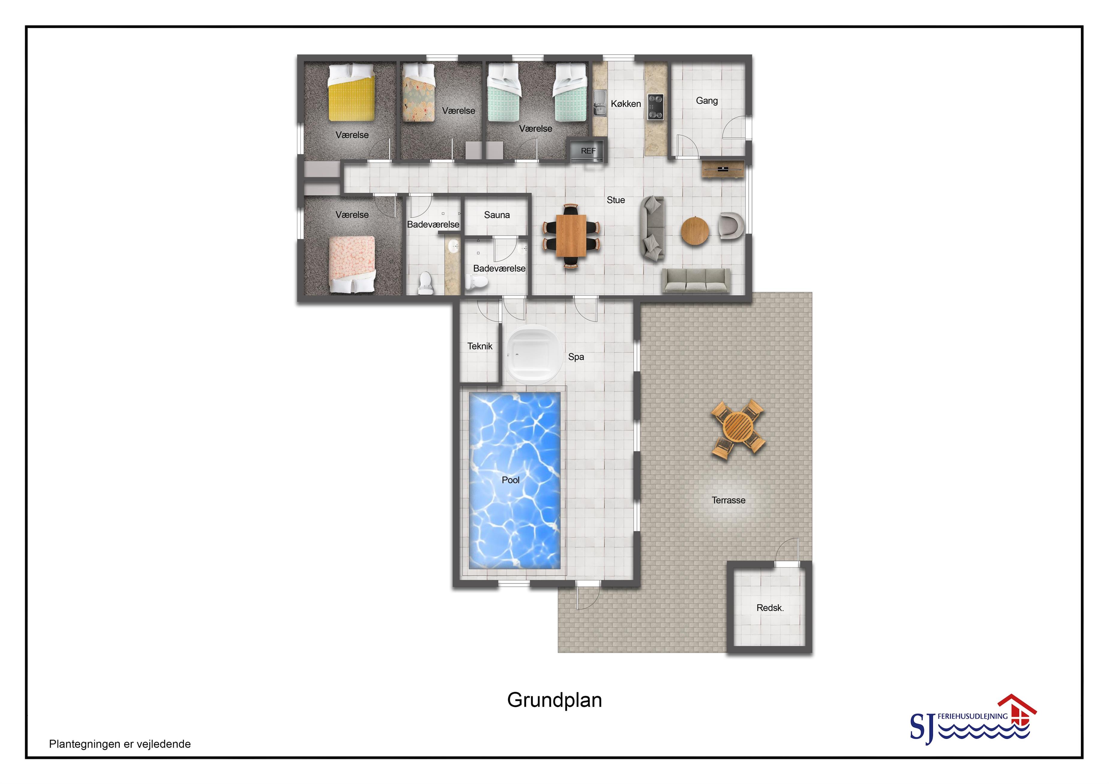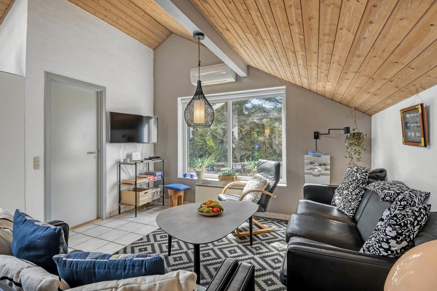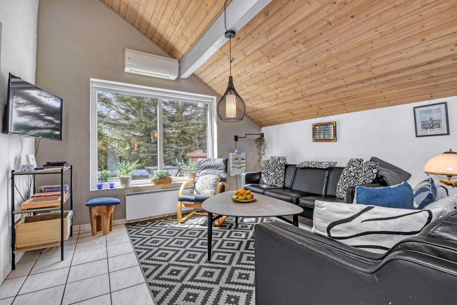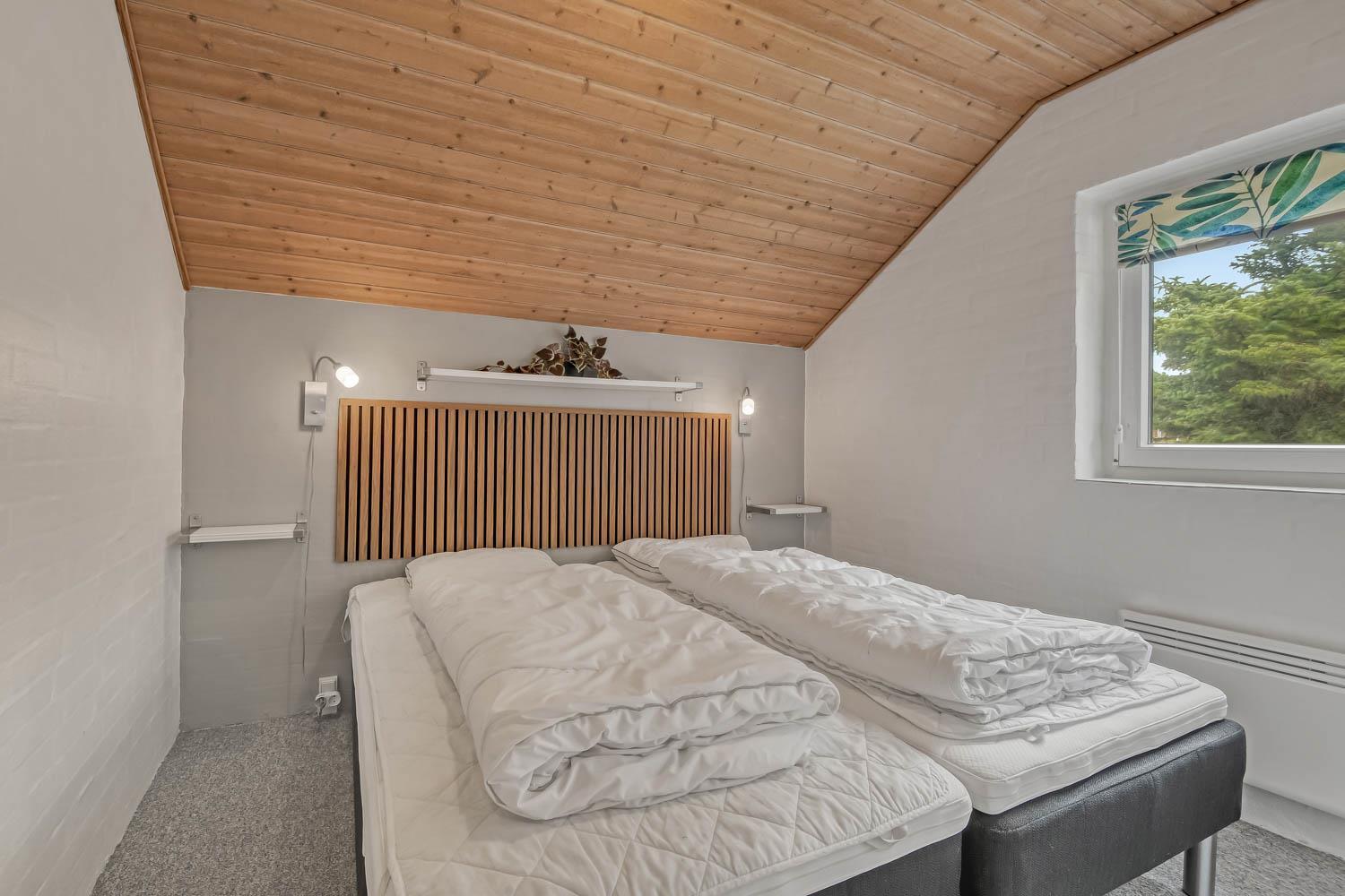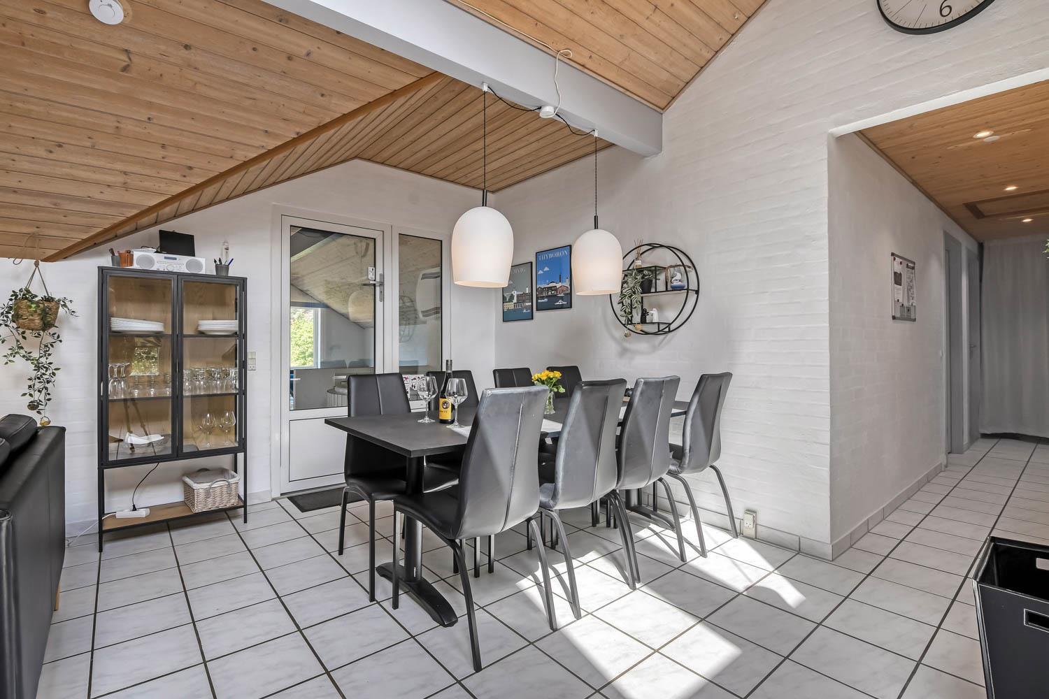 Huset er 153 m2 stort og har 4 dejlige soverum (1xdobbeltseng, 1xdobbeltseng, 2xenkeltsenge og 2xenkeltsenge). I hjertet af huset findes et veludstyret køkken/alrum hvor loftet går til kip og hvor de store vinduer bidrager til den hyggelige feriestemning. Her er alt i hårde hvidevarer; komfur med glaskeramiske kogeplader, emhætte, opvaskemaskine, mikroovn, køle-/fryseskab med fryseboks. Nyd maden ved spisebordet eller slap af i de behagelige sofamøbler. TV i stuen er med danske og tyske kanaler, DVD og CD afspiller. Skulle det blive for koldt, eller skal stemningen blusses op, sætter man blot gang i husets brændeovn, hvor flammerne og den intensive varme kan nydes og sammen med husets varmepumpe er de begge medvirkende til en god varme samt et lavere forbrug. Der er hvide klinkegulve i stue og køkkenområde med gulvvarme og der er gulvtæpper i soveværelserne. Husets wellness pool-afdeling rummer udover poolen et ekstra TV, spabad og en sauna og huset har hele 2 badeværelser, med toilet, bruser, håndvask samt gulvvarme. Vaskemaskine og tørretumbler er en selvfølge og er placeret i husets entré. Der er udgang til husets store indhegnede terrasse. På terrassen er der havemøbler, parasol. Huset er et ”ikke ryger hus”. Max. 2 husdyr er tilladt. Der er installeret varmepumpe i huset, hvilket betyder at du som gæst kan spare en del på din elvarmeregning - varmepumpen leverer op til 4 gange så meget effekt, som den bruger. I udhuset er der en ekstra 100 l fryser. Huset lejes ikke ud til ungdomsgrupper. Har man el-bil eller en Plug-In hybrid, så er der mulighed for opladning gennem opsat ladeboks på gavlen i den nordlige ende af huset. Til de mindste gæster er der en højstol. Depositum vintersæson kr. 4.500 og sommersæson kr. 2.500. Obligatorisk slutrengøring.