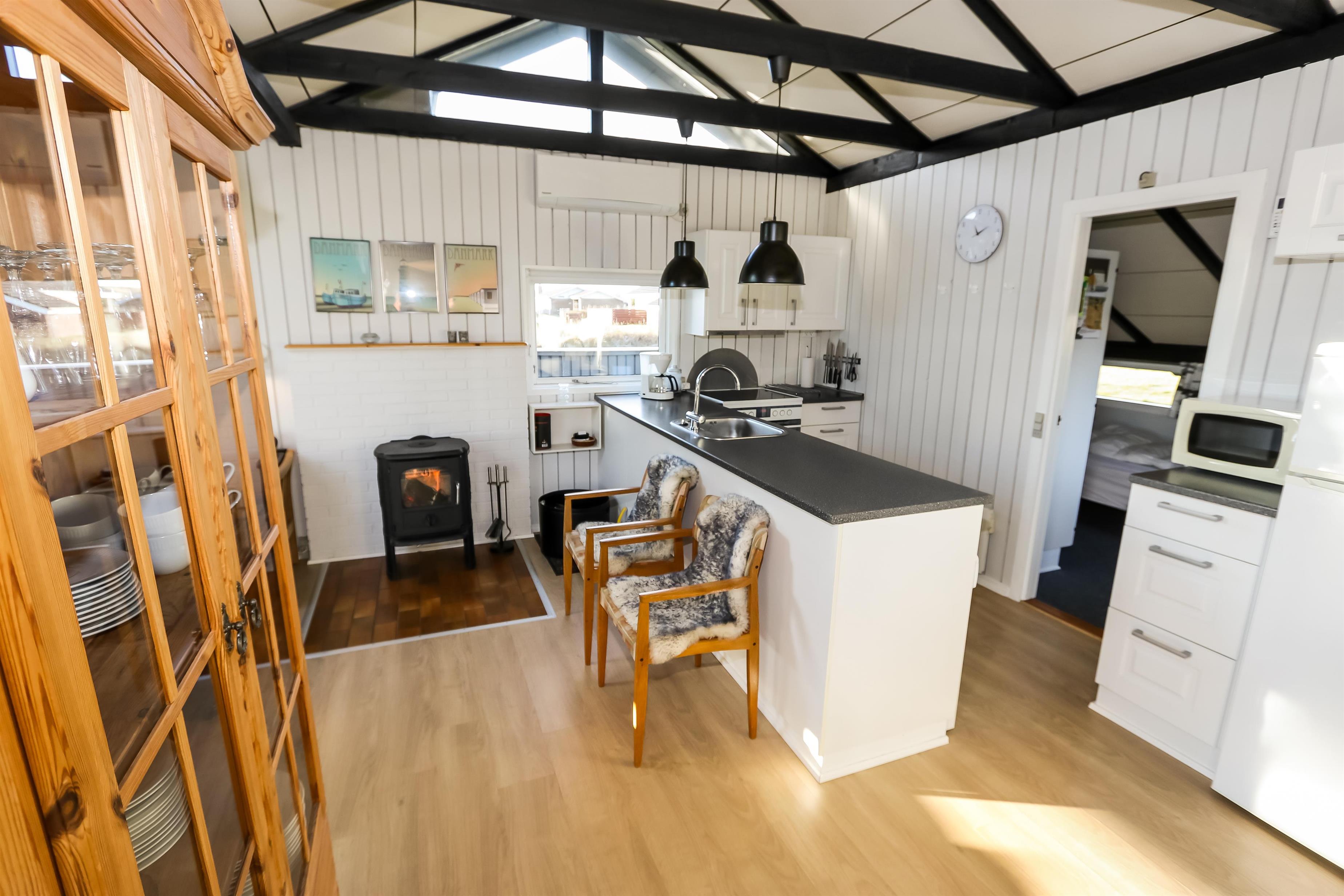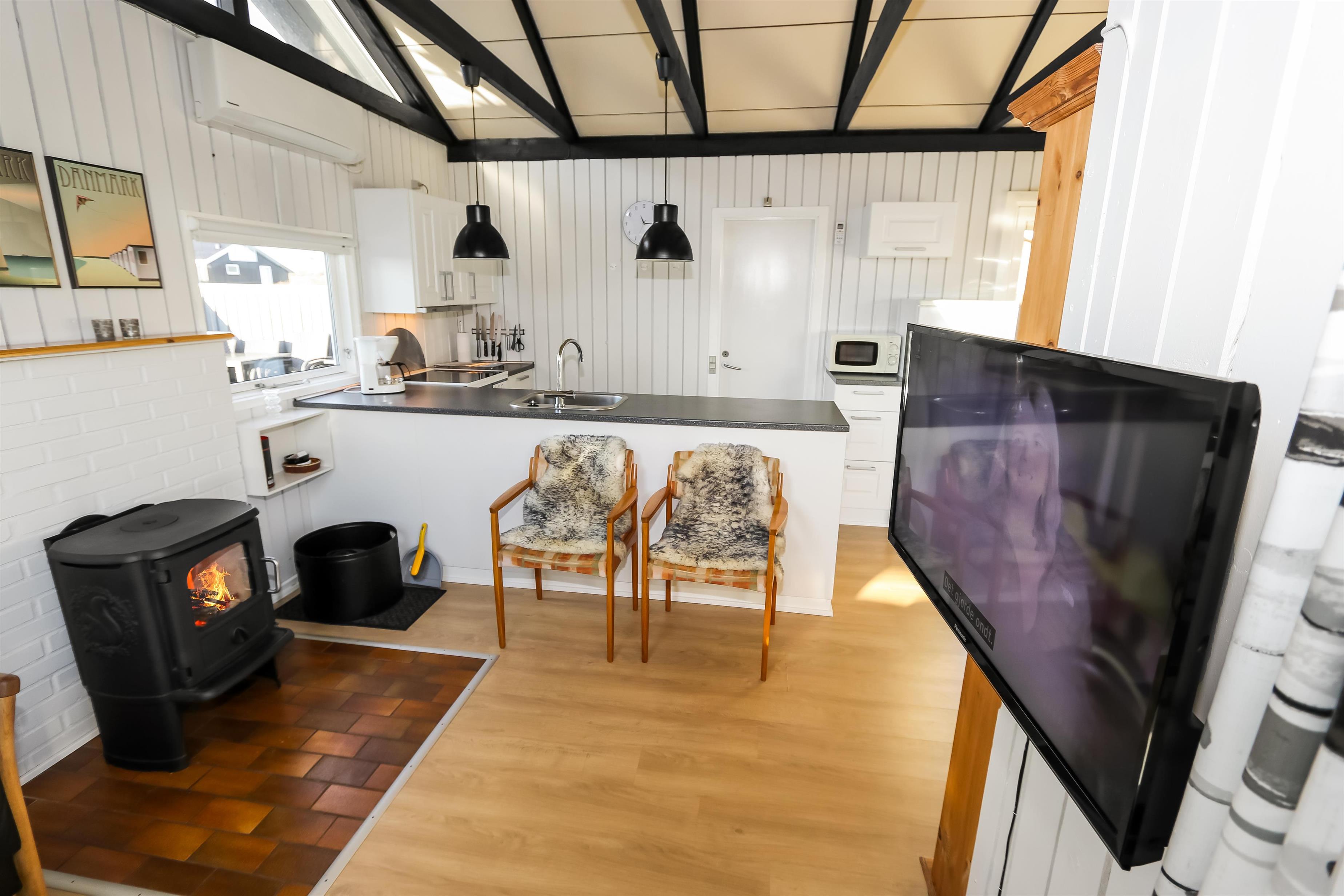Et godt udnyttet træhus på 64 m2 med gratis Internet. Bilen parkeres lige ved huset og indgangen til huset nås via den lukket terrasse. 3 soveværelser (1DS, 2ES, 1ES) med gulvtæpper. Hyggelig opholdsstue med nye lædermøbler, fladskærms tv med tyske og danske kanaler. Den nye, dejlige brændeovn understreger hyggen i rummet og sammen med den nye varmepumpe minimeres forbruget i huset til et minimum. Godt køkkenhjørne med komfur med keramiske kogeplader, emhætte, køleskab med lille fryseboks, opvaskemaskine samt vaskemaskine. Der er praktiske trægulve i køkken og opholdsrum. Huset badeværelse er også nyrenoveret i flotte afstemte farver og har klinkegulv med gulvvarme, toilet, håndvask og bruseniche. 2 husdyr tilladt. Ikke ryger hus.