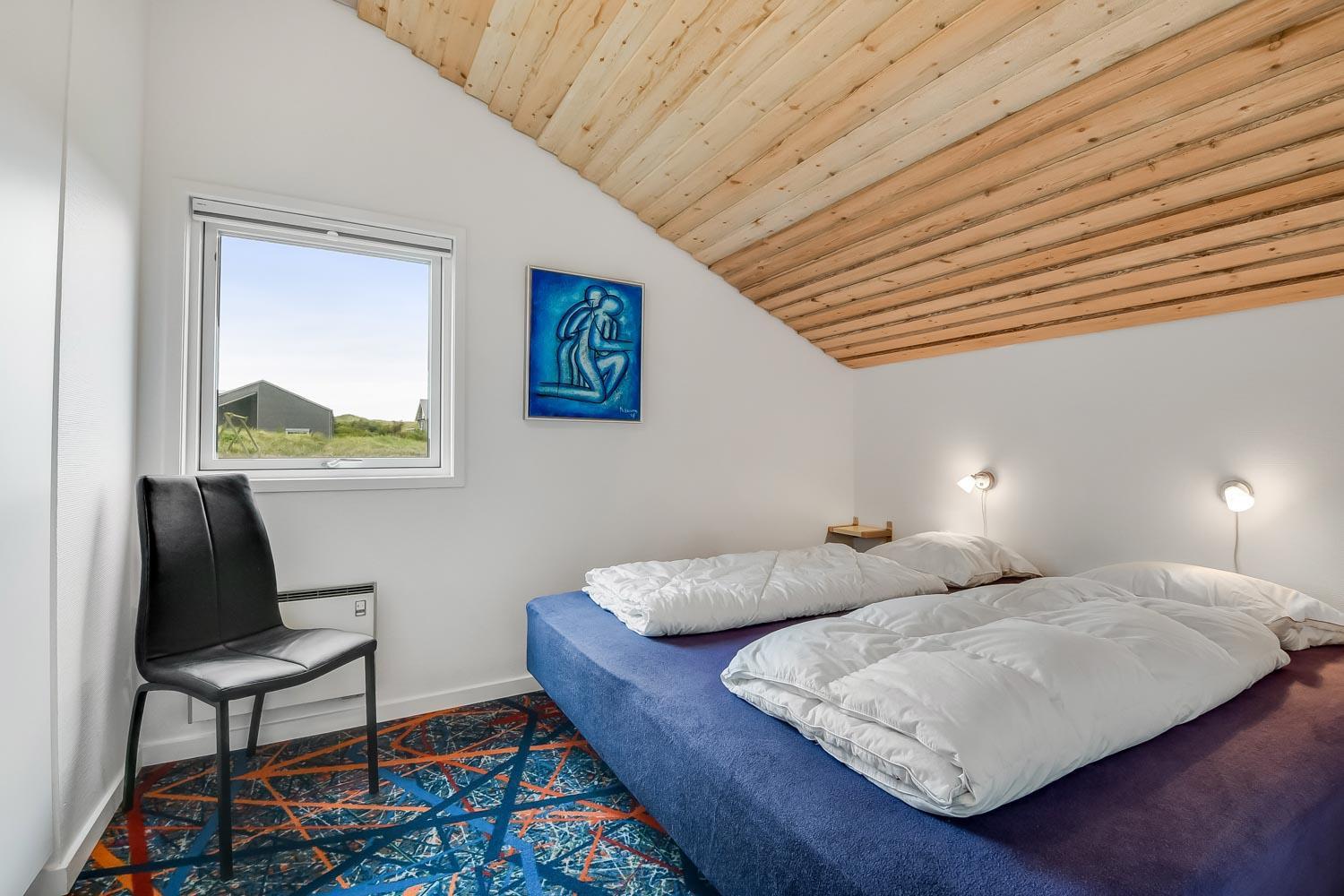 Dette dejlige træferiehus ligger på en naturgrund kun ca. 50 m fra en lille skov og kun ca. 200 m fra Vesterhavet. Huset er smagfuldt og personlig indrettet. Husdyr er ikke tilladt. Gratis internetadgang.