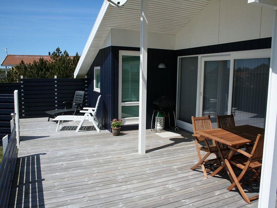 Fra stue er der udgang til stor og delvis overdækket terrasse, der helt optimalt vender imod syd, og fortsætter rundt om husets østside, hvor morgensolen kan nydes. Hele terrassen er omkranset af et stakit. Havemøbler, parasol og grill. Området omkring Vejlby og Ferring sø ligger ikke langt fra det brusende Vesterhav og stranden, så naturen indbyder meget til udendørsaktiviteter året rundt - uanset om det er gåture i landskabet omkring søen eller en strandtur. Der er ikke langt til dagligvarebutikker i både Vejlby og Harboøre - Og er du i bil kan du køre til Lemvig - 'Smilets by' eller den meget populære turistby Thyborøn, hvor du begge steder finder flere dagligvarebutikker samt velfungerende detailhandel.