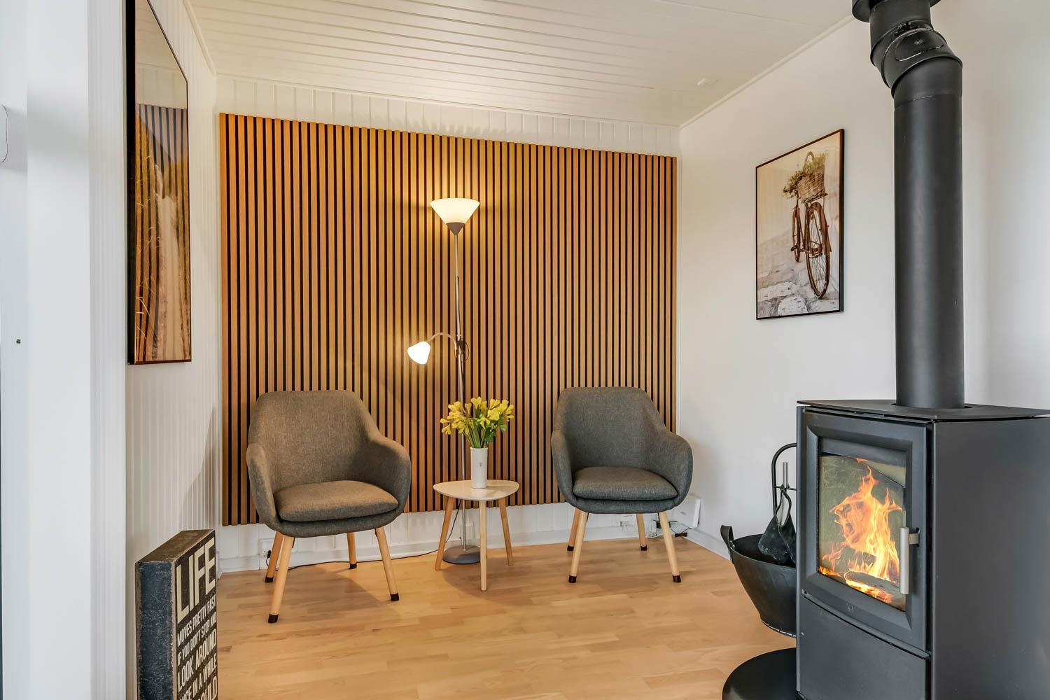 Huset er klassisk indrettet med den ene del af huset som et samlet rum af køkken og stue og resten af huset har badeværelse og soveværelser. Huset råder også over et redskabsskur. Køkkenet har glaskeramisk komfur, mikrobølgeovn og køle-fryseskab. Hertil er der også en opvaskemaskine, som giver ekstra tid med sine gæster eller familien. Stuen har både sofagruppe, sofabord og spisebord. Slap af foran den knitrende brændeovn som sammen med varmepumpen hjælper med at reducere udgiften til varmeregningen. Her er også en fladskærm med både tysk og dansk tv - blandt andet TV, samt CD-afspiller. Badeværelset byder på håndvask, bruser, toilet, gulvvarme og vaskemaskine. Der er 3 soveværelser hvoraf 2 er med dobbeltsenge og en med 2 enkeltsenge. Har man småbørn med er der både barnestol og barneseng i huset.