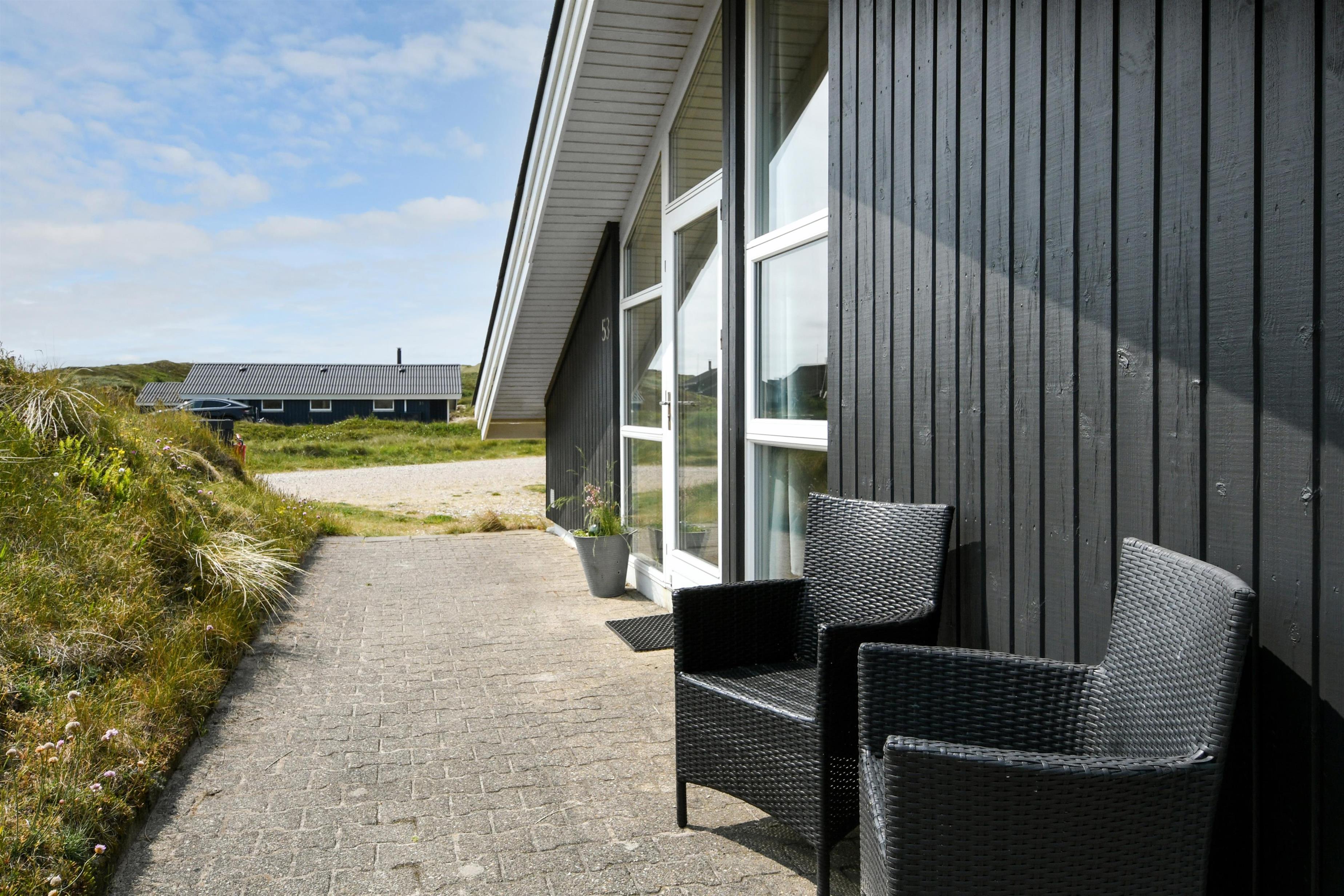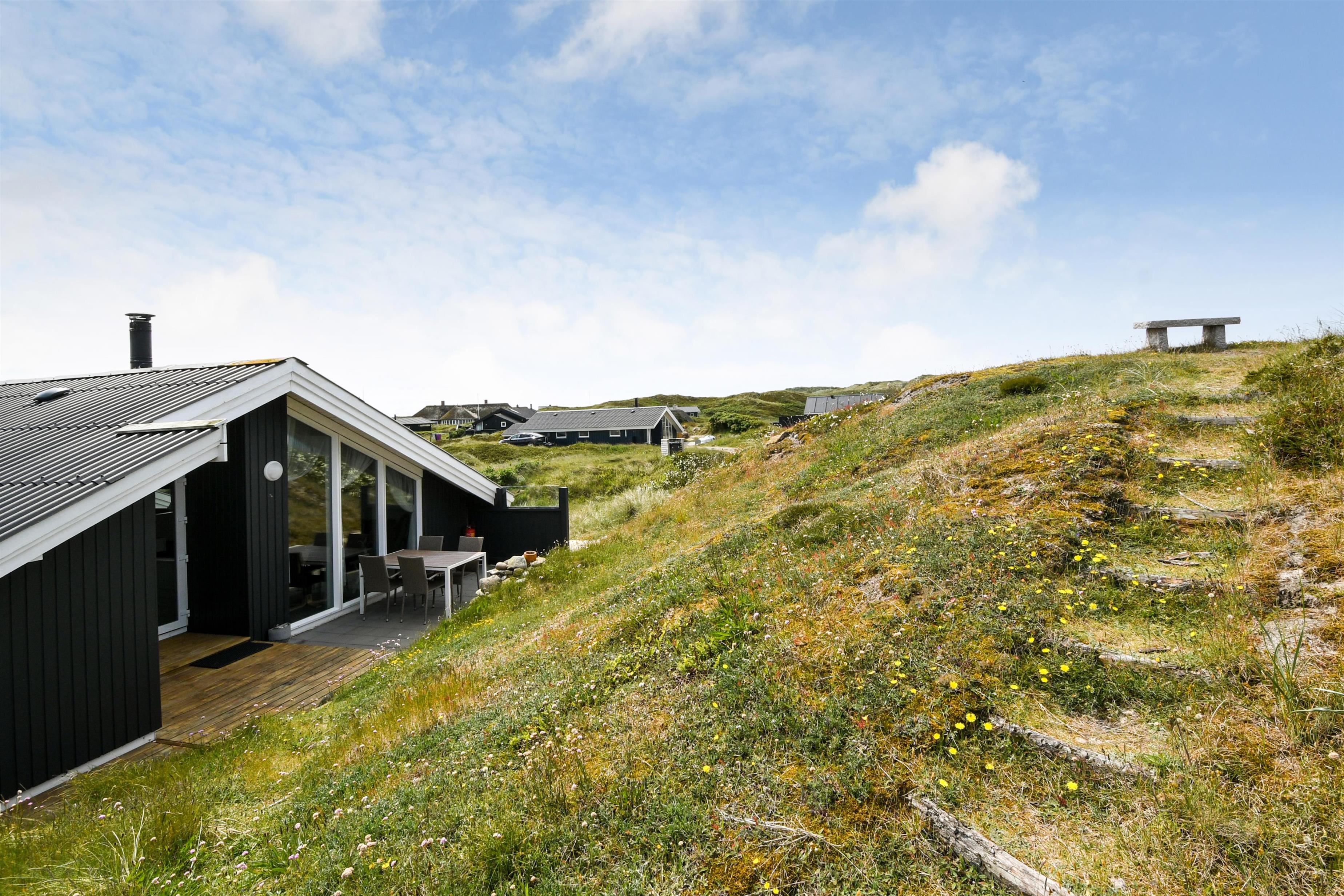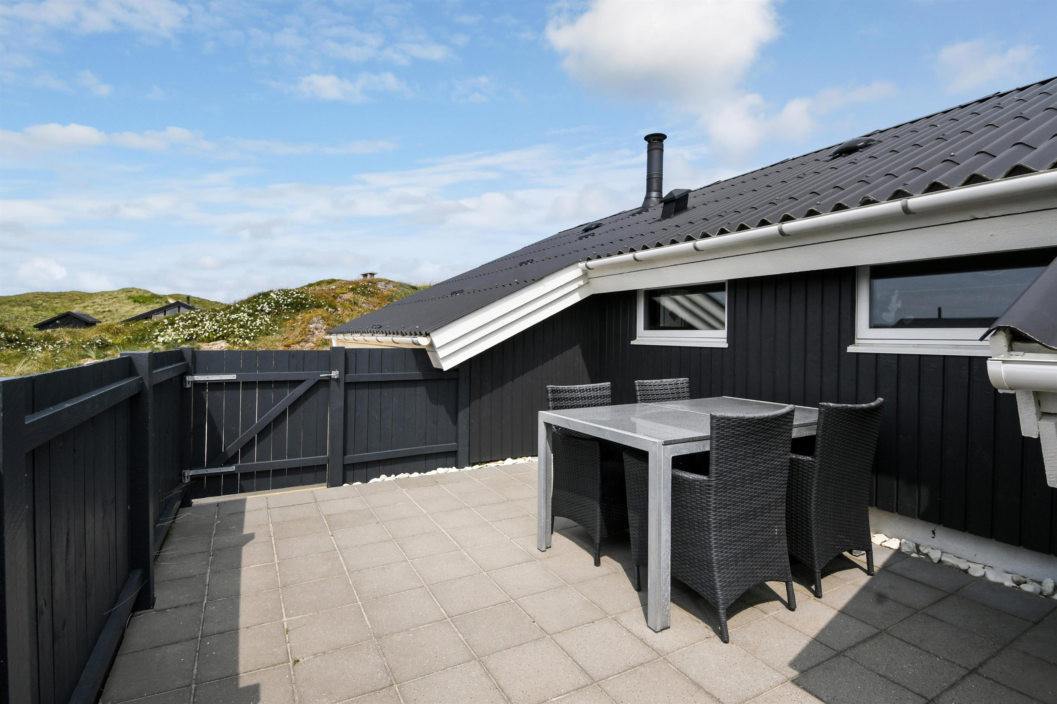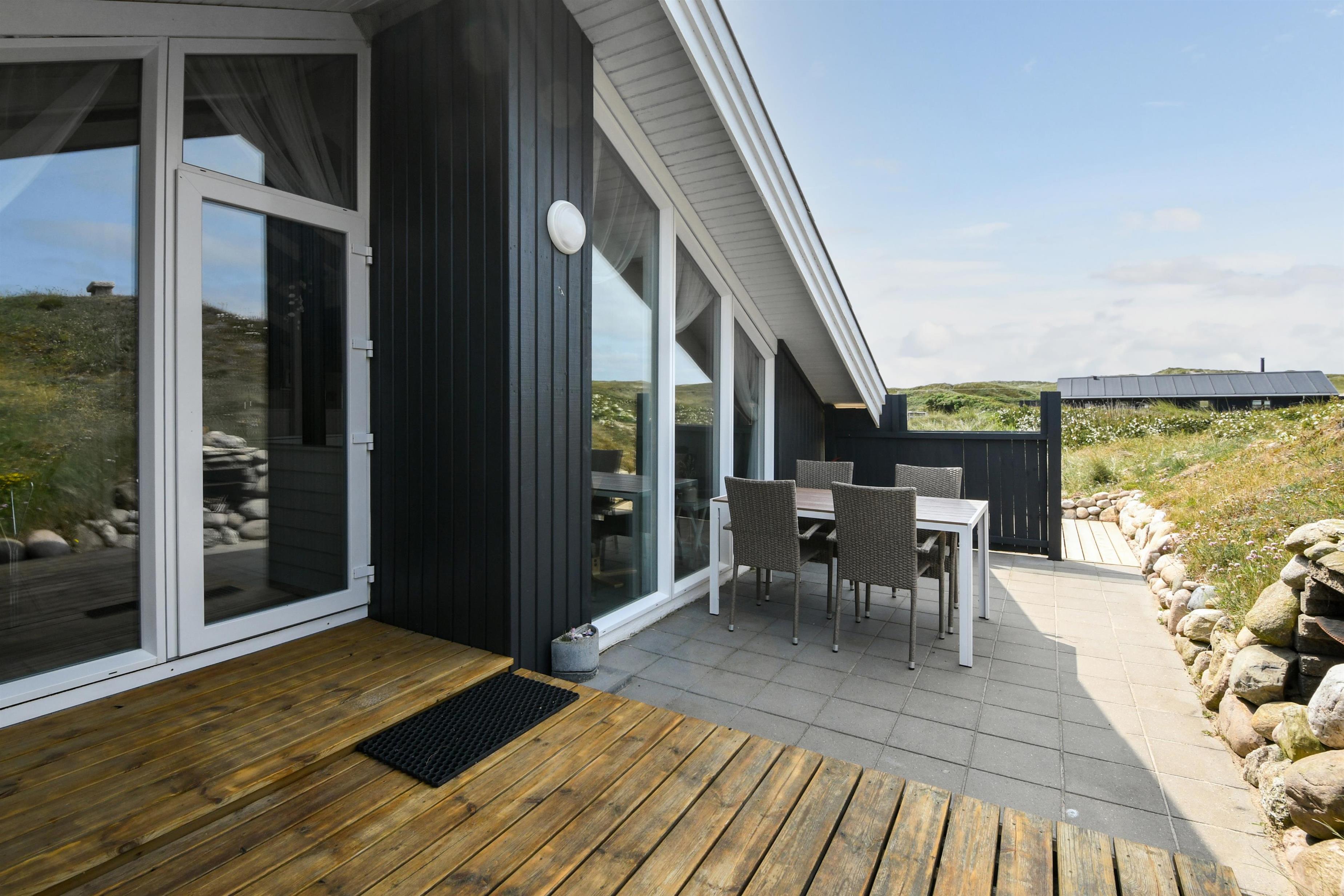 Huset er beliggende på en klitgrund i et skønt område i Vejlby Klit. Fra huset er der udgang til nyrenoverede åbne terrasser, som er indrettet med havemøbler, solvogne og grill. Når man opholder sig på terrassen er man så tæt på Vesterhavet, at man kan høre bølgernes brusen. Huset har i 2025 fået nye vinduer over det hele.