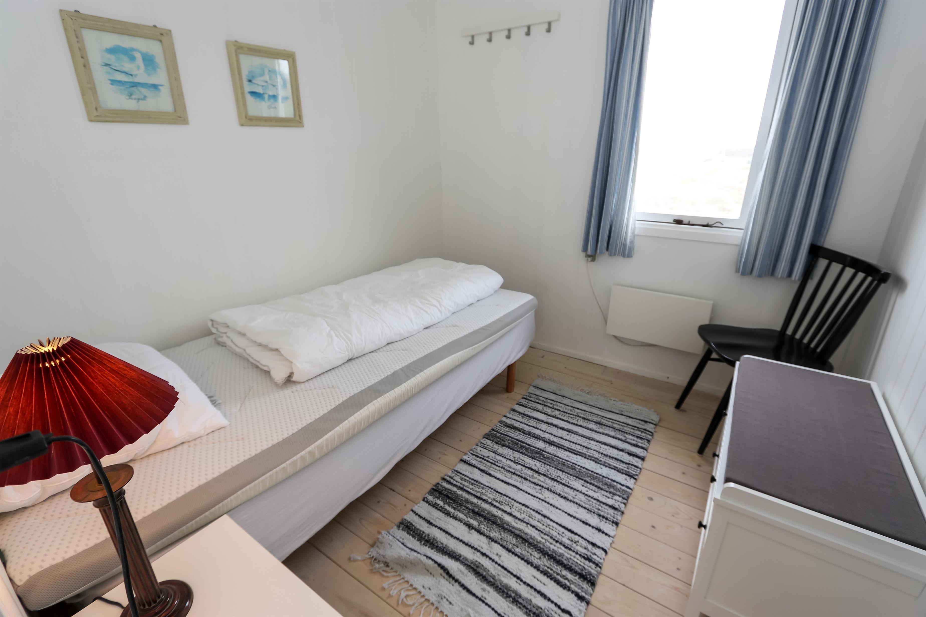 Huset rummer tre gode soveværelser: to med dobbeltsenge og ét med enkeltseng – velegnet til både familie og par. Badeværelset er lyst og moderne med klinkegulv, bruseniche og behagelig gulvvarme. Til familiens mindste gæster er der barnestol.