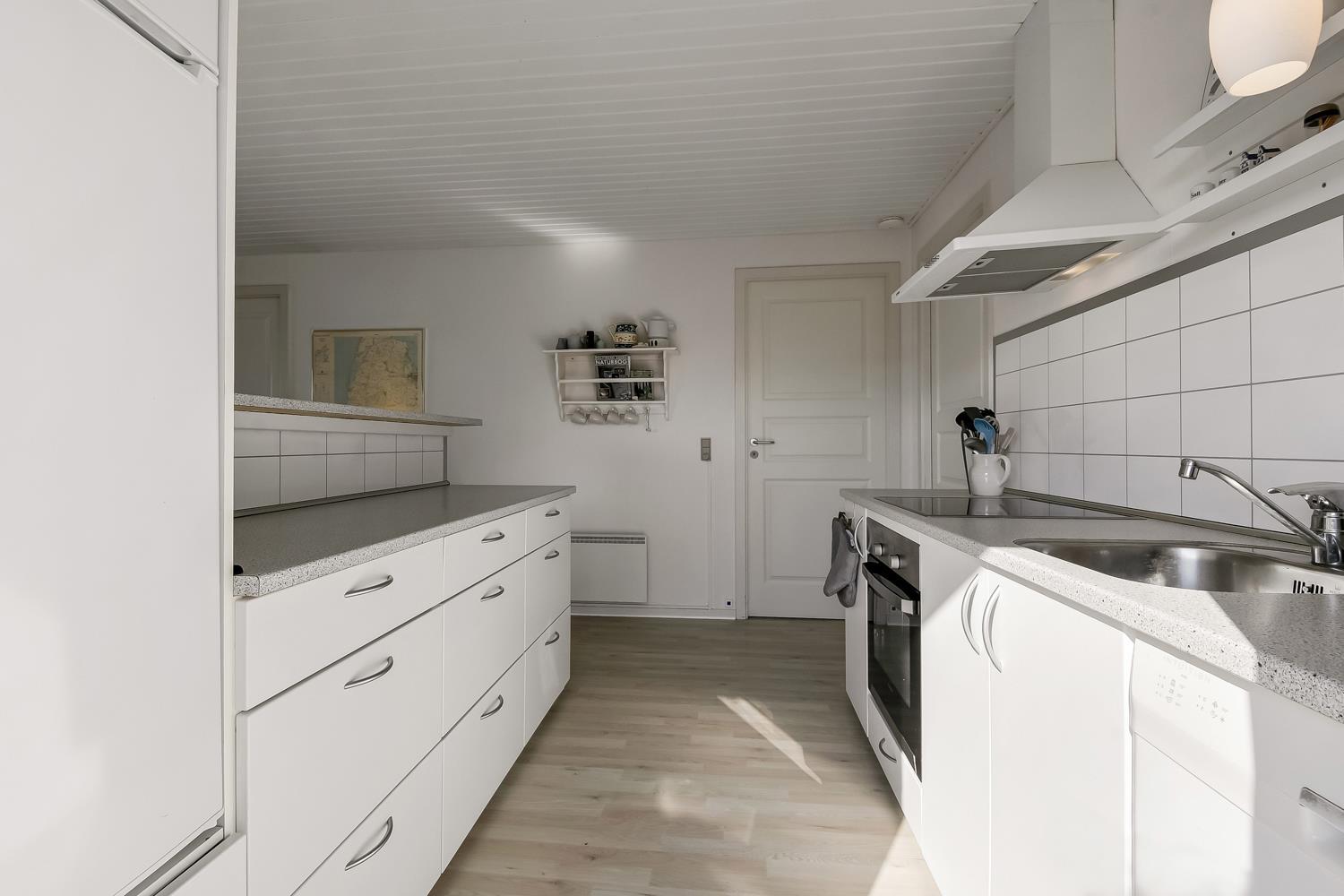 Rummeligt feriehus. Vinkelstue med polstermøbler, farvetv med danske og tyske kanaler, god spiseplads, varmepumpe og hyggekrog ved brændeovnen. Køkkenhjørnet er i åben forbindelse med opholdsstuen og råder over alt i service, keramiske kogeplader, indbygningsovn, emhætte, køleskab med lille fryseboks, opvaskemaskine og mikroovn. Badeværelse med toilet, håndvask, vaskemaskine og bruser. 3 gode seoveværelser: 1DS, 2ES, 2ES. Ikke rygerhus. Max 2 husdyr tilladt. Huset har obl. rengøring.