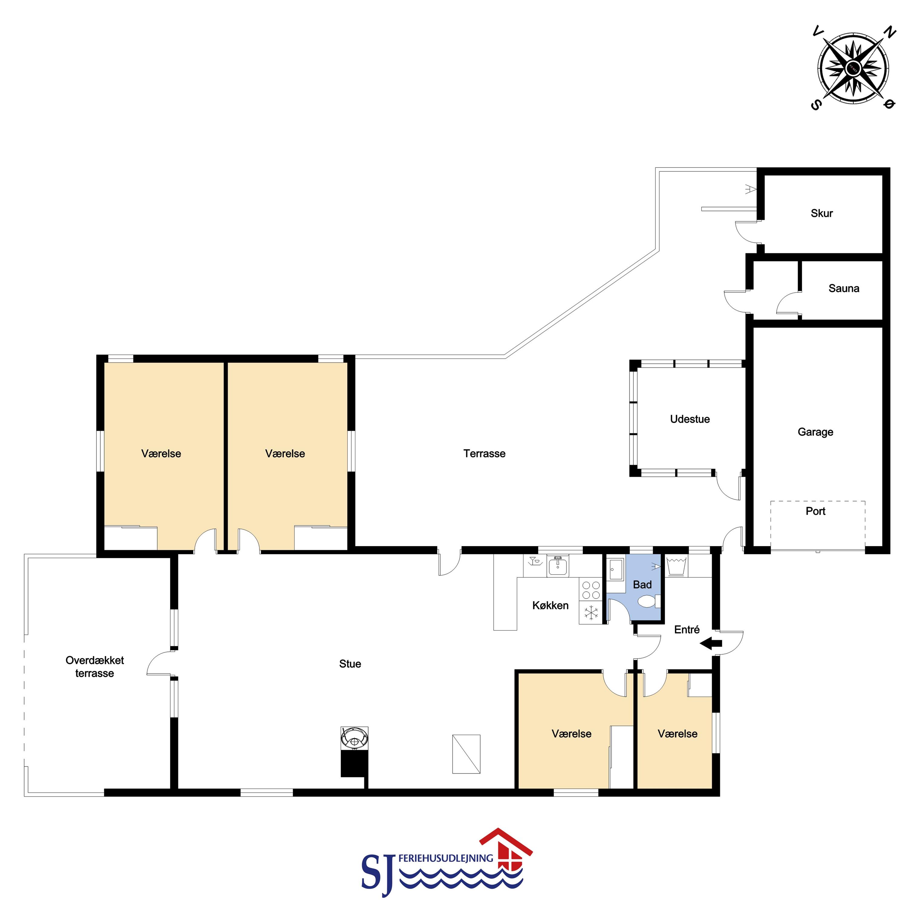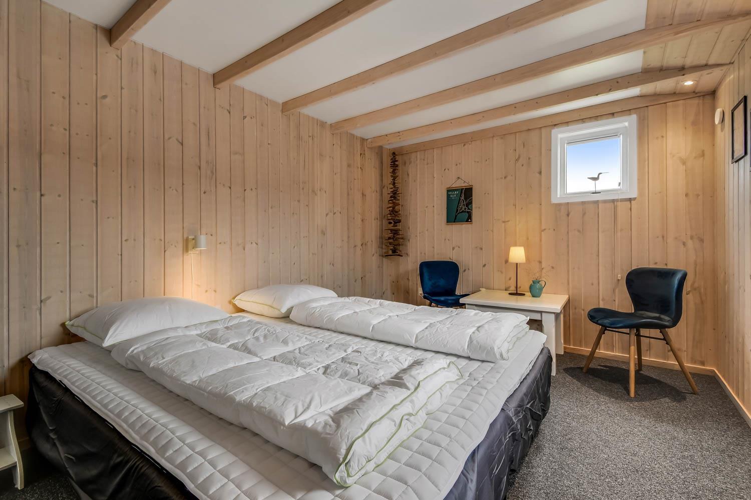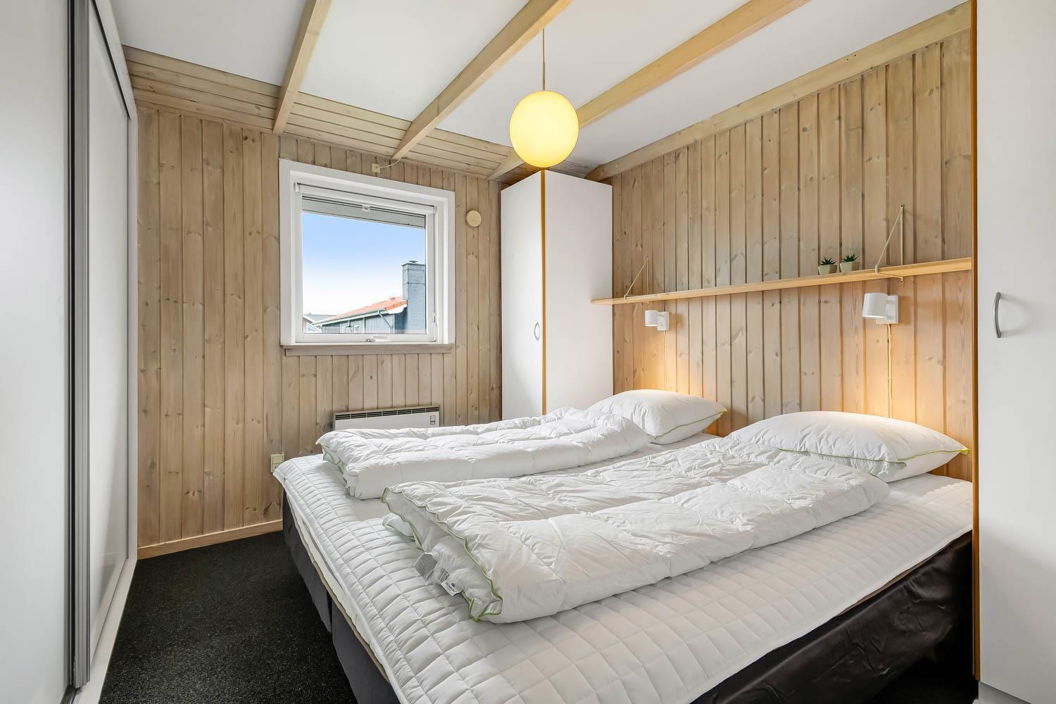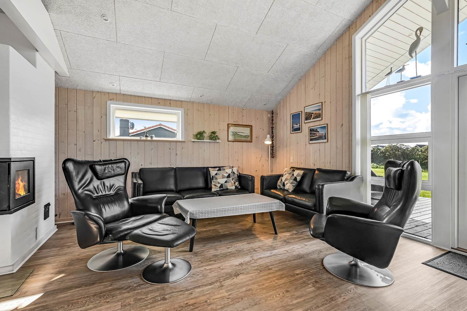 Dette velbeliggende feriehus har 4 soverum (1DS, 1DS, 1DS + 1K). Huset er 120m2 stort og det store lyse opholdsrum er åbent til kip med fantastisk lysindfald fra ovenlysvindue og store vinduespartier, hvorfra der er udsigt til klitterne mod havet. Huset er indrettet med indgang med vaskemaskine, 4 soverum, badeværelse med brus samt åbent og velindrettet køkken i forbindelse med stue. Køkken og stue er et helt fantastisk rum med opgang til stor lys hems. Der er også en hyggelig brændeovn og huset kan desuden opvarmes med varmepumpe og el-radiatorer. Huset er altid rart og varmt uanset vejr og årstid. I det veludstyrede køkken er der kaffemaskine, varmluftsovn, keramiskkogeplade, mikroovn, opvaskemaskine og køleskab med fryser. I stuen er der spisebord, tv-hjørne med sofaarrangement, TV med danske og tyske kanaler samt Chromecast og wi-fi. Max 1 husdyr tilladt.