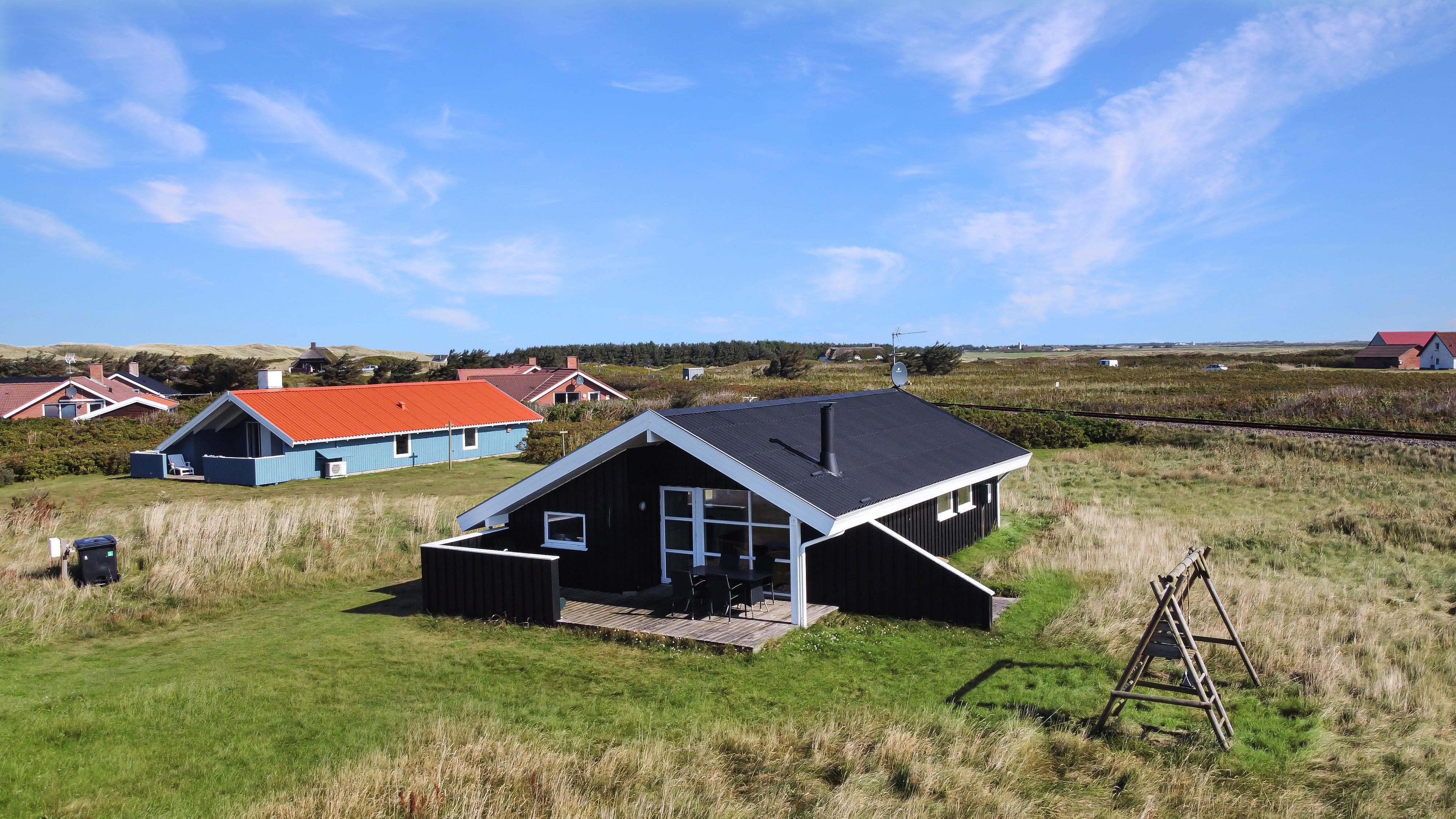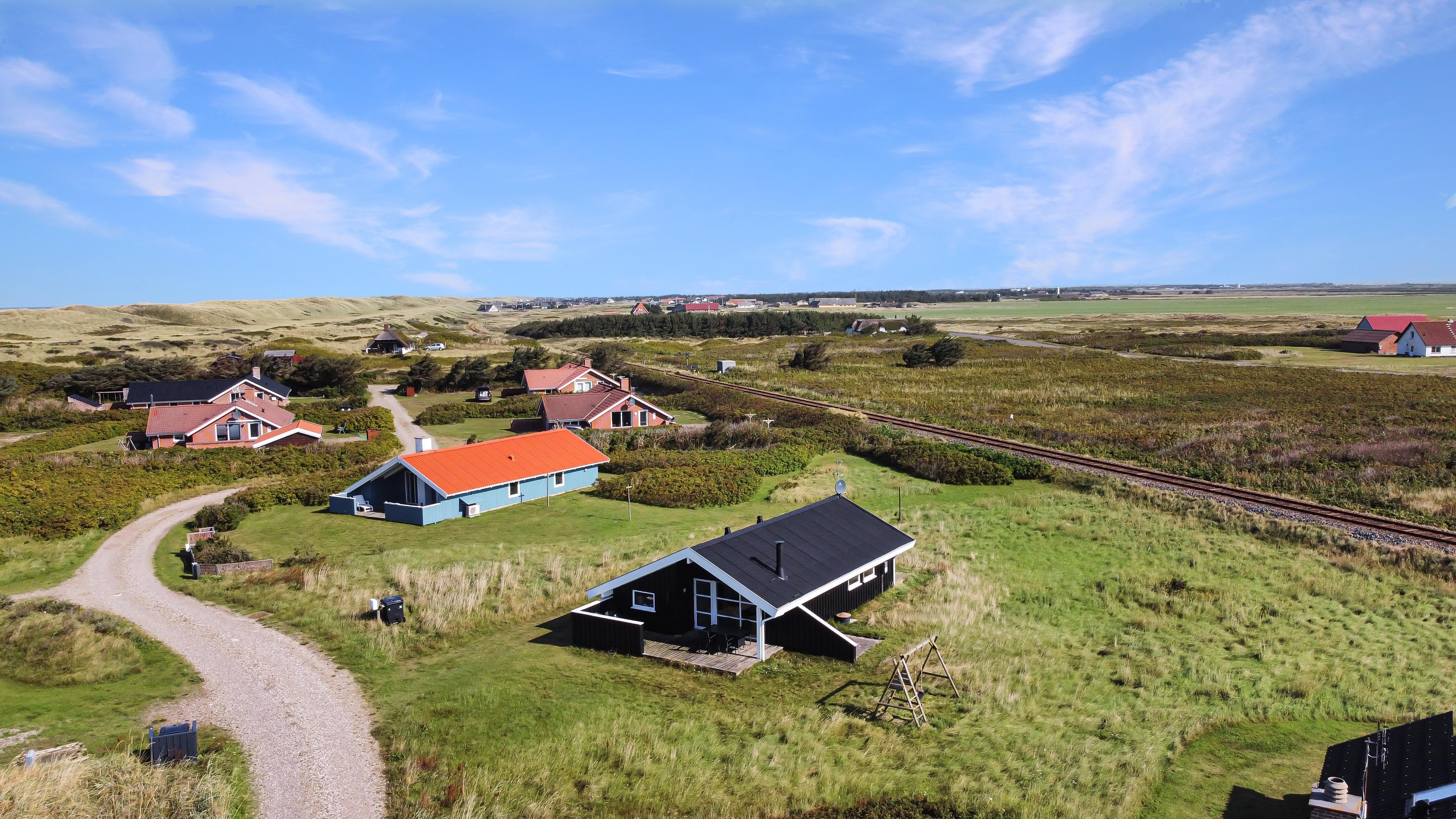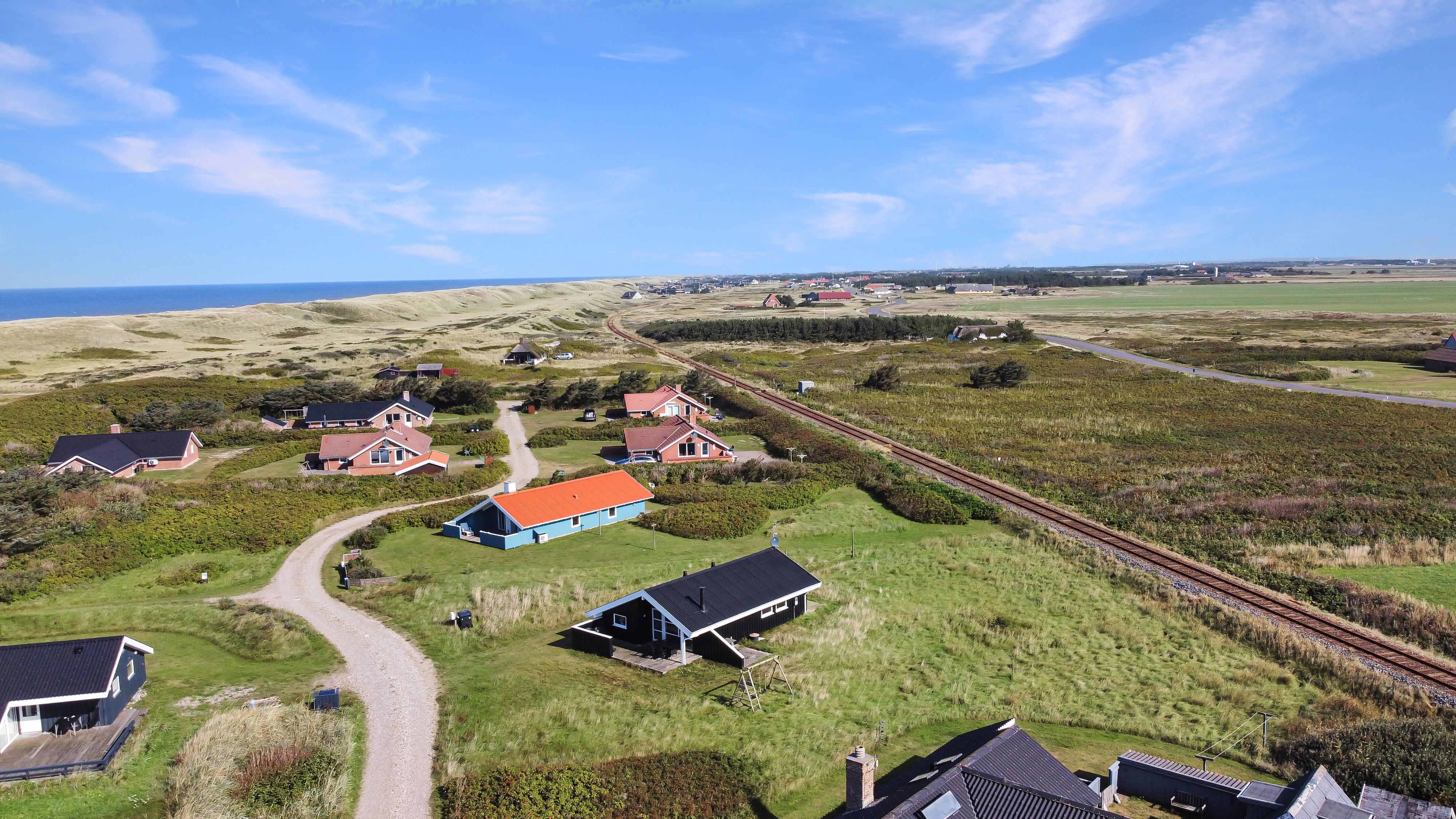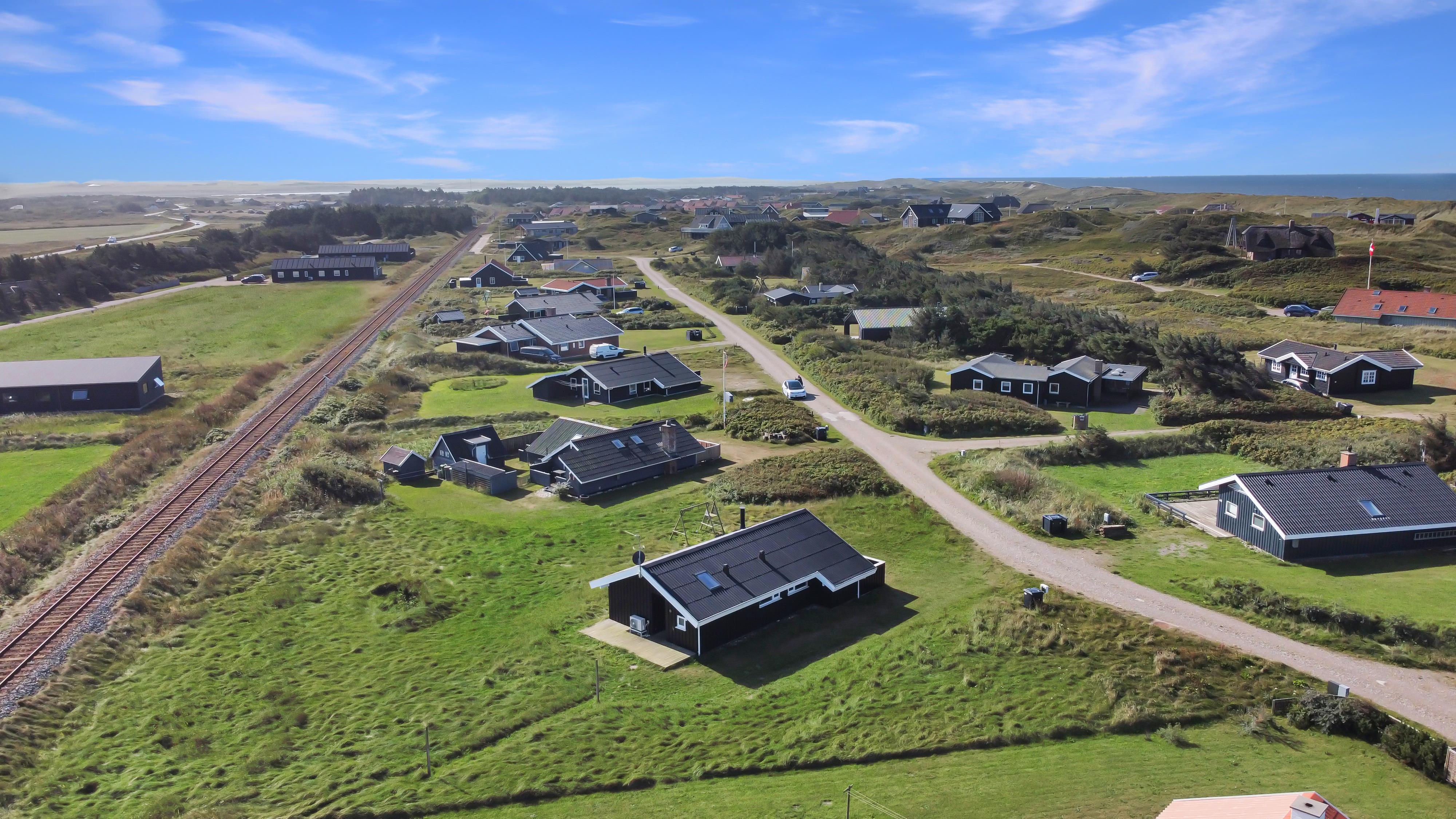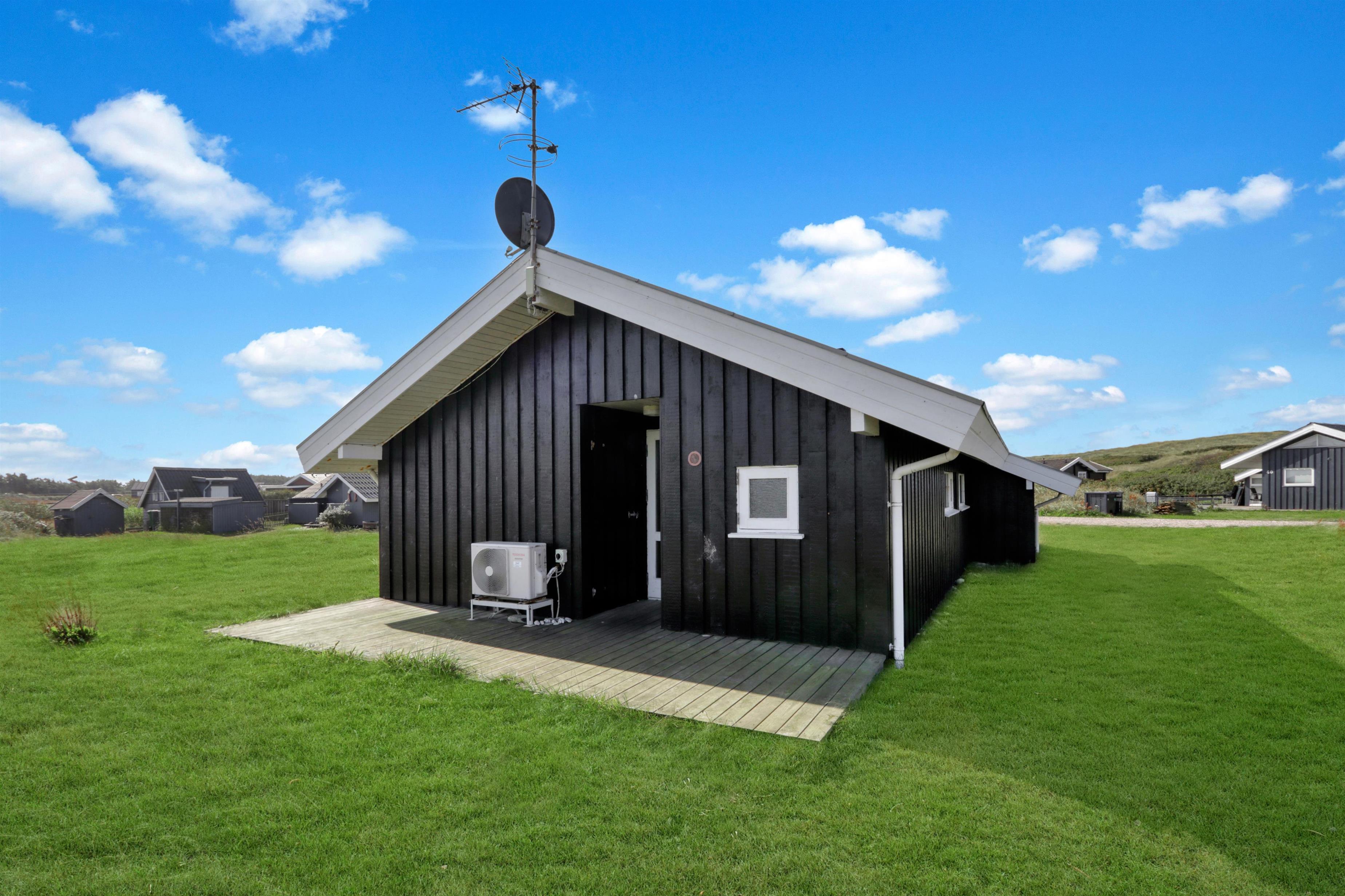 Sommerhuset er beliggende på en meget stille og rolig, blind vej, hvor det brusende Vesterhav kan høres fra de tre forskellige terrasser, som er placeret, så man får sol stort set hele dagen og aftenen med. Der er gode muligheder for læ, ligeledes på flere sider af huset. Der er komfortable havemøbler, samt to solvogne, grill og gyngestativ til børnene. Ligeledes er man ikke langt til cykelstien langs Strandvejen hvorfra man kan udnytte områdets mange cykelmuligheder. Benyt endelig også stranden til badning, drageflyvning, byg et sandslot eller gå en lang tur og få ro i sjælen.