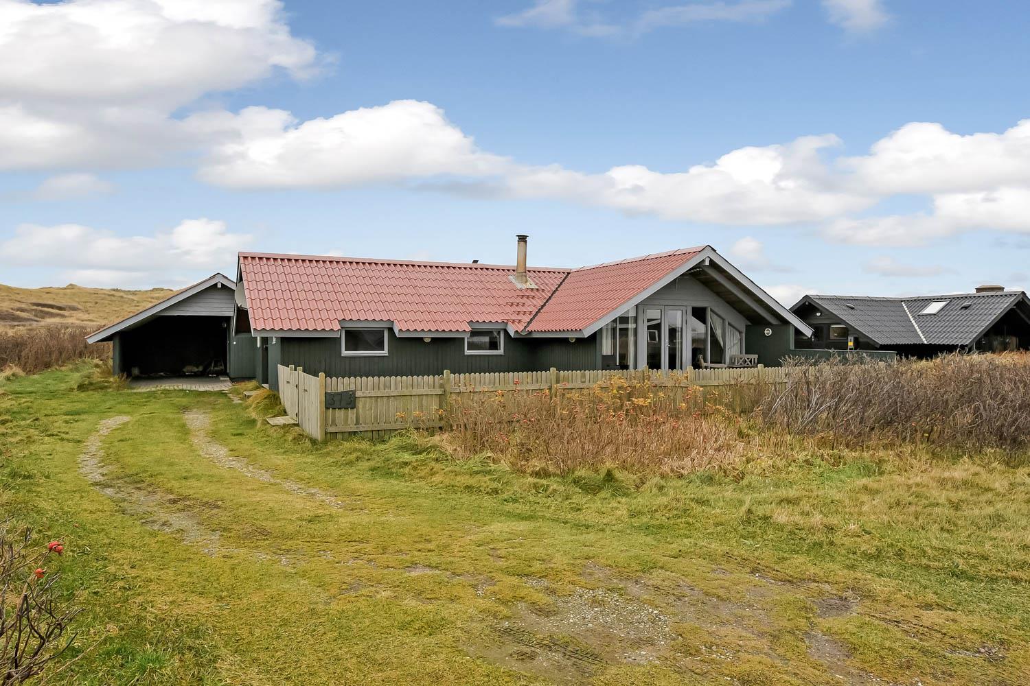 Dette feriehus er beliggende tæt på Vesterhavet og har en skøn delvis overdækket terrasse som er indhegnet. Der er carport til bilen. Huset har plads til 6 personer og har gratis internet.
