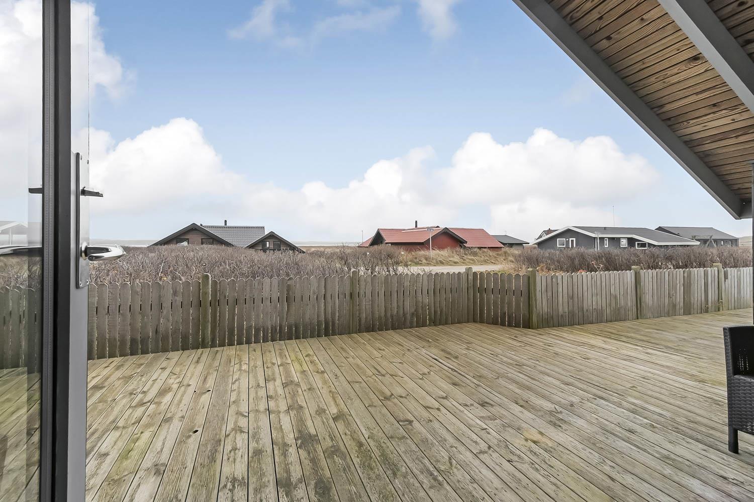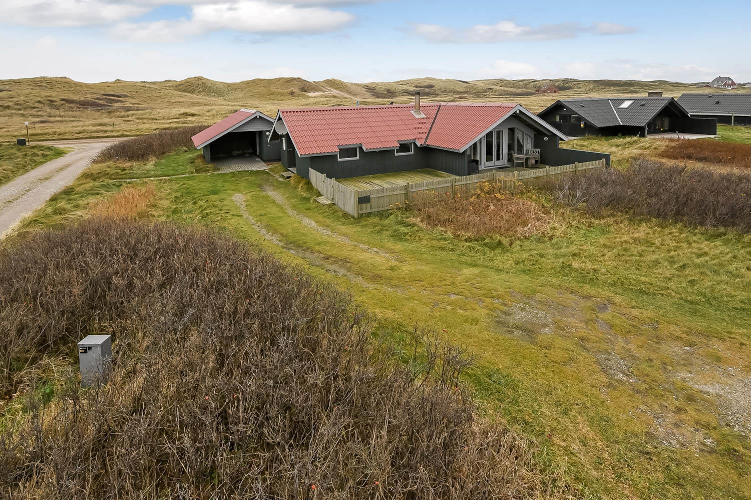 Huset ligger på en 900 kvm stor naturgrund kun ca. 150 m fra Vesterhavet og samtidig kun ca. 100 m fra Ferring sø. Til huset hører også en særdeles dejlig indhegnet terasse - og både herfra og fra selve huset har man en flot udsigt over Ferring sø og klitterne. På terrassen er der havemøbler, solvogne og grill. Havet ligger i gåafstand til Vesterhavet samt til Ferring Sø. Omkring Ferring sø er der lavet en sti så man kan vandre og opleve naturen omkring søen. Gå en tur til Vesterhavet hvor der er mange gode muligheder for aktiviteter, man kan bl.a. samle rav og sten, bygge sandslotte, fiske eller blot sidde og nyde havets brusen og stilheden. Huset ligger ikke langt fra Vejlby Klit Torv, hvor der i sæsonen er en købmand og en restaurant som har åbent. Et hyggeligt feriehus til den lille familie eller et par som ønsker at bo tæt på Vesterhavet.