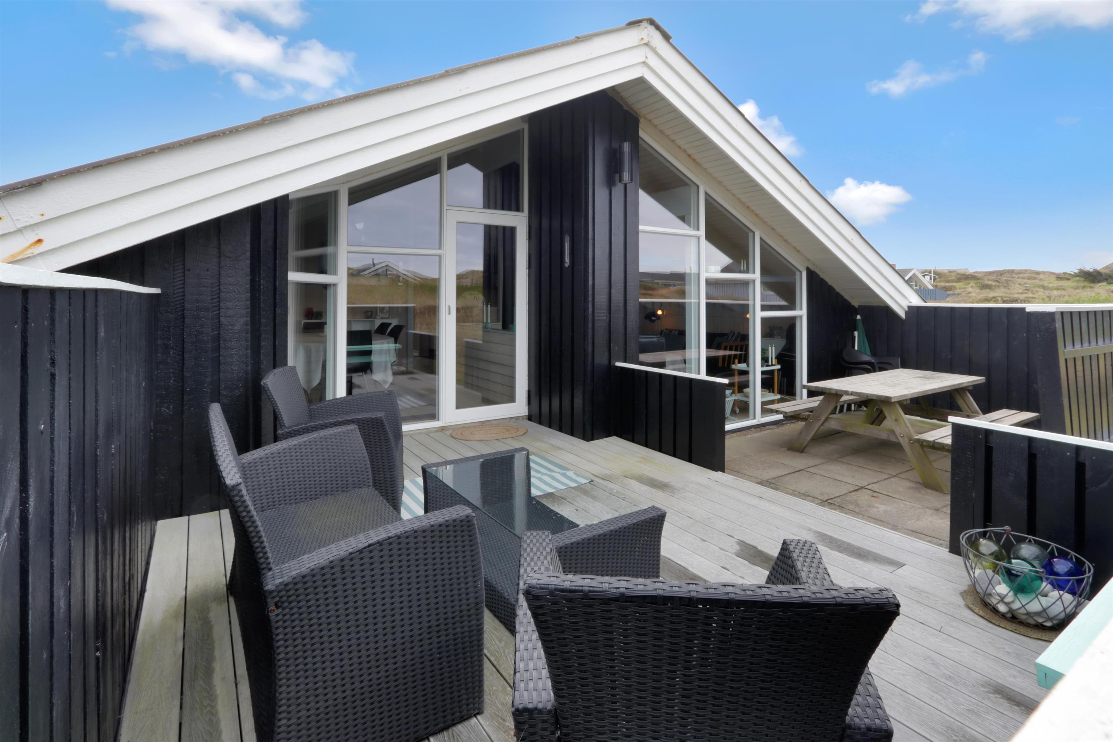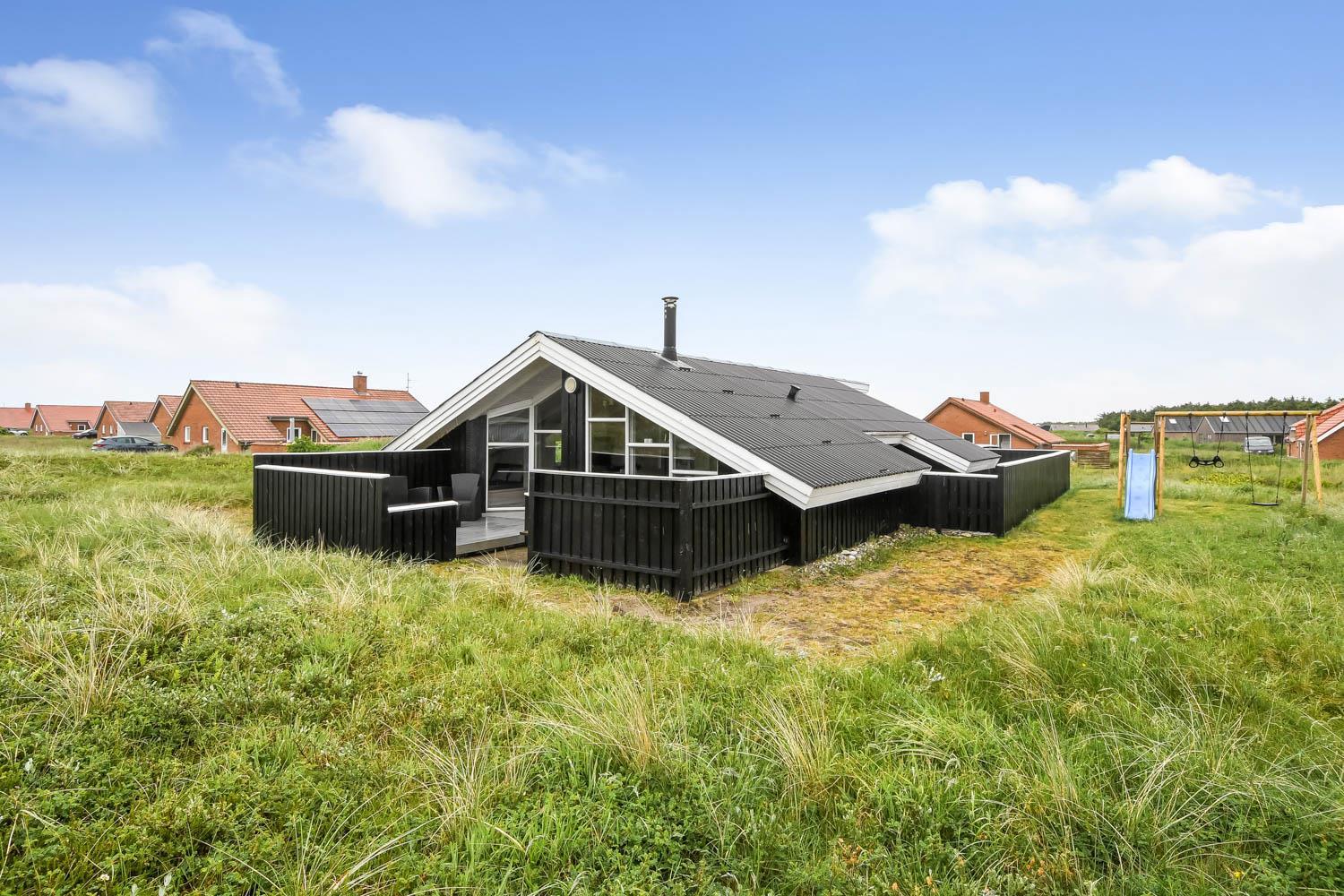 ”Eksklusiv, rummelig, komfortabelt og særdeles veludstyret feriehus beliggende på en fantastisk klitgrund kun ca. 170 m. fra Vesterhavet. Huset har nyt, indhegnet terrasseanlæg. Et rigtigt godt valg, hvis man gerne vil have et moderne feriehus, som er lækkert indrettet, og har en fantastisk beliggenhed. Gratis internetadgang.