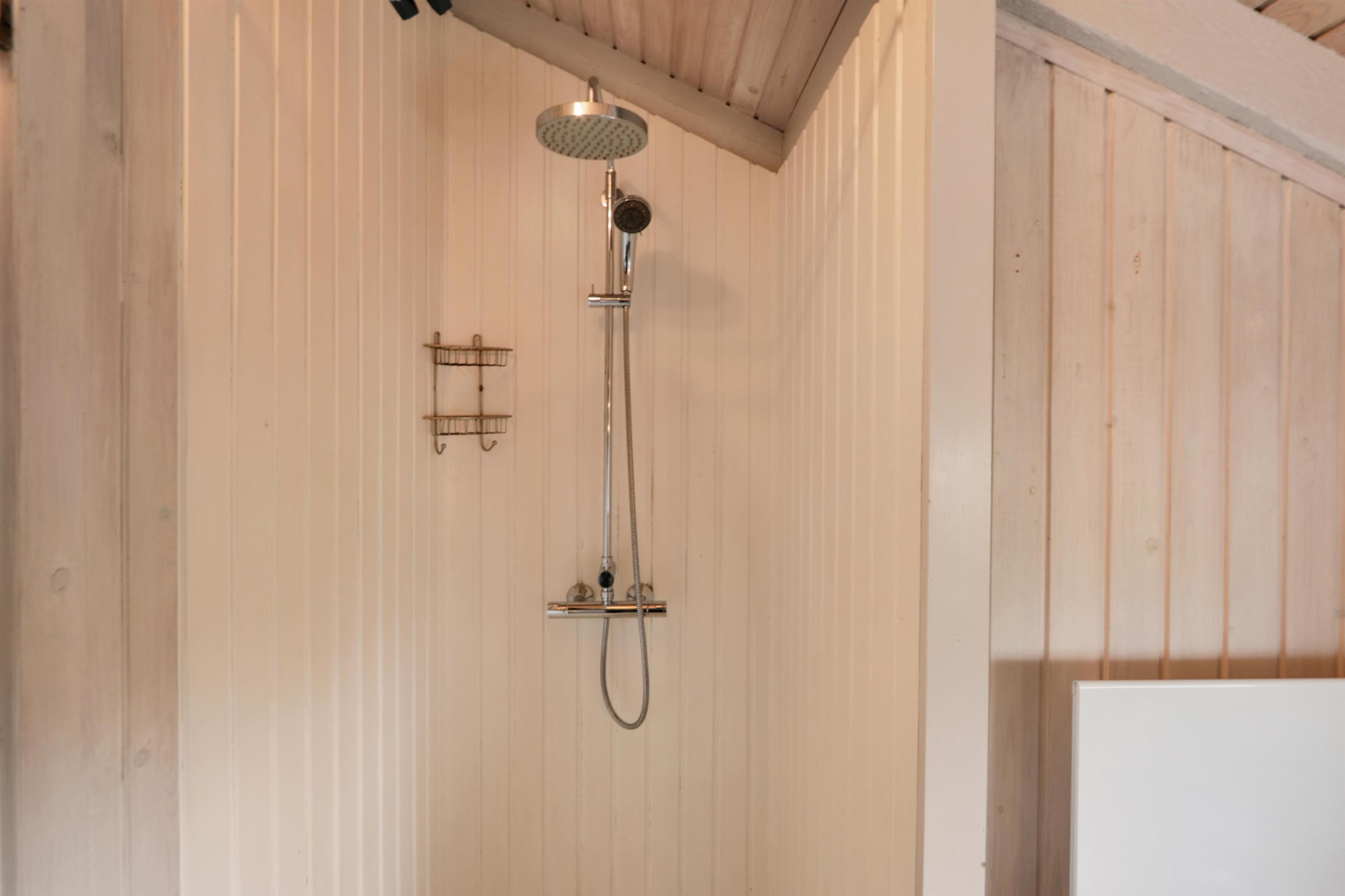 Fra huset er der udgang til en delvis overdækket terrasse og fra entréen er der udgang til endnu en terrasse som er indhegnet, hvilket er ideelt hvis man har børn eller hunde med på ferie. Fra terrasserne kan man høre havets brusen. Havemøbler, solvogne og gas-grill er naturligvis også til rådighed. Fra huset er der blot 170 m til den hvide sandstrand. Et utrolig dejligt hus, hvor der er tænkt på det meste og med masser af muligheder. Områdets købmand har sæsonåbent og ligger ca. 1.500 m fra huset og byder på frisk morgenbrød. Her kan de daglige indkøb også klares. Også området madsted ligger ca. 1.500 fra huset. Inden for 25-30 minutter kan flere aktiviteter og shoppingmuligheder nås. Så hvad enten I er til aktiv ferie eller total afslapning, danner dette flotte feriehus en dejlig ramme både hvad angår hus, beliggenhed og omgivelser.”