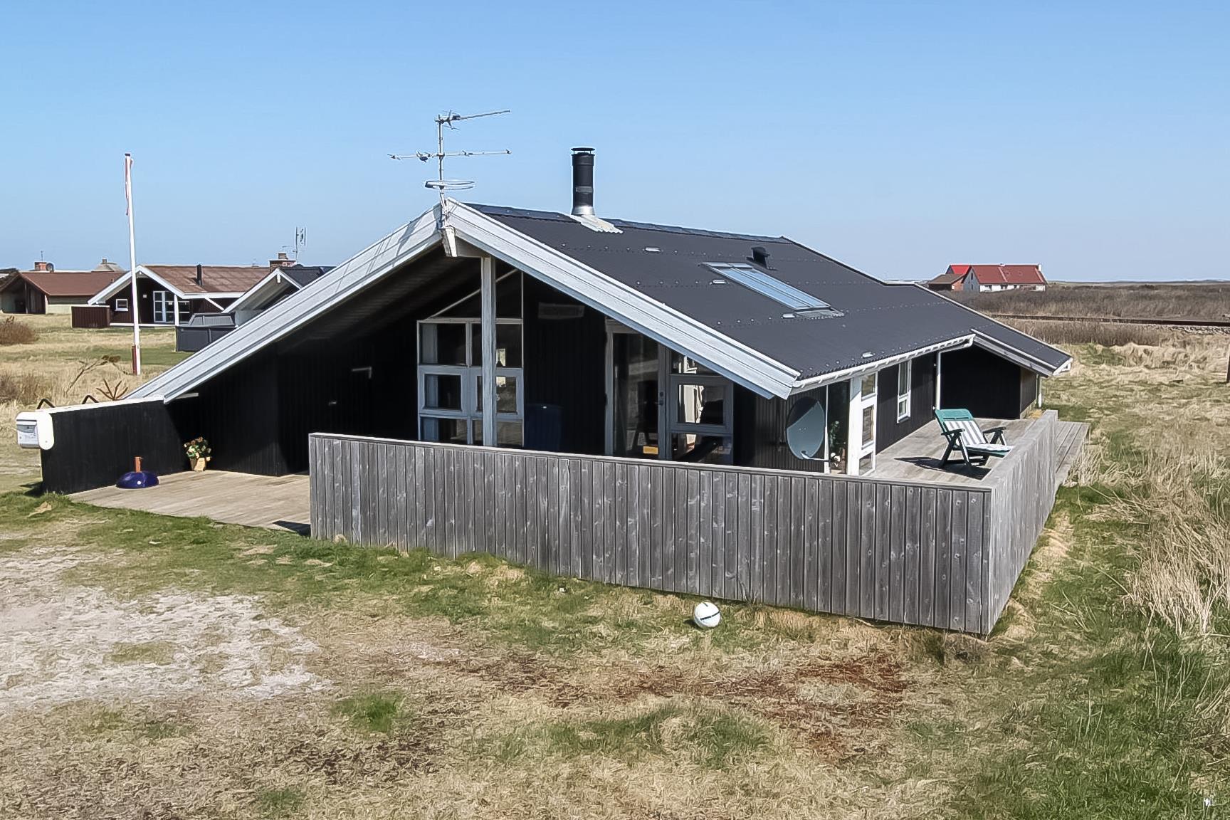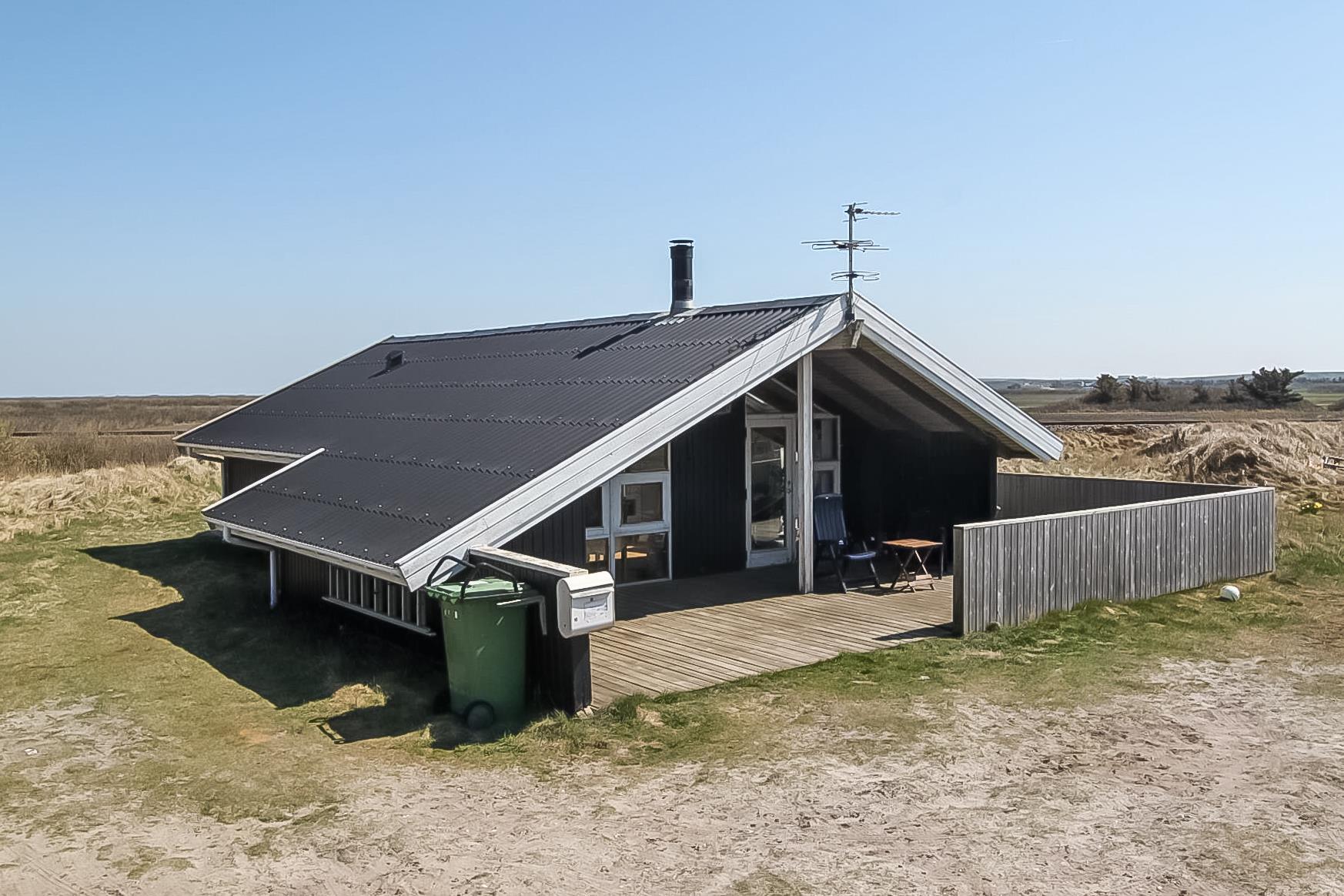 Husets overdækkede terrasse vender mod vest og der er direkte tilgang fra stuen. Dette gør det nemt at spise udenfor i havemøblerne, da man derved kan bringe forsyninger ud direkte fra stue og køkkenrummet. Det er også meget praktisk i mange andre henseender. På terrassen er der også en grill som standardudstyr. Fra huset er der ikke langt til klitterne og på den anden side venter en bred strand og Vesterhavet med mange muligheder. Her kan man bade, sole sig, vandre, samle rav, lystfiske eller flyve med drage. Det er altid en god start eller slutning på dagen at trave en tur over klitten og nyde synet. Der er omkring 1500 meter til nærmeste købmand, som kun har åbent i sommerhalvåret eller skal man begive sig de 4 km til Harboøre hvor der både er Aldi og Brugsen, som forøvrigt har åbent alle dage året rundt. Dette hus har et godt udgangspunkt til at udforske området fra hvadenten man gør det fra fods eller fra bil. Tag eventuelt med den Danmarksberømte jernbane VLTJ, som har et trinbræt 1000 meter fra huset ved Viktoria Street station.