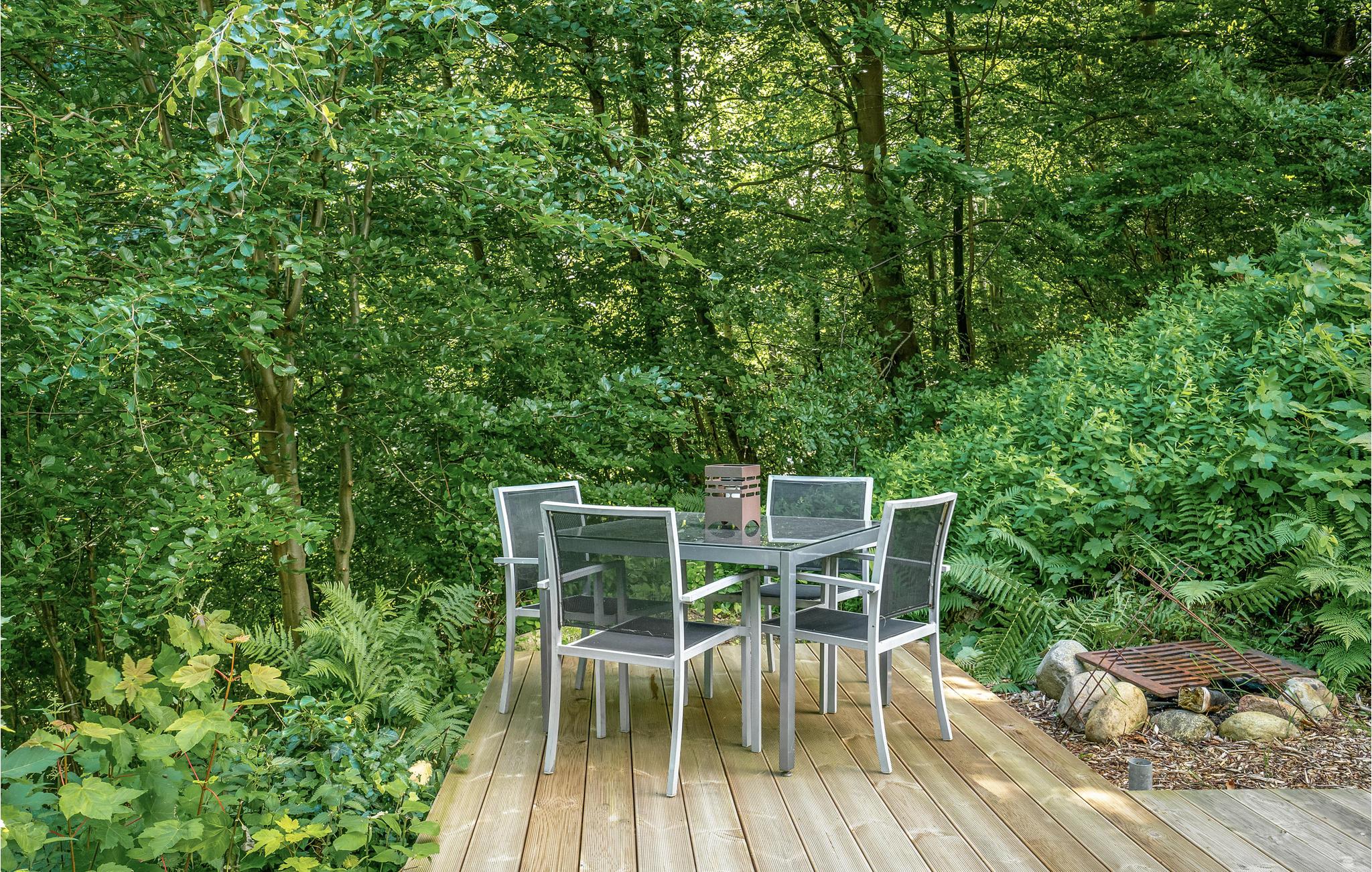 Lyt til bladenes raslen i træerne på den store træterrasse. Find jer til rette i liggestolene eller slå jer ned i stolene. Nyd morgenmaden i den friske luft eller tilbring aftenen ved bålstedet med et glas vin.