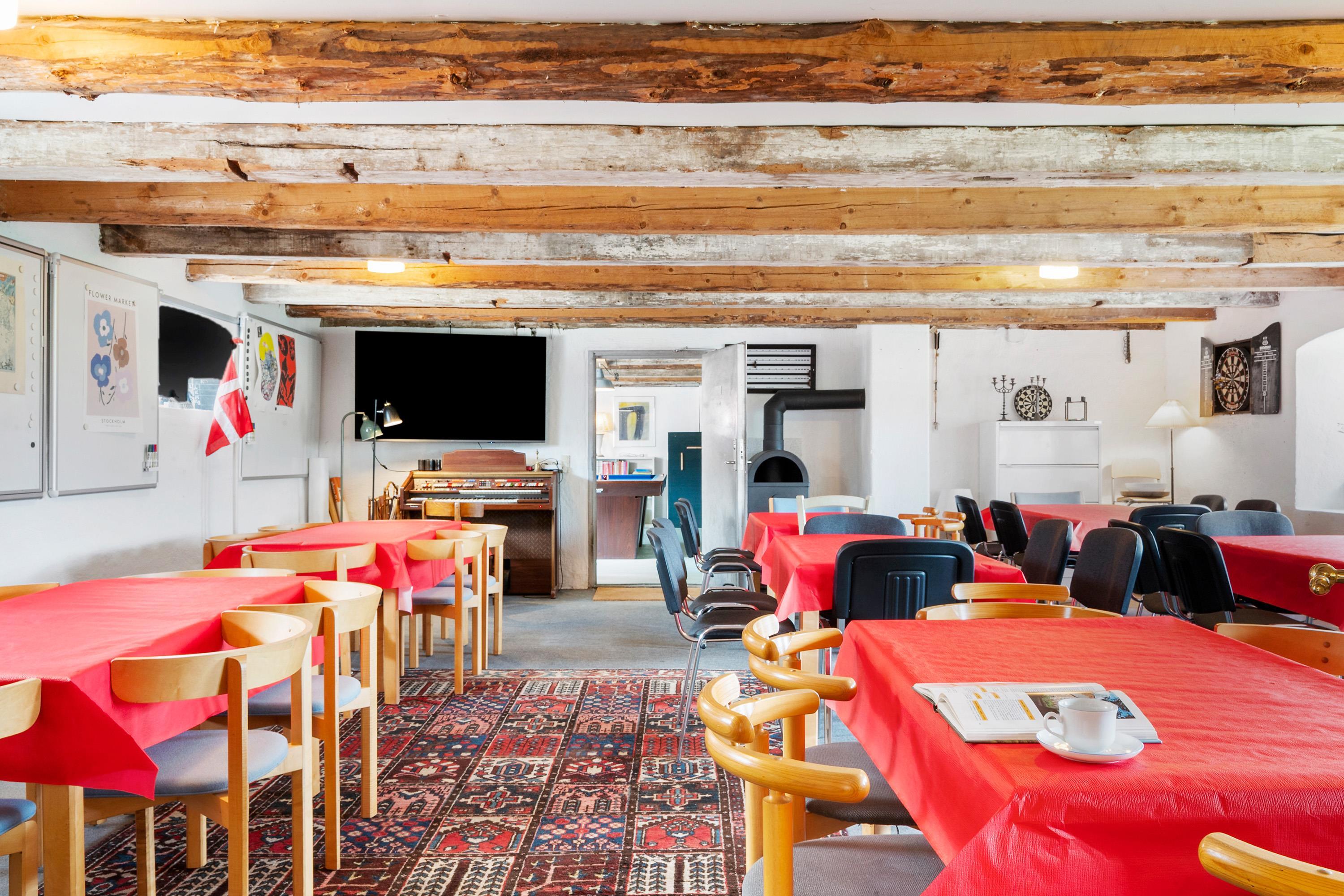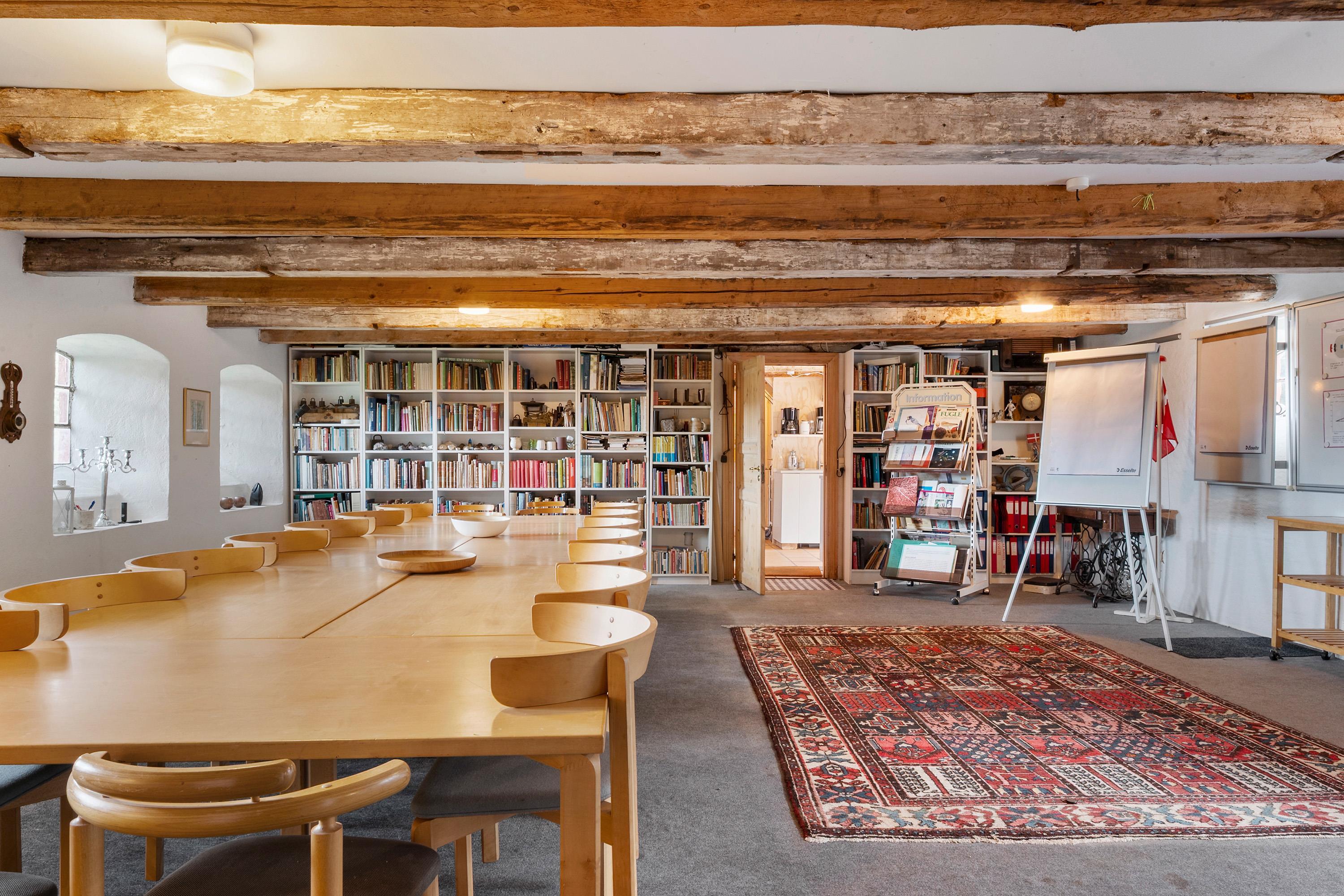 I dag fremstår bygningen med rødt tegltag, flankeret af smukke længer, hvor tømmer og detaljer fra 1600-tallet stadig kan ses. Historien sidder i væggene – og når man bevæger sig gennem rummene, mærker man tydeligt, at dette hus er blevet brugt til både hverdag, højskoleliv, samling og fest gennem mere end 150 år.