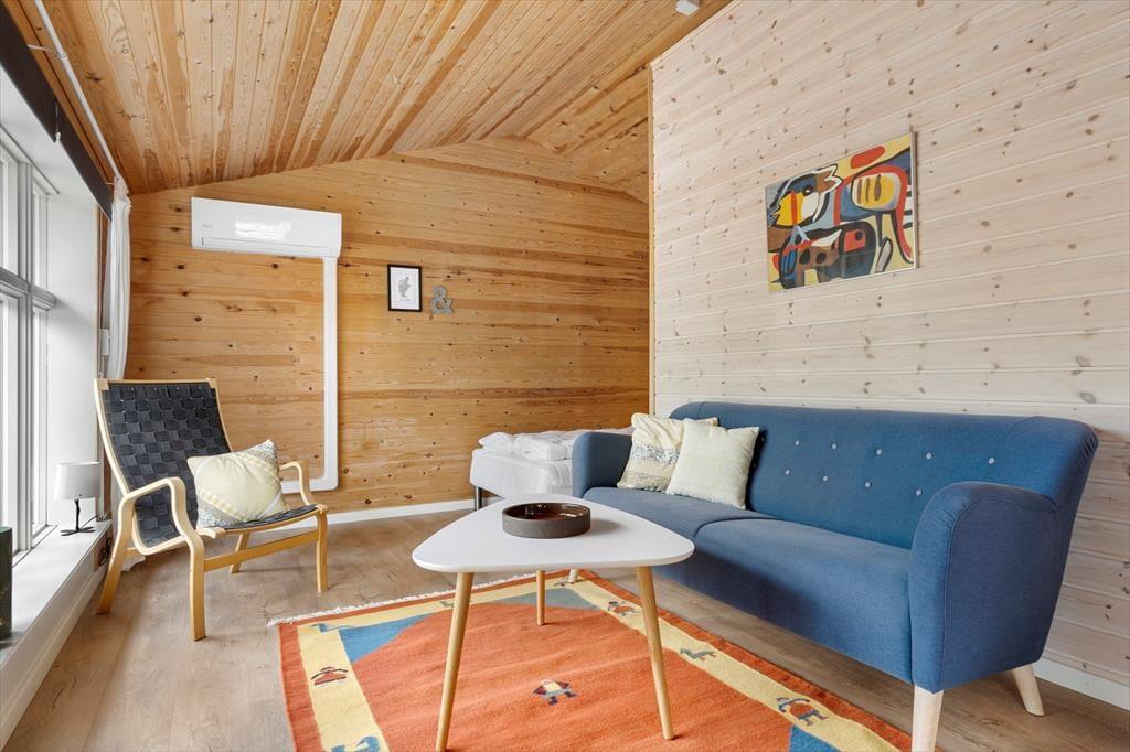 I dette fantastiske charmerende feriehus, bliver I med det samme mødt af ægte dansk sommerhusstemning med husets autentiske udseende og stil. Her er der virkelig plads til afslapning og dybe rolige vejrtrækninger, mens den smukke brændeovn knitrer og fylder rummet med et blødt orange skær. Huset er særdeles velegnet til at samle flere familier eller generationer på kryds og tværs, så I rigtigt kan nyde hinandens dejlige selskab. Der er nemlig et skønt anneks med både eget køkken, toilet og sovepladser, så man også kan trække sig hver for sig og nyde en stille stund.